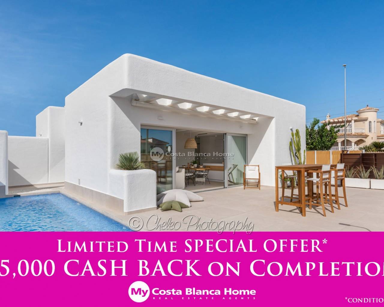 We are pleased to offer you this very special new build villa through our exclusive collaboration with a well-renowned local developer, this amazing villa is on one level, 3 bedrooms and 2 bathrooms, 102m2 build size set on a fully walled plot of 220m2, located in Dolores, Alicante and walking distance to all local amenities.