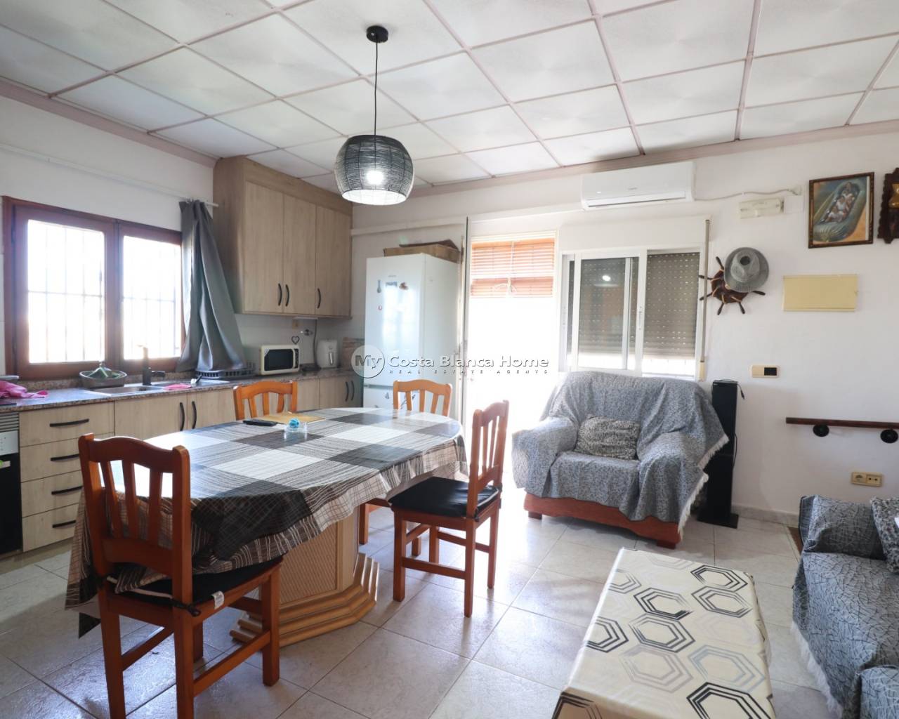 Cette maison de ville de trois chambres orientée à l'ouest à Benijofar est située à distance de marche des commodités et des installations locales, et à seulement 15 minutes en voiture des belles plages de la Costa Blanca Sud. Située sur un généreux terrain de 488 m², la propriété dispose de trois chambres, d'une salle de bain familiale et d'un vestiaire pratique au rez-de-chaussée. La cuisine ouverte se connecte parfaitement au salon/salle à manger, qui est équipé de la climatisation pour plus de confort. De plus, l'une des chambres comprend la climatisation. La maison de ville est équipée de grilles de fenêtre et de porte partout, assurant la sécurité. À l'extérieur, le jardin privé arboré comprend une impressionnante piscine privée de 8 x 4 m et un espace barbecue dédié, parfait pour se divertir. Il y a aussi un espace repas et de divertissement extérieur ombragé, idéal pour profiter confortablement du climat espagnol chaud. Cette charmante propriété offre un équilibre fantastique entre la vie intérieure et extérieure, ce qui en fait un excellent choix pour une maison familiale ou une retraite de vacances.