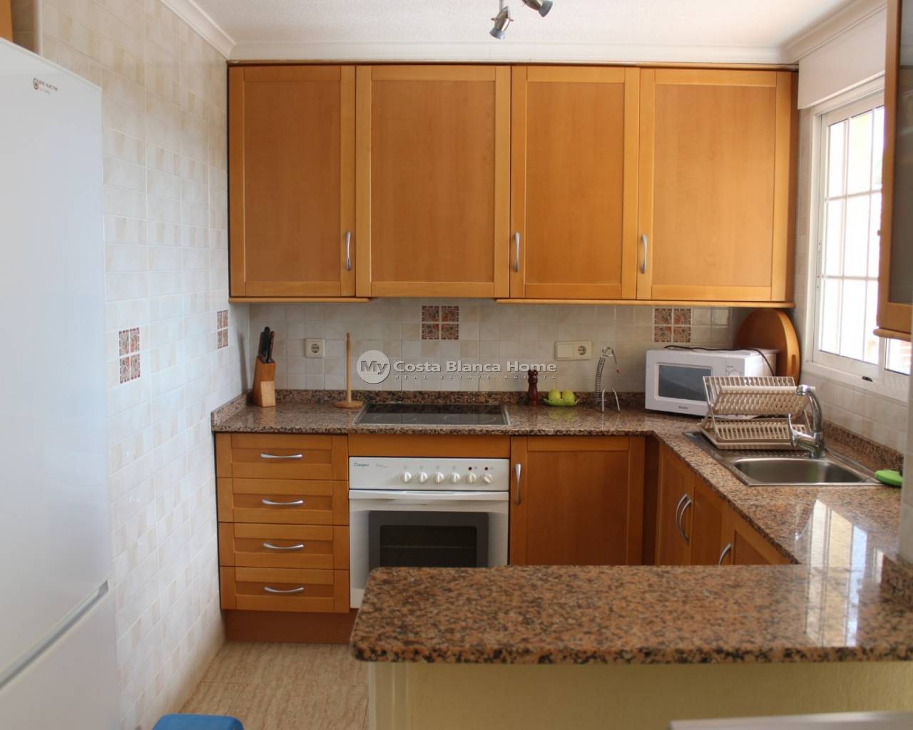 Villa jumelée, parfaitement située dans la communauté fermée de l'Urbanisation Montemar à Algorfa. Cette propriété orientée au sud comprend 3 chambres, 2 salles de bains, une piscine privée et un parking hors route, avec accès à une grande piscine commune. Dès l'entrée, vous êtes accueillis par un salon/salle à manger spacieux avec une cheminée confortable, qui s'intègre parfaitement dans une cuisine américaine de taille généreuse. Le rez-de-chaussée comprend également une chambre double, une salle de douche et une buanderie extérieure. Un escalier mène à une deuxième chambre double, une chambre à deux lits et une salle de bains familiale équipée d'une baignoire et d'une douche. Toutes les chambres sont équipées de placards. Le premier étage donne également accès à un grand solarium, qui offre une vue panoramique sur le paysage environnant. Le vaste jardin est agrémenté d'une grande piscine privée et de terrasses propices à la détente. La propriété est équipée d'un chauffe-eau au gaz naturel, d'unités de climatisation dans le salon et dans les trois chambres, et offre la télévision britannique par satellite en libre accès grâce à l'antenne parabolique communautaire. Cette propriété est idéalement située à 10 minutes à pied de divers bars, cafés et restaurants, tandis que le village espagnol d'Algorfa et le célèbre terrain de golf de 18 trous de La Finca sont à seulement 5 minutes en voiture. Proposée entièrement meublée, cette propriété constitue une opportunité idéale pour une maison de vacances ou une résidence permanente.