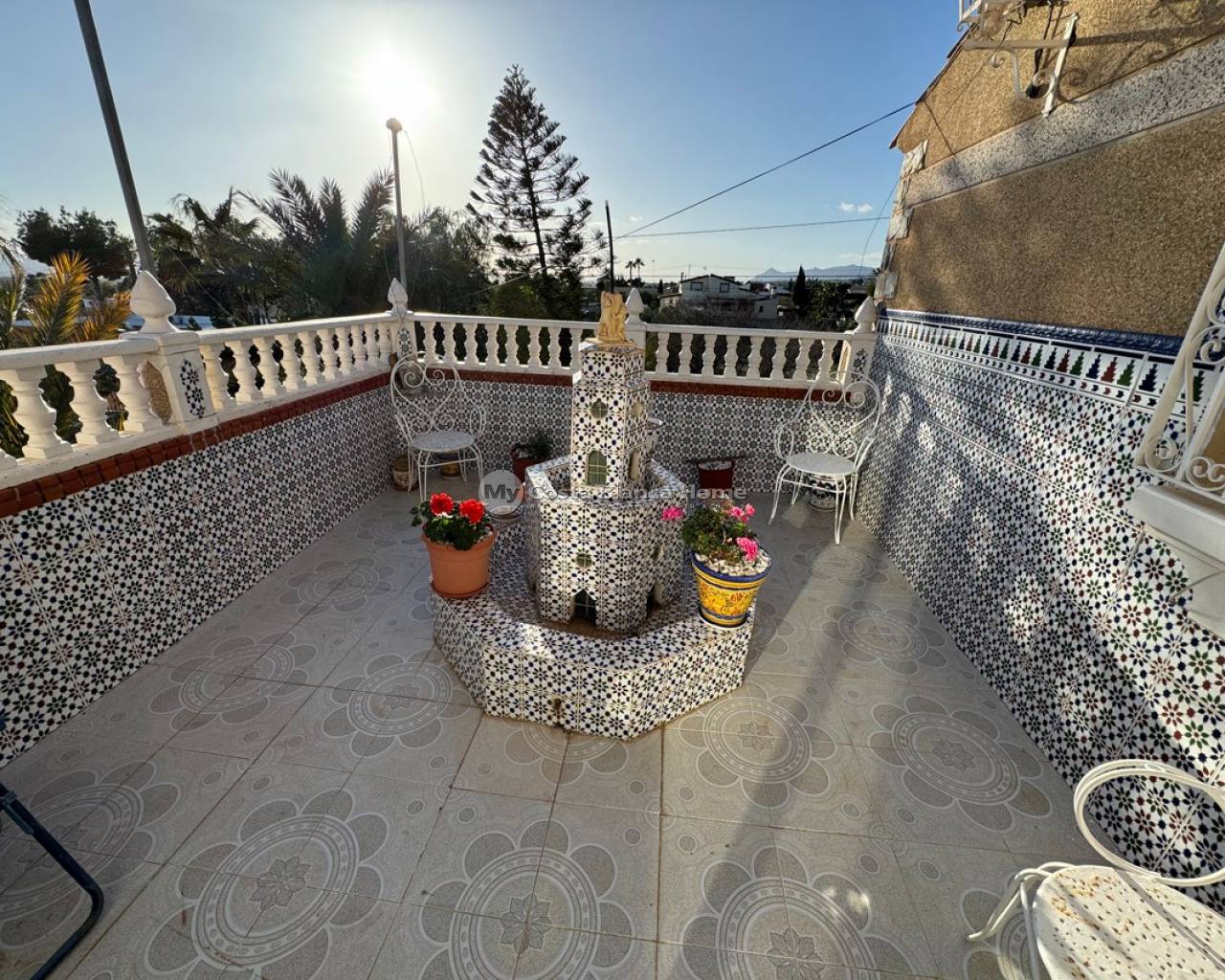 Country house on 2 floors in Albatera (Alicante) just 30 minutes from the beach, with mountain and lake views. The house consists of 6 bedrooms, 2 bathrooms and has a living area of 380m2, a fenced plot of 2000m2 with an asphalt road and has a very high build quality. The house is distributed as follows, on the ground floor there are 3 bedrooms, 1 bathroom, a kitchen and a large living room with a chimney. Upstairs there are 3 bedrooms, one with a large balcony, 1 bathroom, another living room with a chimney and a balcony. There is also a summer kitchen on the balcony. The house also has a garage. Furthermore, in the beautiful landscaped garden there is a private pool, a soccer field with a house with showers and bathrooms and a carport for 2 cars. The house is in a very quiet area and is only 25 minutes from the airport.