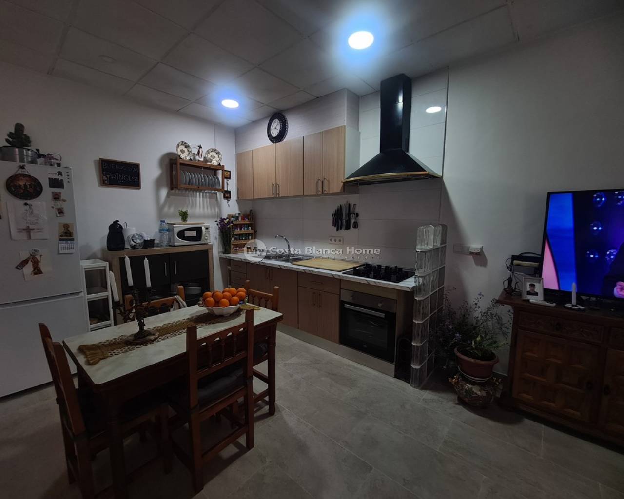 Recently renovated 120m2 terraced townhouse located just 1 minute walk from all amenities in the center of San Isidro, Albatera. The property is set over 2 floors and comprises a 30m2 air conditioned kitchen and dining room, independent living room, large air conditioned bedroom and a family bathroom. On the upper floor there are 2 further bedrooms.