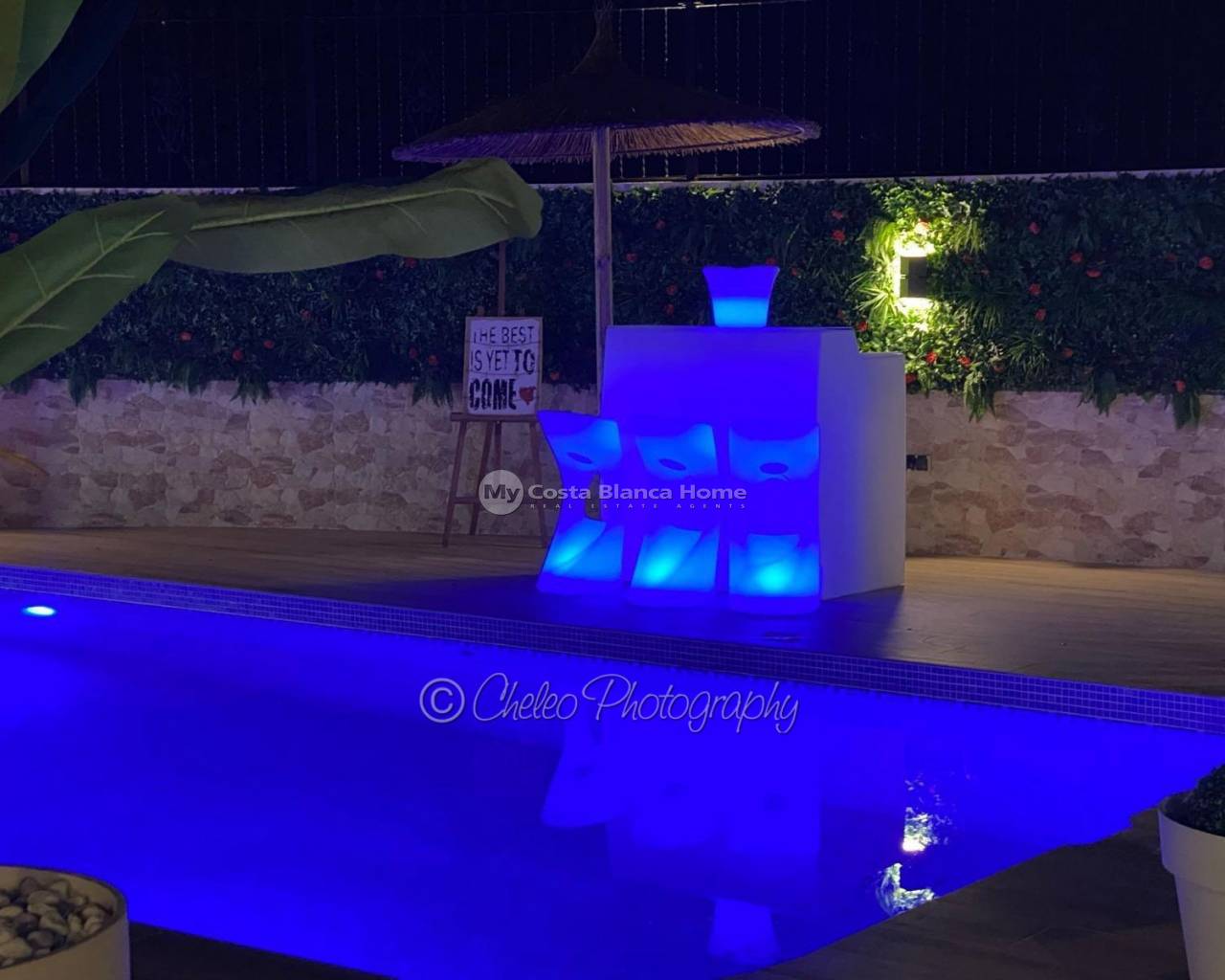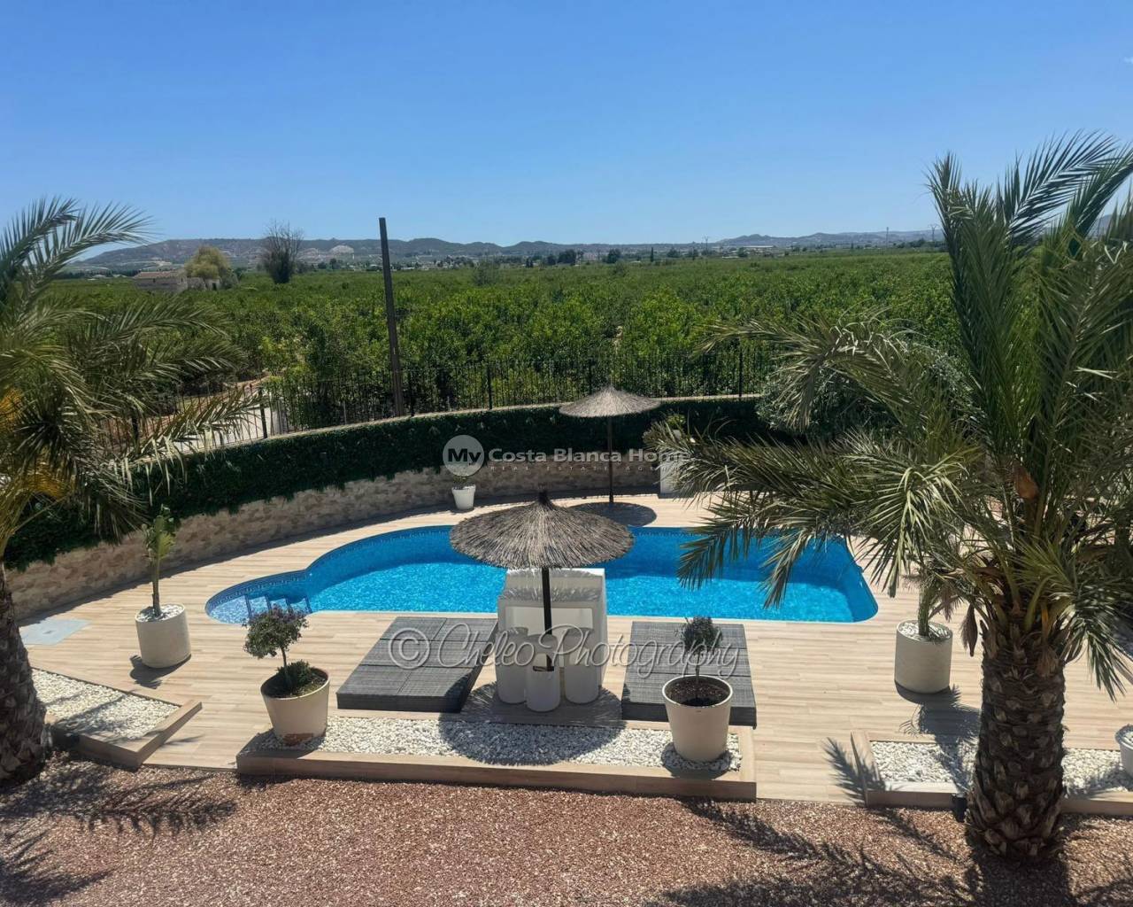 For sale this fantastic luxury villa in Rafal, a charming little Spanish village just 35 minutes from Alicante airport and 30 minutes from Murcia airport. Set among fruit tree plantations, this unique property ensures no further construction around it, offering complete privacy and stunning views of the Orihuela mountains.