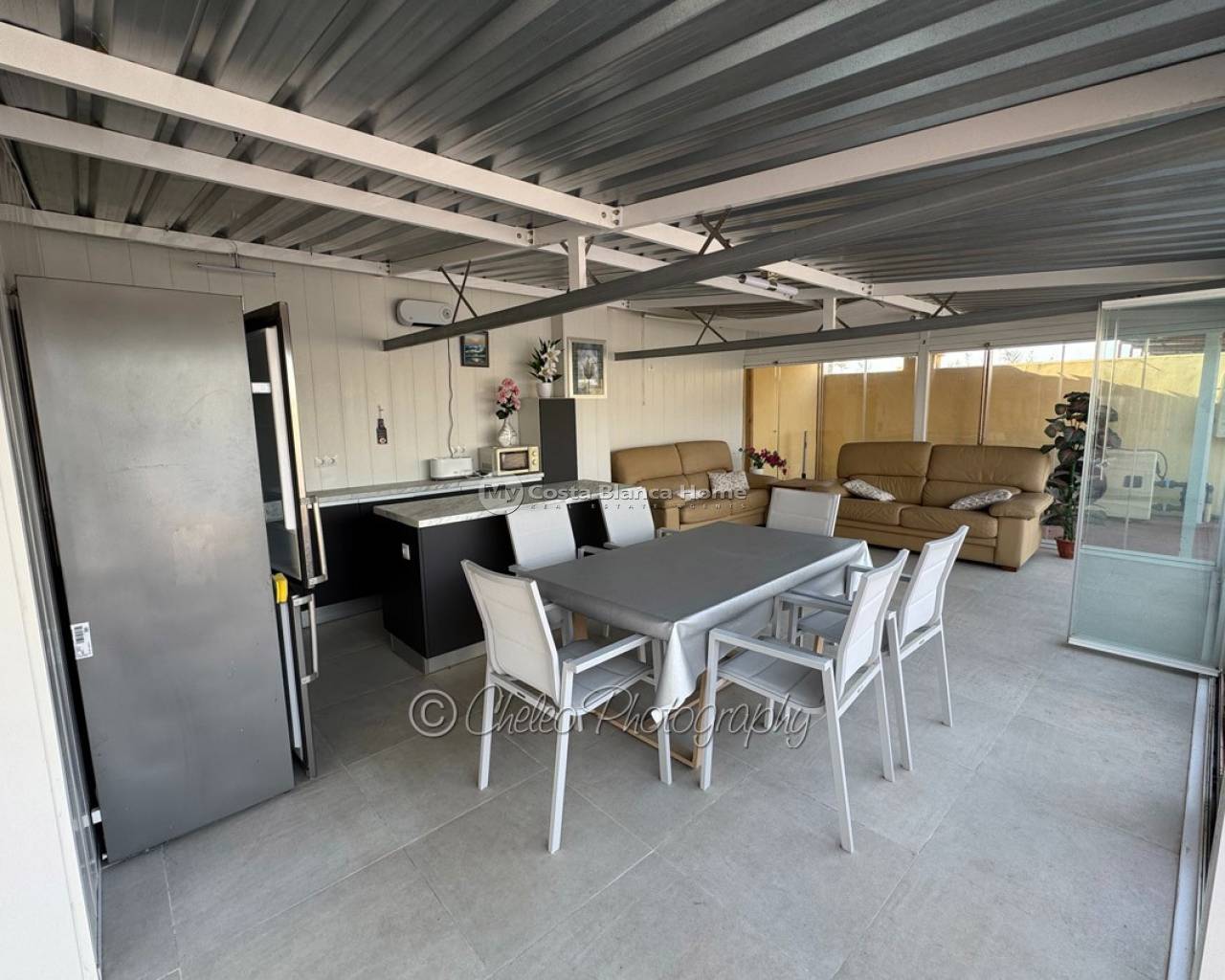 This large 4 bedroom Villa has a stunning garden with a private 15m x 5m heated swimming pool, jacuzzi and summer kitchen with dining area complete with glass curtains.
