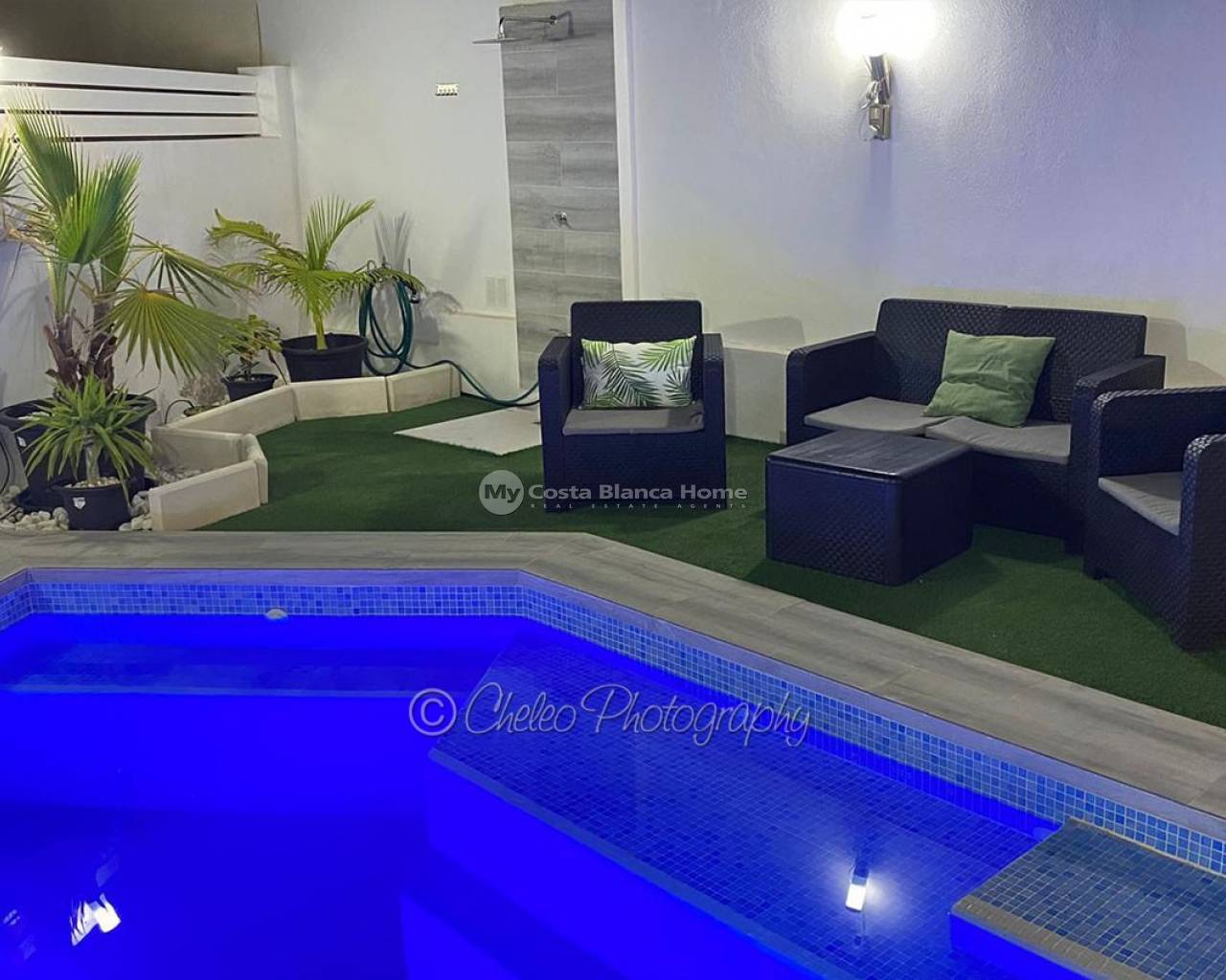 Property Features: 2 bright, sunny bedrooms 1 modern bathroom Completely renovated in 2021 – all installations and finishes are brand new Private garden with multiple outdoor areas and chill-out zones Recently refurbished private swimming pool Air conditioning for year-round comfort High-speed fiber optic internet CCTV system and security alarms Private storage room Communal parking