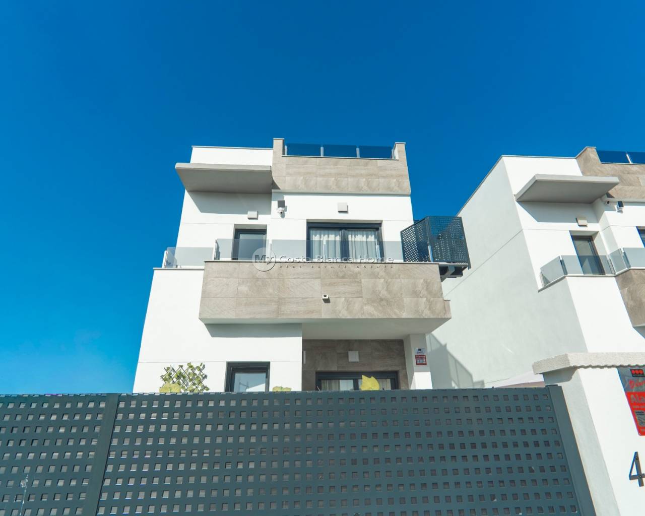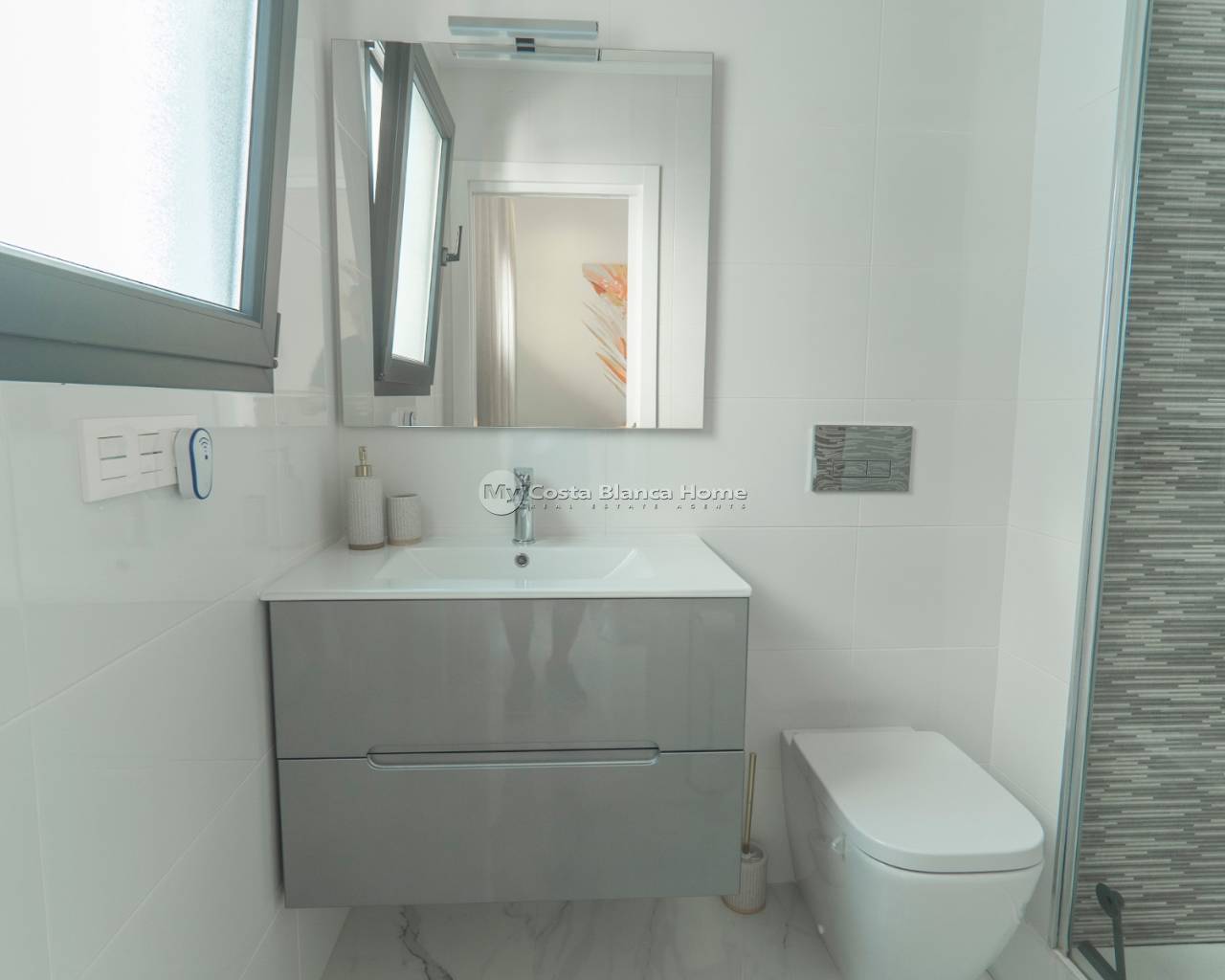 NOUVEAU - Construit en 2025 - Villa individuelle avec piscine privée et terrasse ensoleillée donnant sur le lac salé de La Florida, Torrevieja Excellente opportunité de réaliser une excellente affaire, car le même bien (sans extras) est disponible directement auprès du promoteur à un prix nettement supérieur. Acheté neuf par les propriétaires actuels en mars 2025. Cette élégante maison allie design moderne et détente en extérieur : piscine privée, terrasses spacieuses et solarium de 45,7 m² avec vue imprenable sur le lac salé. Commerces, plages et commodités locales sont accessibles à pied. Idéale comme résidence principale, maison de vacances ou investissement. Caractéristiques principales Meublé 3 chambres doubles | 3 salles de bains Piscine privée, douche extérieure et plusieurs terrasses. Solarium de 45,7 m² avec vue sur le lac salé et en partie sur les montagnes Cuisine ouverte moderne et séjour avec accès à la piscine Parking hors rue, portail piéton et portail voiture Chambre principale et deuxième chambre avec salles de bains privatives et placards intégrés Escalier moderne avec garde-corps en verre et pergola en acier dans le jardin d'hiver Description de la propriété Villa individuelle impeccable à La Florida, Torrevieja . Le séjour lumineux et ouvert est conçu pour une harmonie parfaite entre intérieur et extérieur. Des portes-fenêtres donnent directement sur la terrasse de la piscine, créant une connexion harmonieuse entre le séjour et les espaces extérieurs ensoleillés. La cuisine moderne complète parfaitement l'agencement et offre tout le nécessaire pour un quotidien détendu ou pour recevoir des invités. Le rez-de-chaussée comprend une chambre double et une élégante salle de bains familiale avec douche à l'italienne, idéale pour les invités ou ceux qui souhaitent dormir au rez-de-chaussée. Un imposant escalier avec balustrade en verre mène à l'étage, où se trouvent deux spacieuses chambres doubles. La chambre principale (12,4 m²) dispose de deux placards intégrés, de portes-fenêtres donnant sur une terrasse privée et d'une luxueuse salle de bains attenante avec douche à jets puissants. La deuxième chambre double (12,5 m²) dispose également de placards intégrés, d'une élégante salle de bains attenante et d'une terrasse privée. Depuis la terrasse supérieure, un escalier séparé mène au joyau de la villa : une terrasse ensoleillée de 45,7 m² avec une pergola moderne en acier et une vue imprenable sur les salines de Torrevieja et les collines environnantes. Que vous recherchiez un endroit calme pour prendre un verre au coucher du soleil, un coin repas en plein air ou un salon ombragé sur le toit, la terrasse ensoleillée offre une flexibilité exceptionnelle et une vue panoramique. Localisation et style de vie Cette villa située dans le quartier résidentiel prisé de La Florida offre un équilibre idéal entre tranquillité et confort. Elle se trouve à quelques minutes des commerces, cafés et supermarchés, et offre un accès facile au célèbre centre commercial Zenia Boulevard et aux plages d' Orihuela Costa . Les commodités de Torrevieja, telles que les restaurants, les centres de santé et les installations de loisirs, sont à quelques minutes en voiture, tandis que les aéroports d'Alicante et de Murcie sont à environ 30 à 45 minutes. Les lacs salés et les sentiers côtiers à proximité offrent d'excellentes possibilités de randonnée pédestre et cycliste, faisant de cette villa un lieu idéal pour les familles, les amateurs de soleil et les investisseurs. Plus de détails Climatisation intégrée et volets électriques dans toute la maison. Construction moderne avec des caractéristiques contemporaines. Bâtiment moderne achevé en mars 2025 Appareils électroménagers écoénergétiques et extérieur facile d'entretien. Efficacité énergétique B Votre prochaine étape Organisez une visite privée dès aujourd'hui. Cette villa individuelle avec piscine privée et vue imprenable depuis sa terrasse ensoleillée sera bientôt disponible.