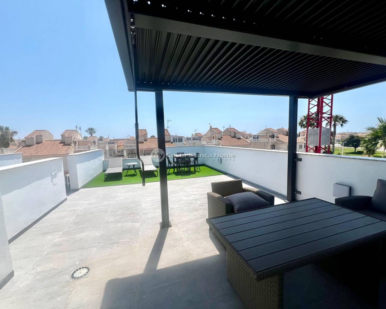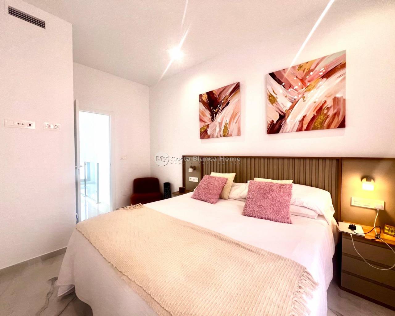 Villa individuelle avec piscine privée et solarium avec vue sur le lac rose~~Découvrez cette superbe villa individuelle avec piscine privée, située dans un quartier calme et entourée de nature — idéale pour ceux qui recherchent confort, intimité et style de vie méditerranéen.~~Édifiée sur une parcelle de 116 m², la maison se répartit sur deux niveaux, avec une surface construite totale de 106 m².~~Au rez-de-chaussée, vous trouverez un salon-salle à manger lumineux avec cuisine ouverte, une chambre double et une salle de bain complète : tout le nécessaire pour vivre de plain-pied en toute commodité.~~À l'étage, deux grandes chambres, chacune avec sa propre salle de bain privative, donnent accès à un magnifique solarium avec vue dégagée sur le célèbre lac rose de Torrevieja, l’un des paysages les plus emblématiques de la région.~~L’espace extérieur est entièrement carrelé, garantissant un entretien minimal et un maximum de confort. La piscine privée est parfaite pour se détendre, profiter du soleil ou partager des moments entre amis ou en famille.~~Le mobilier n’est pas inclus dans le prix, mais peut être acquis séparément.~~Une propriété unique, pleine de charme et de caractère, parfaite pour ceux qui recherchent une maison moderne et fonctionnelle, proche de toutes les commodités, tout en profitant de la tranquillité de la nature.