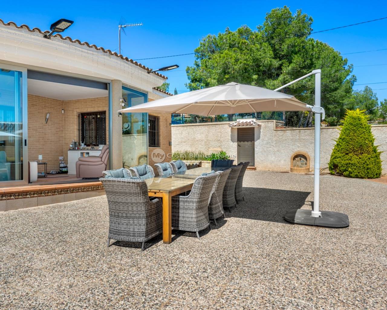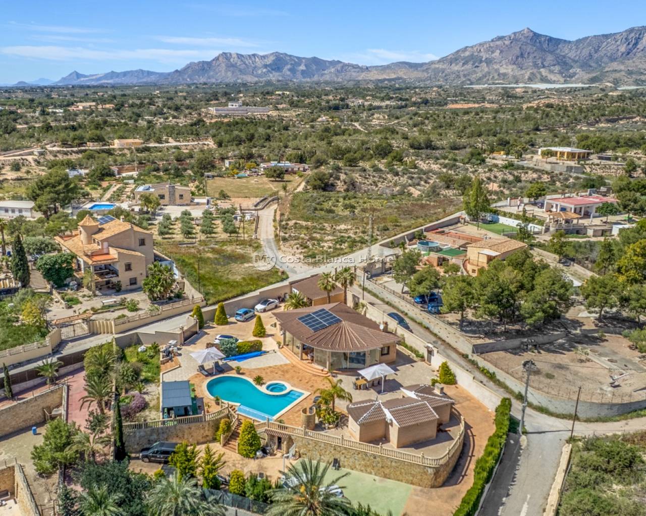 Découvrez cette propriété spectaculaire à Crevillente, un véritable havre de paix où intimité et confort se conjuguent harmonieusement. Située sur un vaste terrain de 2 500 m², avec 180 m² habitables, cette propriété est idéale pour ceux qui recherchent un style de vie exclusif en pleine nature. À l'extérieur, vous serez séduit par son impressionnante et grande piscine chauffée, parfaite pour en profiter toute l'année, ainsi que par un garage pratique pouvant accueillir deux véhicules. Elle dispose également d'une charmante maison d'amis indépendante, équipée d'une salle de bains, d'une cuisine et d'une chambre, idéale pour recevoir confortablement famille et amis. La maison principale comprend une magnifique véranda vitrée, un espace lumineux et agréable qui invite à la détente même par temps frais. À l'intérieur, vous trouverez un salon spacieux et accueillant climatisé, une cuisine indépendante entièrement équipée, trois chambres lumineuses et une salle de bains. Toutes les pièces sont climatisées, et la propriété comprend également une buanderie et un cellier pour plus de commodité. Son orientation exceptionnelle garantit un ensoleillement optimal tout au long de la journée, tandis que ses vastes espaces extérieurs offrent d'innombrables possibilités de loisirs et de détente. Une propriété unique, prête à emménager, où chaque détail a été pensé pour profiter pleinement de la vie.