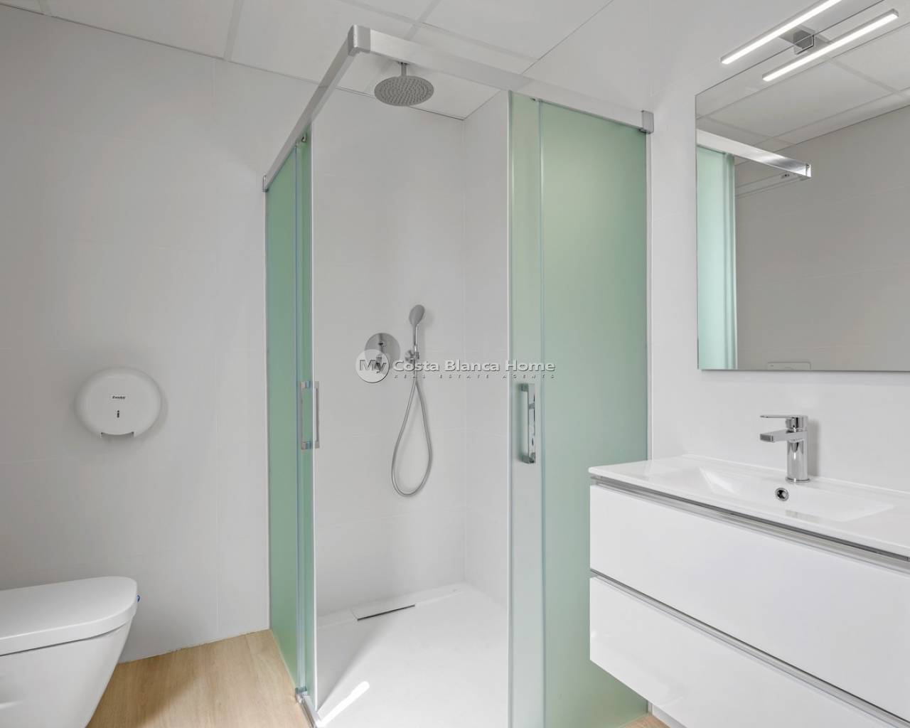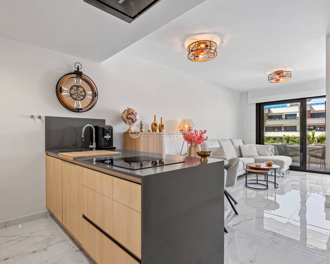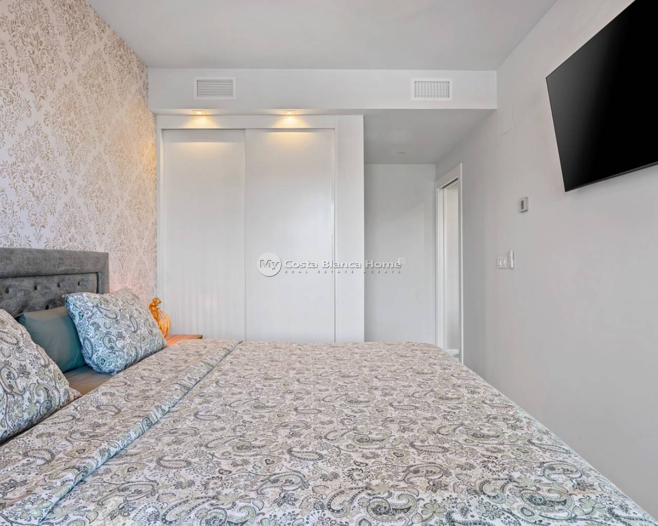 Appartement de luxe dans le Resort Amanecer X, situé dans le quartier prisé de Los Altos à Orihuela Costa. Cet appartement moderne et élégant, livré en 2024, représente une excellente opportunité comme résidence secondaire, habitation principale ou investissement avec un fort potentiel locatif. L’appartement dispose d’un lumineux séjour ouvert avec cuisine et espace salle à manger, conçu pour optimiser l’espace et la lumière naturelle. De grandes baies vitrées créent une atmosphère aérée et donnent un accès direct à une spacieuse terrasse privée, permettant une parfaite continuité entre intérieur et extérieur. La cuisine est entièrement équipée avec des appareils modernes et présente une finition contemporaine et épurée. Il comprend deux grandes chambres avec placards intégrés, situées côté terrasse, ainsi que deux salles de bains modernes avec des finitions de haute qualité. L’appartement est vendu entièrement meublé et offre une surface totale de 65 m² avec une disposition fonctionnelle et équilibrée. L’un des atouts majeurs est la grande terrasse privée de plus de 25 m², offrant une vue sur les jardins paysagers et la piscine commune. Grâce à son orientation sud-ouest, elle bénéficie d’un excellent ensoleillement, idéale pour se détendre ou prendre ses repas en extérieur. Situé au premier étage du bâtiment numéro 8 avec ascenseur, l’appartement comprend également une place de parking souterrain et un espace de rangement privé. Il est équipé de la climatisation, d’un système Airzone, du chauffage au sol dans les salles de bains et de volets électriques, garantissant un confort toute l’année. Il est en parfait état, entièrement meublé et prêt à emménager. Les résidents d’Amanecer X profitent d’un cadre de type resort avec une grande piscine commune, une piscine pour enfants, une salle de sport entièrement équipée, ainsi qu’un jacuzzi et un sauna, le tout entouré de magnifiques jardins tropicaux adaptés aux personnes à mobilité réduite. L’emplacement est très pratique : restaurants, cafés et supermarchés sont accessibles à pied, et le centre commercial La Zenia Boulevard se trouve à quelques minutes en voiture. Les amateurs de golf trouveront plusieurs parcours à proximité, dont Villamartín Golf à 5 minutes, Real Club de Golf Campoamor et Las Ramblas Golf à environ 10 minutes, et le prestigieux Las Colinas Golf & Country Club à environ 15 minutes. Les plages de sable d’Orihuela Costa sont accessibles en moins de 10 minutes. Les aéroports d’Alicante (45 min) et de Murcie (35–40 min) sont facilement accessibles.