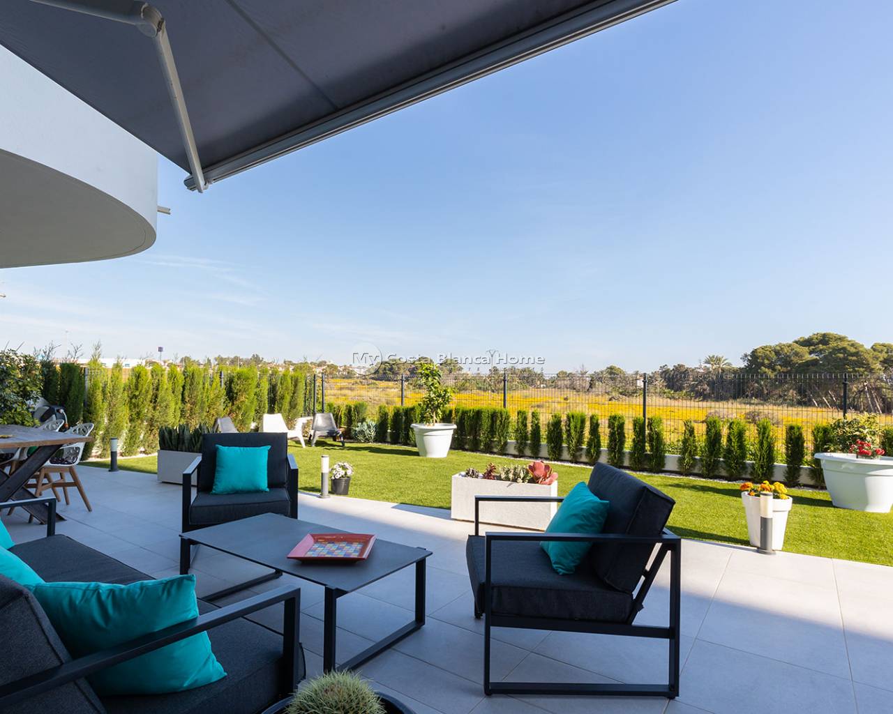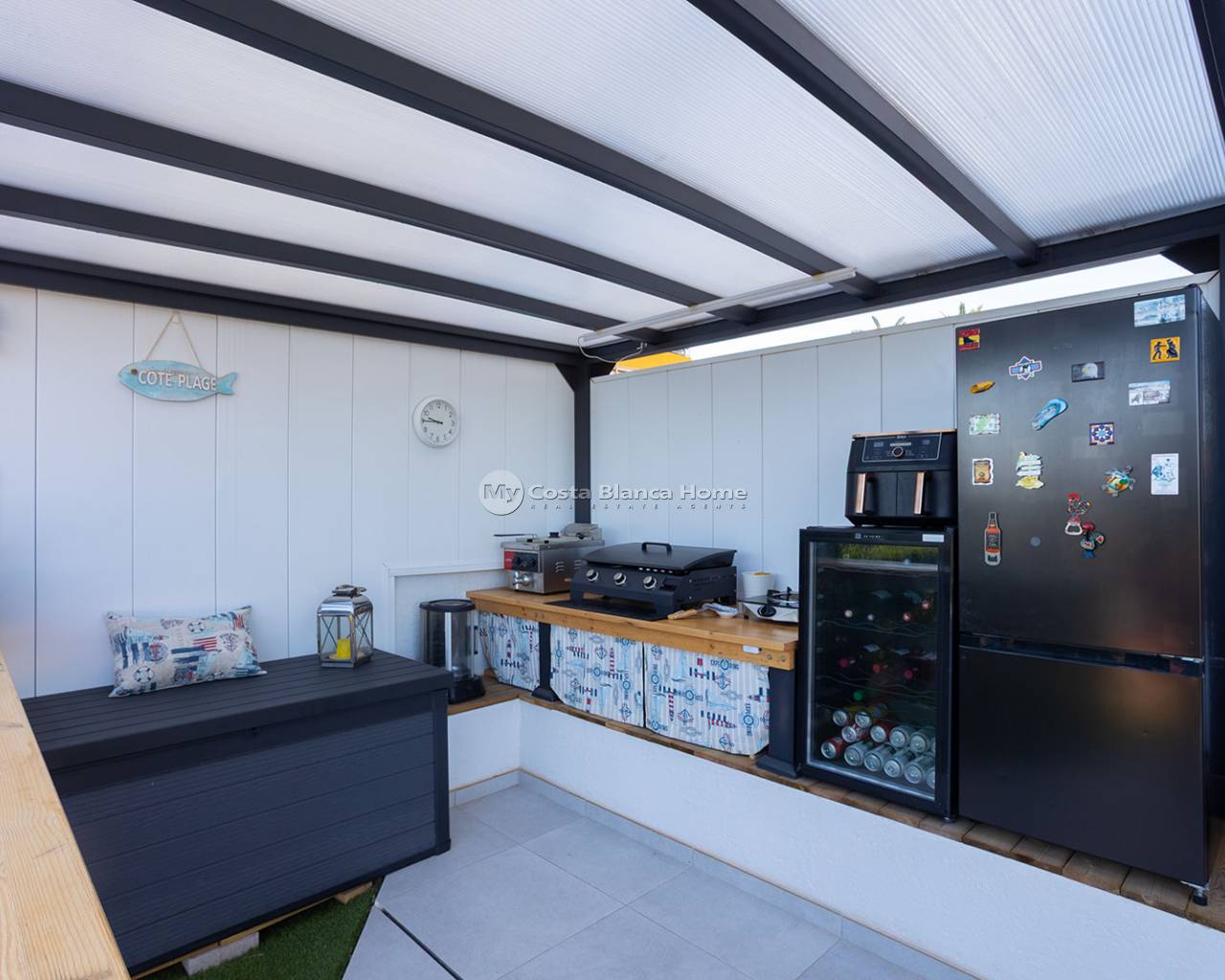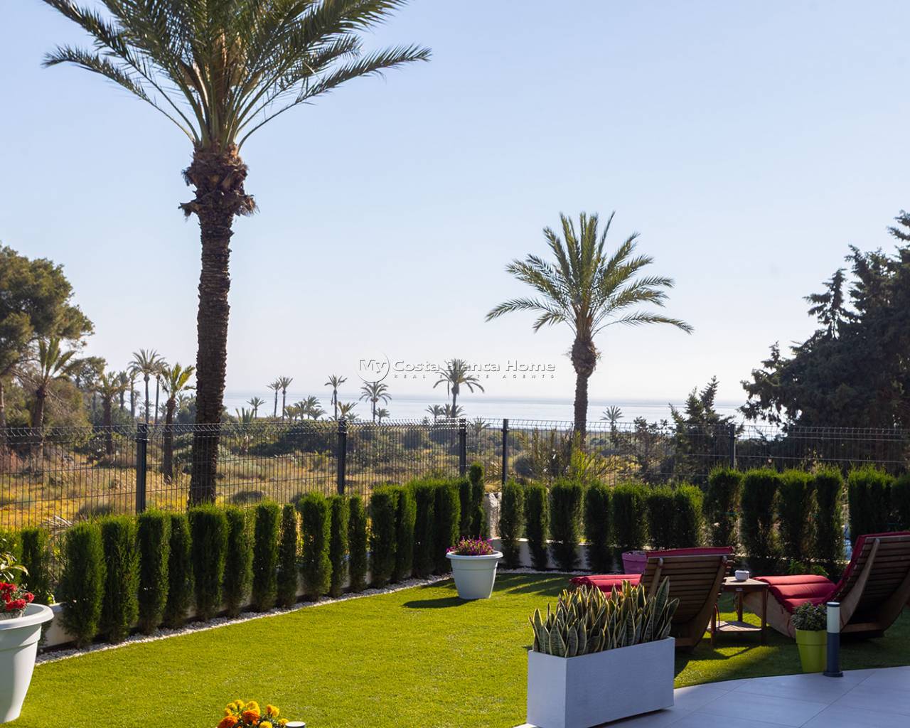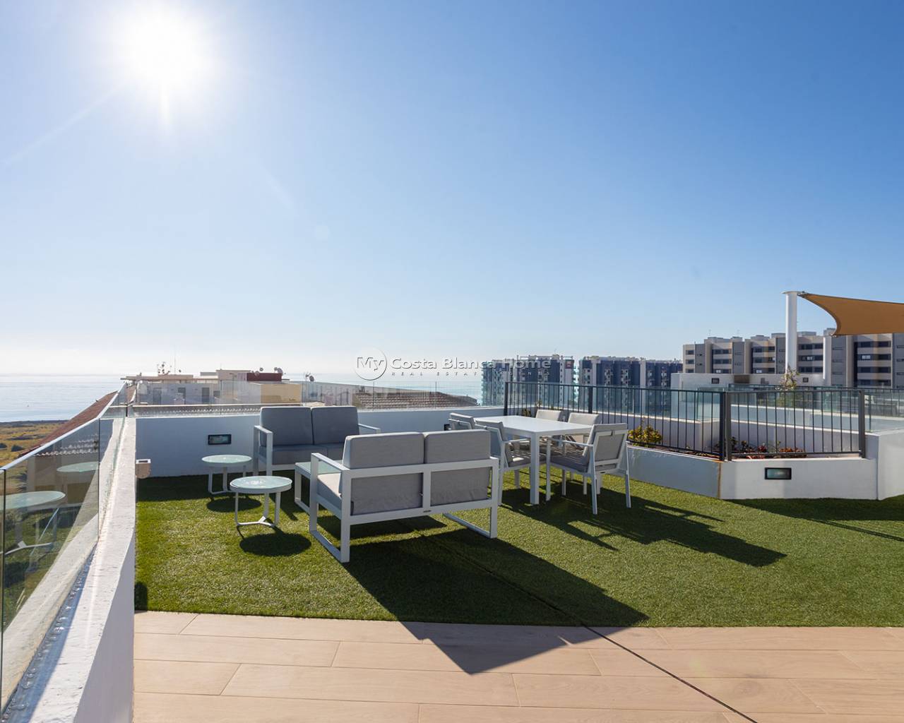 Cet appartement du complexe Ocean Dream se distingue par sa fonctionnalité et son emplacement stratégique, à seulement 200 mètres de la plage de Punta Prima. Avec 84 m² de surface, la propriété est distribuée en deux chambres et deux salles de bains complètes. Son principal atout est le vaste espace extérieur privatif : une terrasse reliée à un jardin de 95 m², conservant des vues dégagées inhabituelles sur la mer depuis le rez-de-chaussée.Sur le plan architectural, le complexe résidentiel optimise l'utilisation de l'espace en plaçant les espaces communs sur le toit. Ce toit-terrasse commun comprend une piscine, un jacuzzi et un espace barbecue, garantissant un ensoleillement maximal et des vues panoramiques ininterrompues sur la Méditerranée.Le logement est situé dans une zone entièrement consolidée, avec tous les services essentiels, supermarchés et restaurants accessibles à pied. Il se trouve à seulement 5 minutes en voiture du centre commercial Zenia Boulevard et à environ 45 minutes de l'aéroport d'Alicante, s'affirmant comme un atout très solide tant pour un usage résidentiel que pour un investissement.