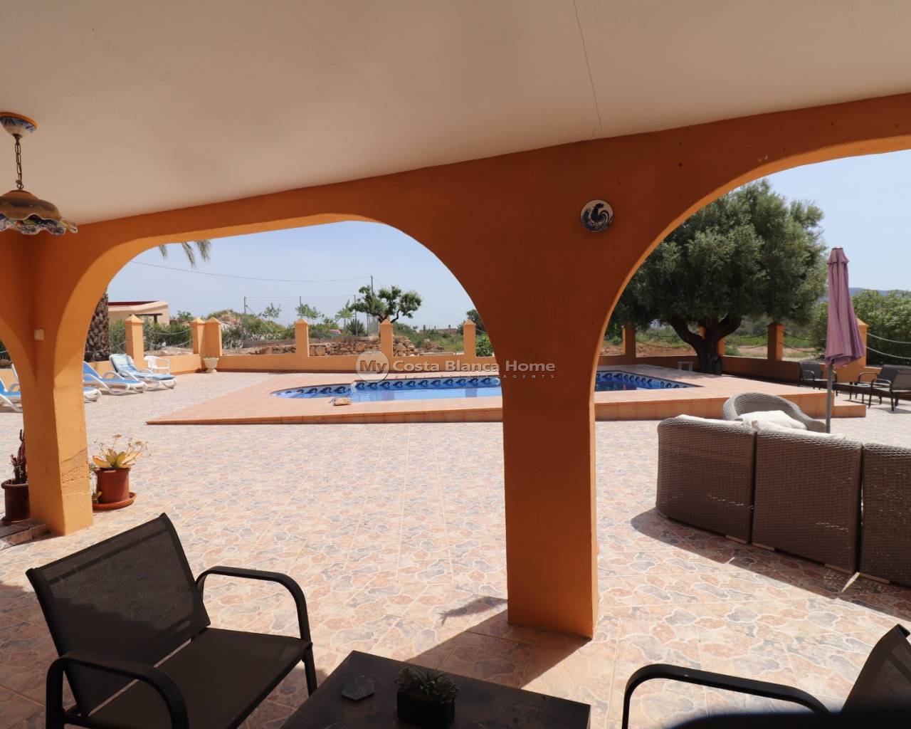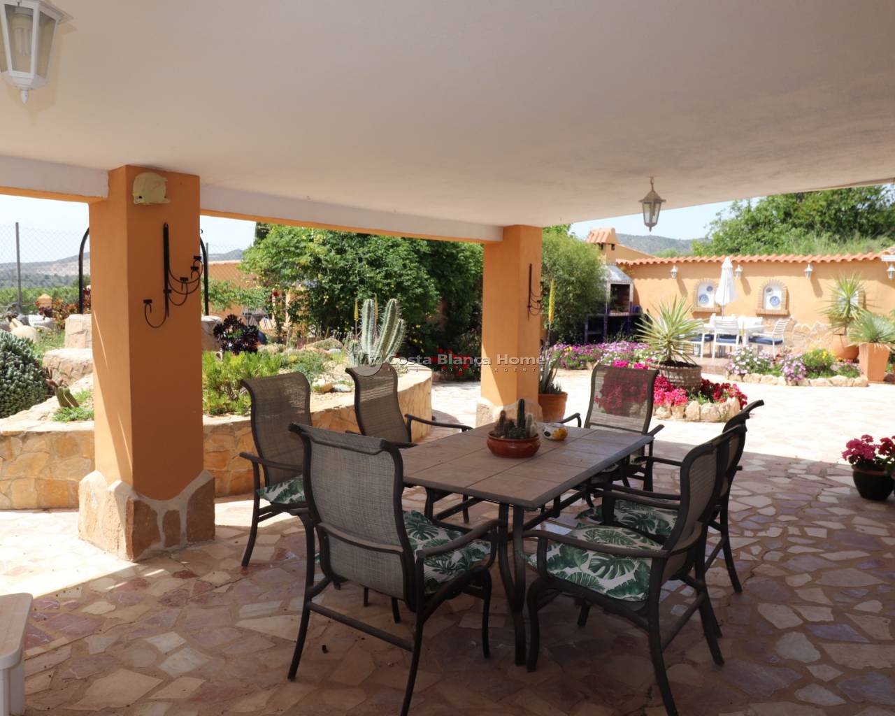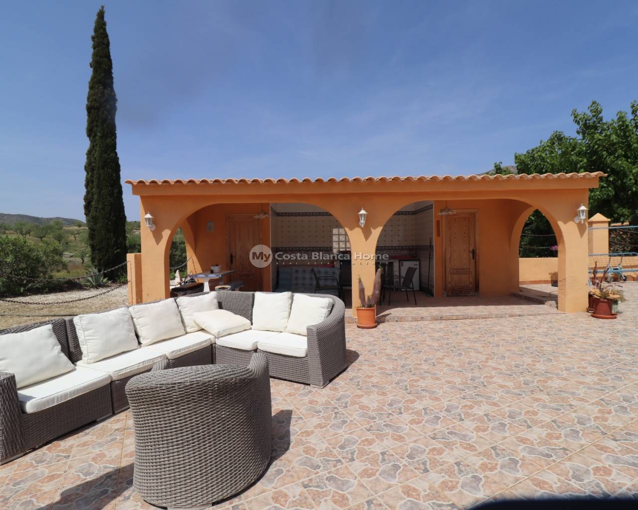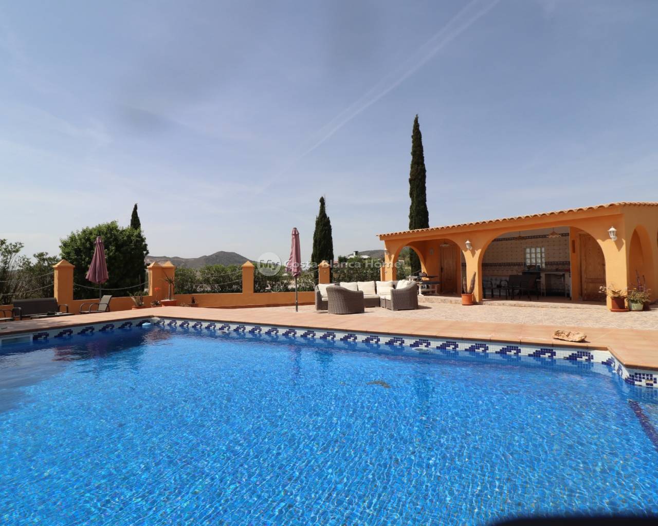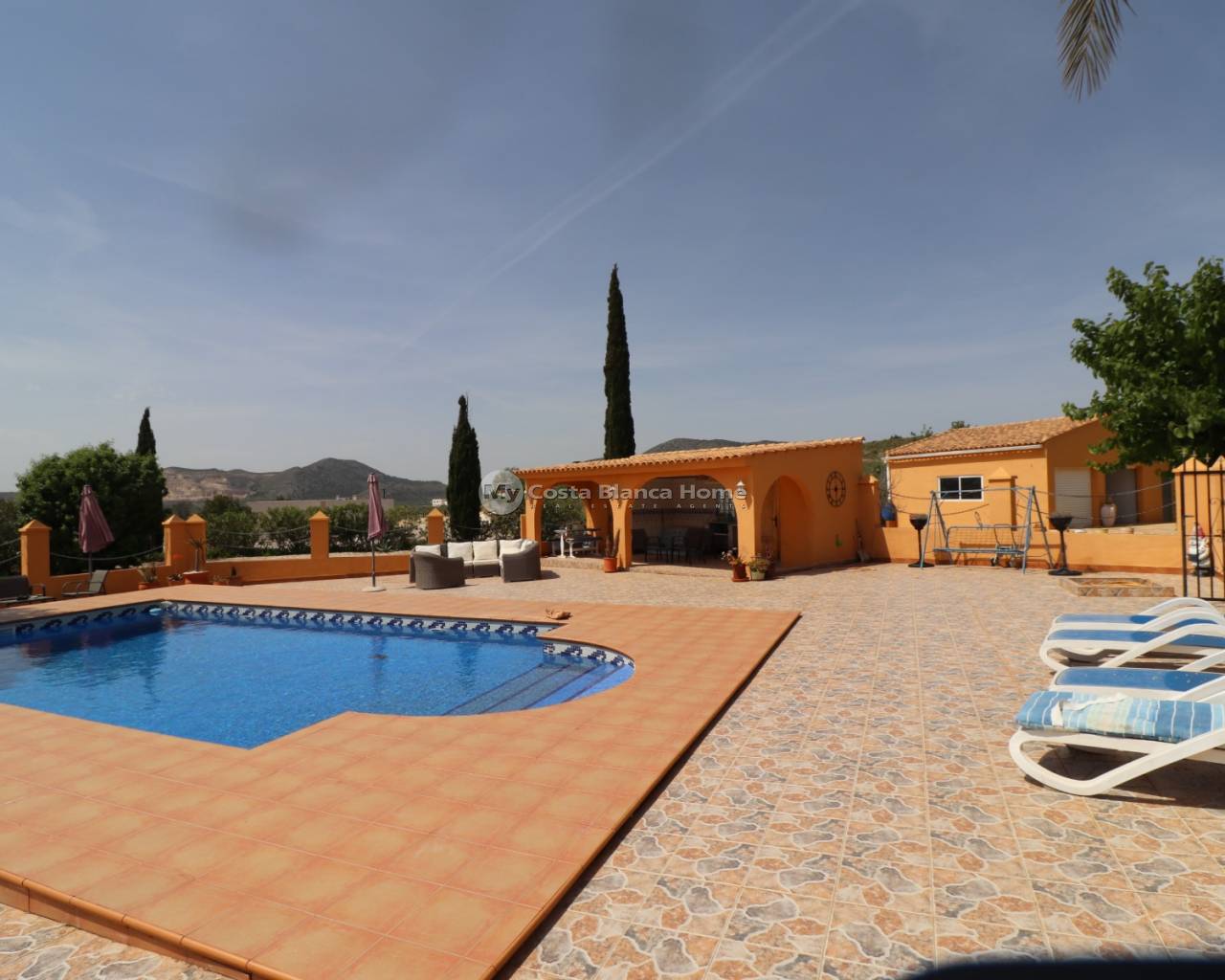Cette très belle propriété se situe dans un superbe endroit tranquille à quelques minutes de voiture des 2 villages d'Hondon de las nieves et d'Hondon de los frailes aveec toutes les commodités. Il y a plus de 400m2 de surface construite comprenant la maison principale avec une partie cueva, un espace piscine avec terrasse couverte, cuisine d'été, local technique et toilette, des rangements, une buanderie ainsi qu'un double garage avec atelier qui pourrait facilement être transformé en appartement séparé. La maison principale se compose de plusieurs livings, salons, salle à manger, d'une cuisine équipée, d'un cellier et de 5 chambres et de 2 salles de bain. Les chambres sont dans la cueva ce qui apporte du charme et beaucoup nde fraicheur en été. Devant la maison, l'espace est occupé par une terrasse couverte et une spacieuse terrasse avec coin barbecue. La piscine est superbe et est située juste en face. La maison est connectée au réseau d'eau, d'électricité et dispose d'internet et d'un appareil d'air conditionné chaud/froid. C'est un bien rare, avec beaucoup de charme et qui doit être vu pour se rendre compte