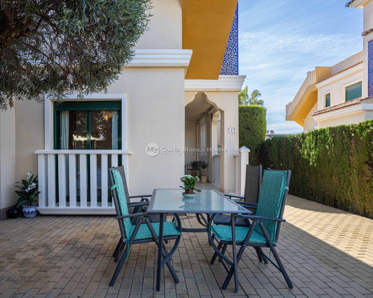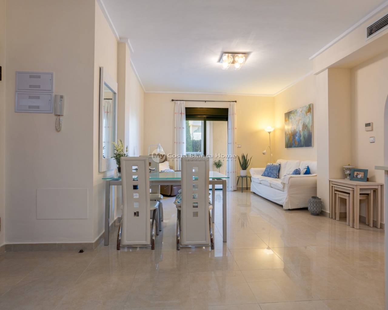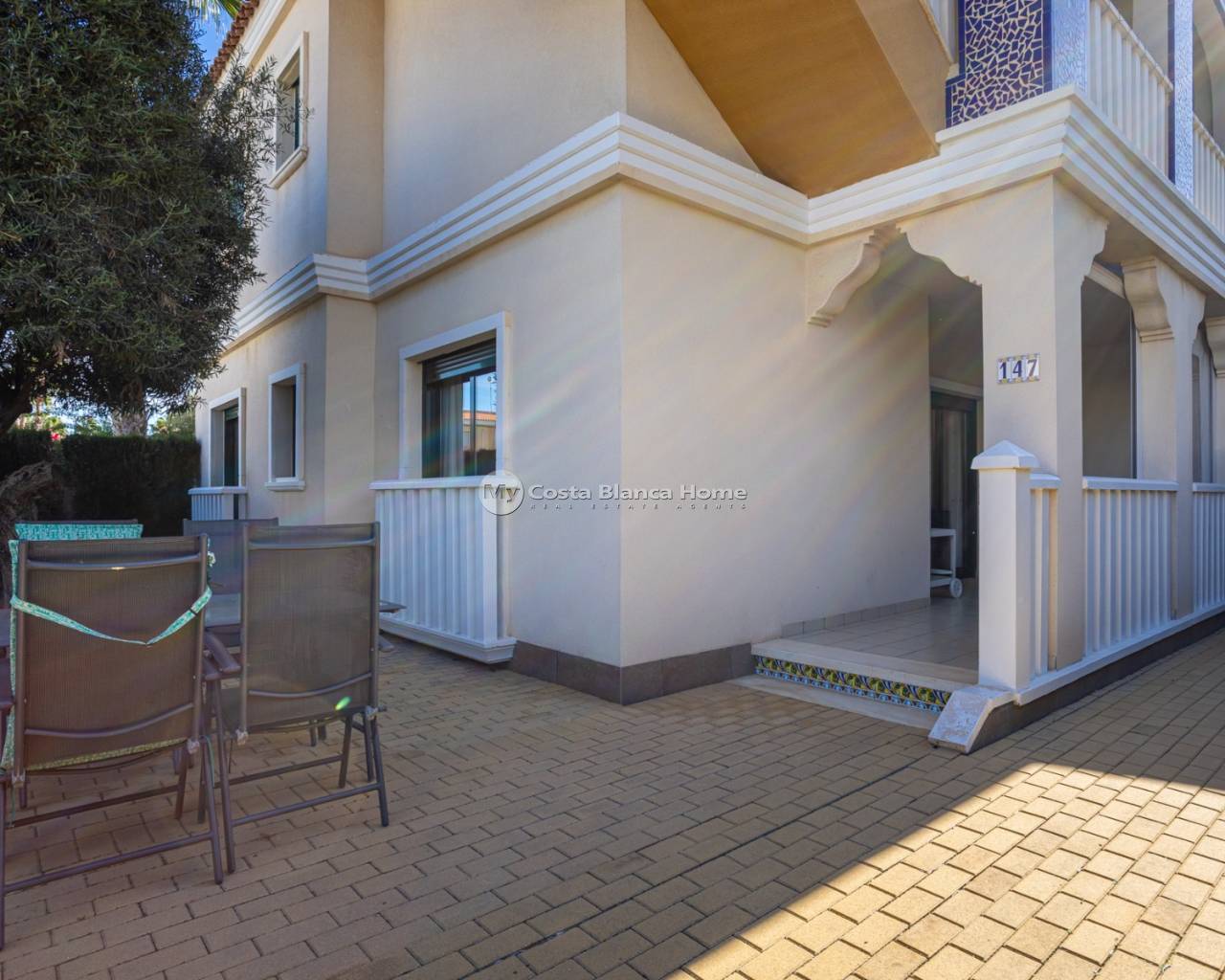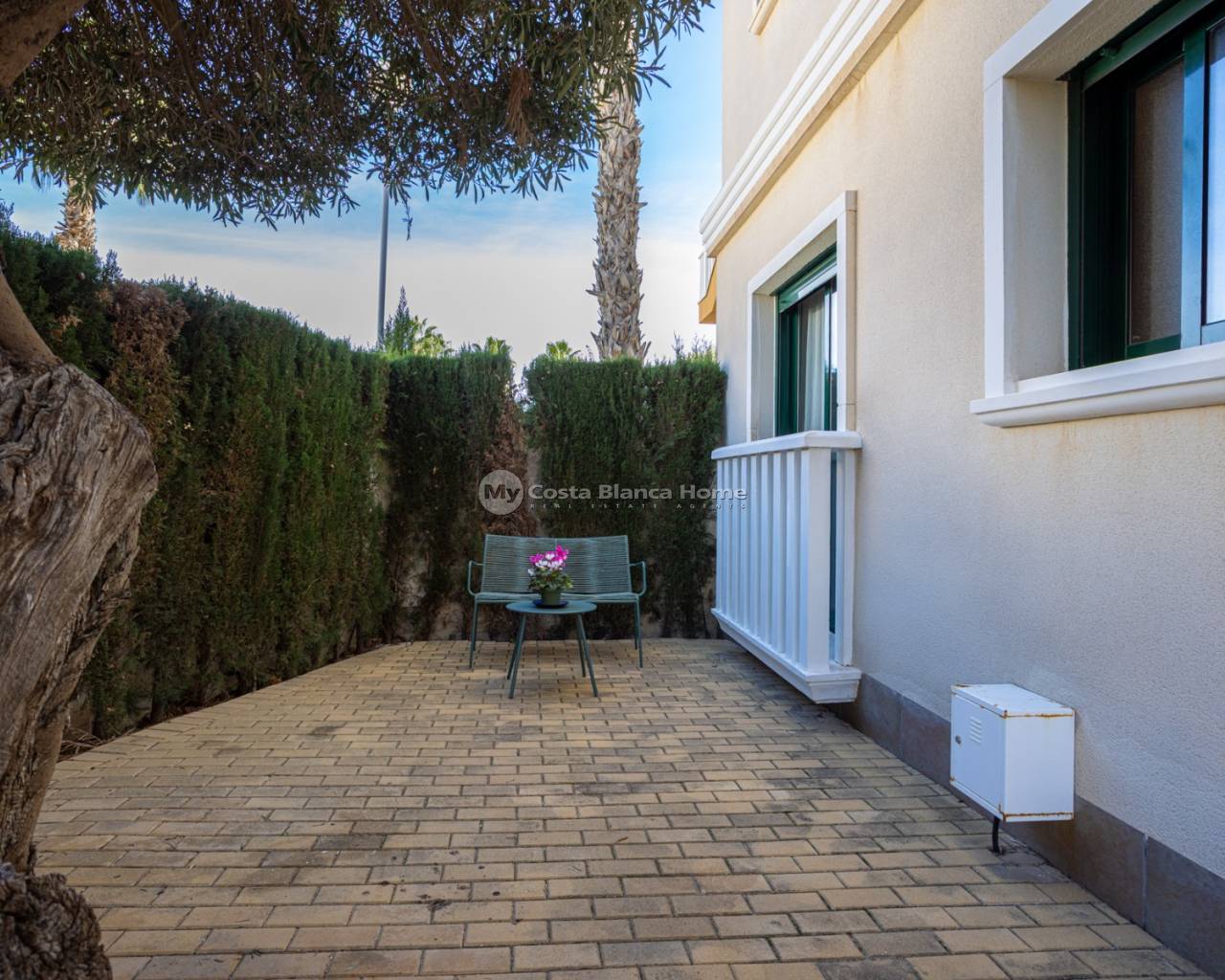 Appartement op de begane grond met tuin en gemeenschappelijk zwembad in Ciudad Quesada Wij presenteren dit charmante appartement op de begane grond, gelegen in een van de meest gewilde woonwijken van Doña Pepa, in de gemeente Rojales. Een perfecte woning voor wie op zoek is naar comfort, een mediterrane stijl en de nabijheid van alle voorzieningen. Met een bebouwde oppervlakte van 84 m² beschikt deze woning over een praktische en lichte indeling. Bij binnenkomst in het appartement vindt u een ruime overdekte veranda, ideaal om het hele jaar door te genieten van het warme klimaat van de Costa Blanca. De woonkamer bestaat uit een gezellige woon-/eetkamer met een open keuken, volledig uitgerust met moderne apparatuur, waardoor een functionele en comfortabele ruimte ontstaat voor dagelijks gebruik. Het appartement beschikt over twee ruime slaapkamers, beide met inbouwkasten, en een complete badkamer met smaakvolle afwerking. De woning verkeert in uitstekende staat, is direct bewoonbaar en wordt volledig gemeubileerd opgeleverd, inclusief alle elektrische apparaten in de keuken en airconditioning, voor optimaal comfort het hele jaar door. Het terras naast de woonkamer is voorzien van verticale toldo's (zonneschermen), die in de zomer voor schaduw zorgen en in de koelere maanden voor wat extra warmte zorgen. Buiten beschikt de woning over een privétuin, perfect om te ontspannen, te zonnebaden of buiten te eten. Er is ook een privéparkeerplaats direct voor de tuinpoort. Er is toegang tot niet één, maar drie prachtige gemeenschappelijke zwembaden, omgeven door goed onderhouden groene zones, ideaal om te ontspannen en te genieten van de omgeving. Ongeëvenaarde locatie: De woning ligt op slechts 12 minuten van de stranden van Guardamar en Torrevieja, op 40 minuten van de luchthaven van Alicante, op 5 minuten van recreatiegebieden, restaurants en supermarkten, en op 7 minuten van de golfbaan La Marquesa, een van de meest gerenommeerde in de regio. Deze woning is een uitstekende optie voor zowel permanente bewoning als vakantiewoning, of zelfs een geweldige investeringsmogelijkheid dankzij de grote vraag naar vakantieverhuur.