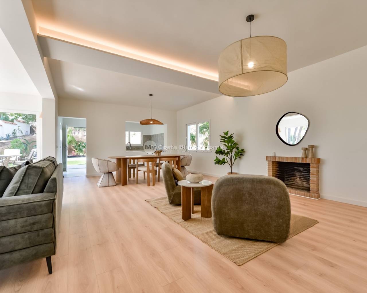 Deze charmante vrijstaande villa valt op door haar uitstekende ligging, vlak bij de golfbaan van Altea la Vella, en haar grote verkooppotentieel. Ze biedt volledige rust en privacy, omgeven door een groene, uitnodigende tuin. Perfect voor wie op zoek is naar natuur, sereniteit en een modern, comfortabel thuis. De volledig gerenoveerde woning beschikt over 195 m² bebouwde oppervlakte en 153 m² bruikbare woonruimte, gelegen op een royaal perceel van 1.440 m². De indeling is licht en functioneel: drie slaapkamers, elk met een eigen en-suite badkamer, plus een extra gastentoilet op de begane grond. Alle ruimtes zijn uitgerust met airconditioning (warm/koud). De woning wordt verkocht zonder meubels en beschikt over een afgesloten garage voor één auto en ruimte voor twee extra voertuigen op de oprit. Buiten bevindt zich een zoetwaterzwembad van 9 × 3,5 meter, met een diepte van 1,10 tot 1,60 meter — perfect om te genieten van het mediterrane klimaat. Een ideale woning voor wie wil wonen in rust en natuur, op slechts enkele minuten van alle voorzieningen en met een bevoorrechte ligging in Altea la Vella.