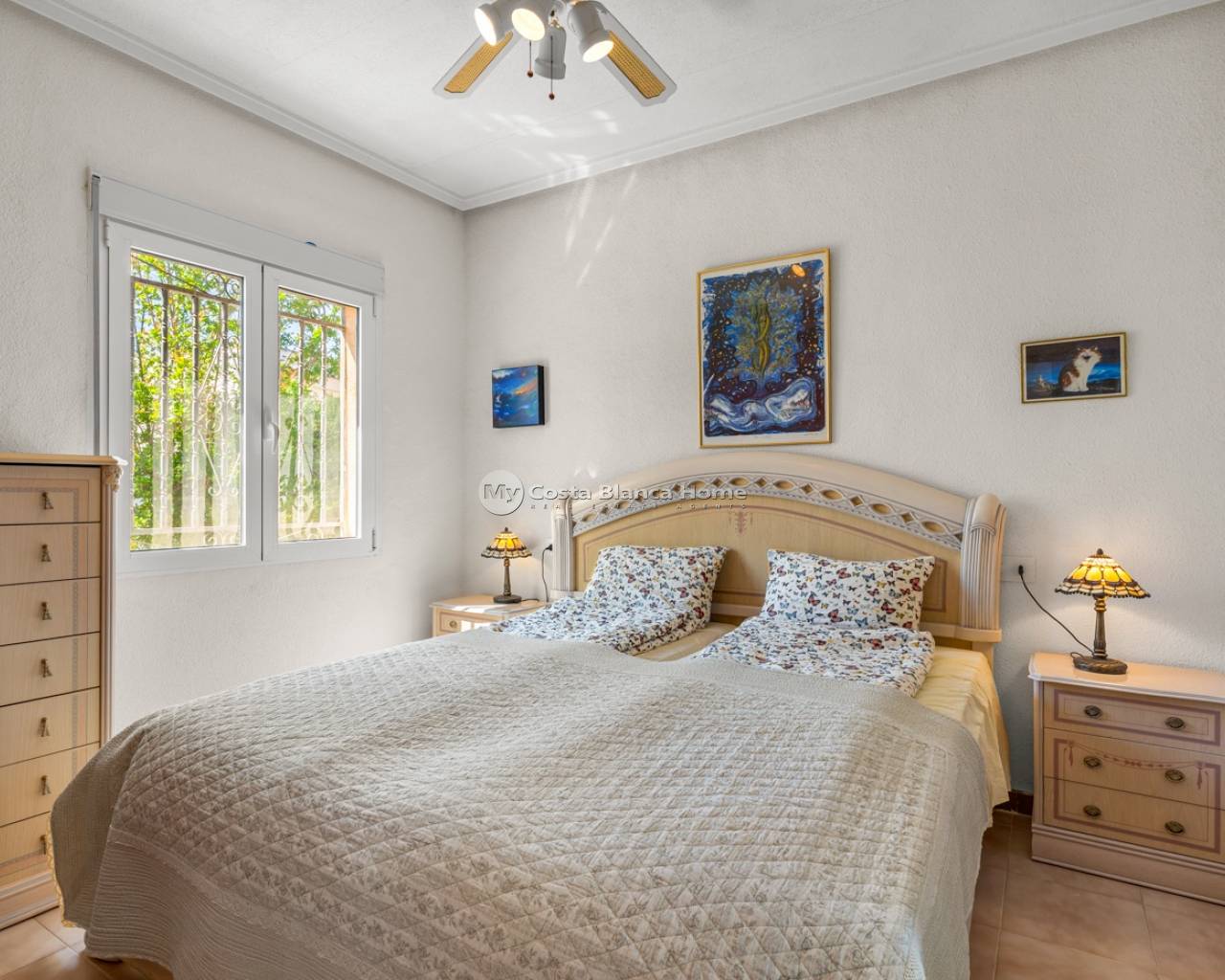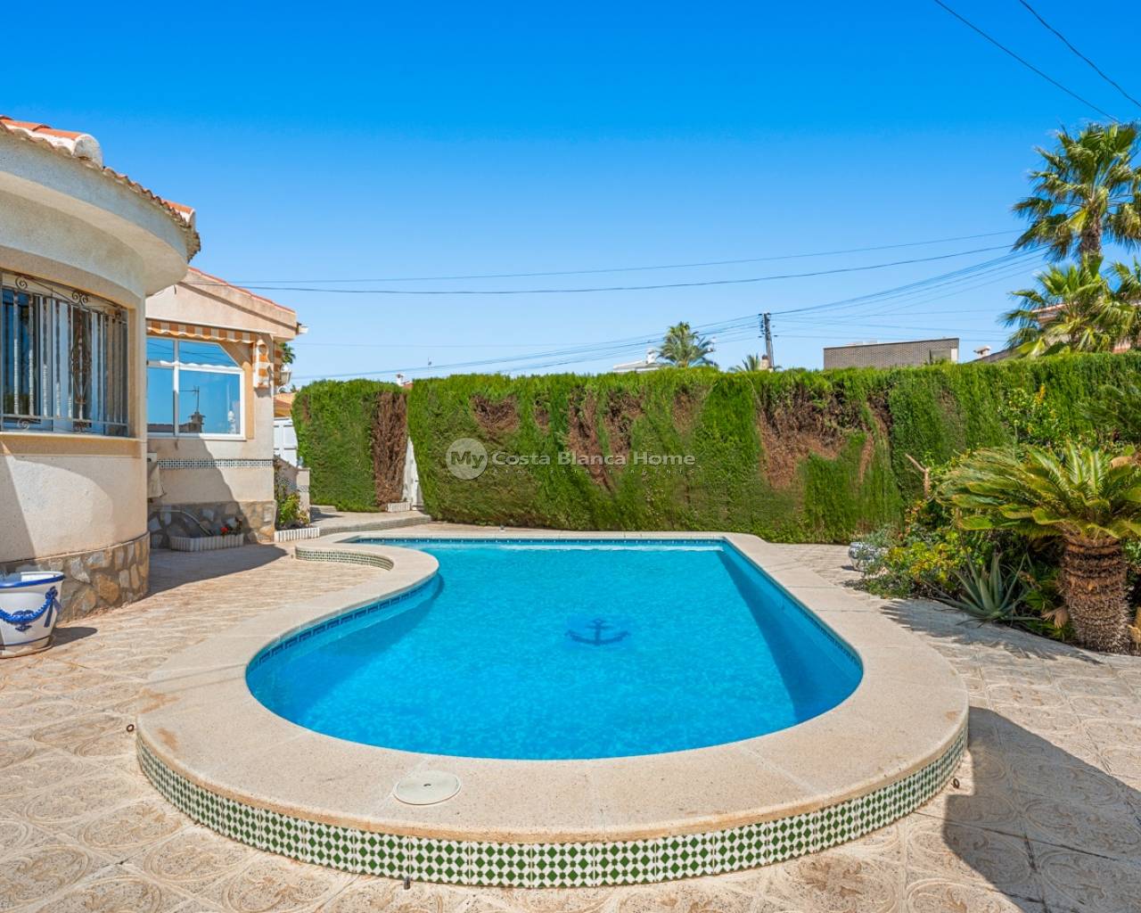 Charmante villa met 2 slaapkamers en 2 badkamers en een privézwembad in Ciudad Quesada. De villa is gelijkvloers en heeft een woonoppervlakte van 100 m². Ze bestaat uit twee tweepersoonsslaapkamers met ingebouwde kasten, een badkamer met ligbad, een open keuken met woonkamer en een glazen terras dat dienstdoet als eetkamer. De woning is uitgerust met airconditioning (warm/koud), een open haard in de woonkamer en dubbele beglazing. De woning beschikt ook over een garage met badkamer, bereikbaar via een automatische poort. BuitenruimteDe villa ligt op een zuidgericht hoekperceel van 504 m². In de tuin vindt u een zwembad, buitendouche, een berging en veel ruimte voor zitgedeeltes buiten. Boven de garage bevindt zich een klein dakterras.