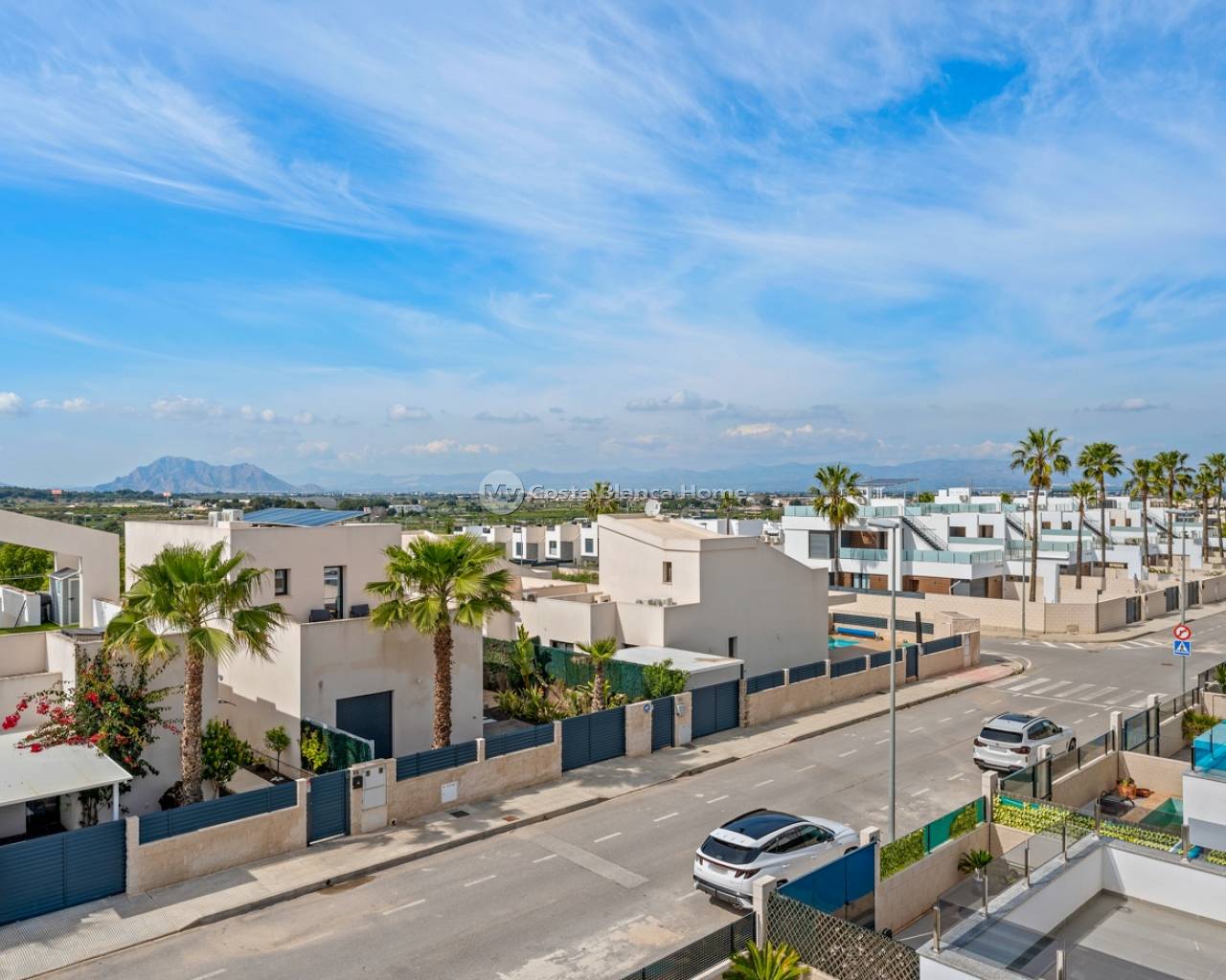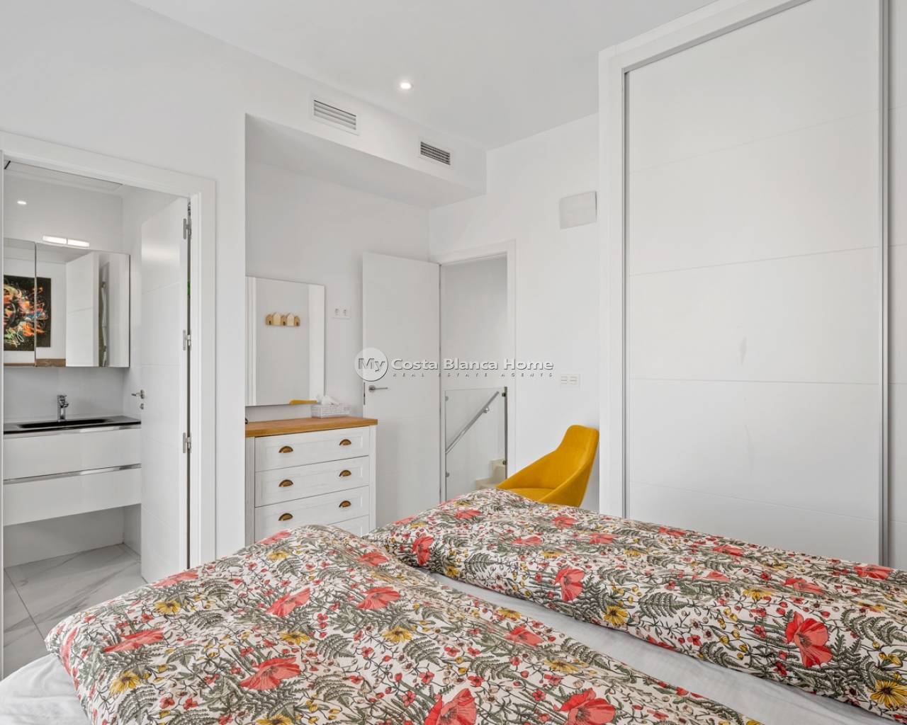 Deze moderne villa met 3 slaapkamers in Benijófar, gebouwd in 2023, biedt een stijlvol ontwerp, een privé verwarmd zwembad en uitstekende buitenruimtes. De woning heeft een bebouwde oppervlakte van 111 m², verdeeld over twee verdiepingen, en bestaat uit 3 tweepersoonsslaapkamers en 3 badkamers. Op de begane grond vindt u één tweepersoonsslaapkamer, een badkamer en een lichte open keuken met eet- en woonkamer. Grote schuifdeuren vanuit de woonkamer geven directe toegang tot de tuin en het zwembad, waardoor binnen- en buitenleven naadloos in elkaar overlopen. Op de eerste verdieping bevinden zich twee ruime tweepersoonsslaapkamers, beide met een eigen badkamer (en-suite). De hoofdslaapkamer heeft toegang tot een privéterras, en vanaf deze verdieping heeft u ook toegang tot het grote dakterras. De villa werd voltooid in 2023 en beschikt over verschillende moderne voorzieningen, waaronder: Centrale airconditioning (warm/koud)Vloerverwarming in de woonkamer en alle badkamersOsmose waterfiltersysteem in de keukenIngebouwde kasten in alle slaapkamersZonnepanelen voor warm water en elektriciteit BuitenruimteDe woning ligt op een perceel op het westen met een prachtig aangelegde buitenruimte. De tuin beschikt over een privé verwarmd zwembad, meerdere zit- en eetgedeeltes buiten, en privéparkeergelegenheid op het perceel met een automatische poort. Daarnaast is er een praktische werkruimte met werkbank en een extra berging. Verschillende zonneschermen zijn geplaatst om schaduw te bieden tijdens de warme zomermaanden. Naast de tuin biedt de villa een terras op de eerste verdieping en een ruim dakterras met uitzicht op de bergen, ideaal om te ontspannen of gasten te ontvangen. Het terras bestaat uit zowel betegelde delen als kunstgras, en beschikt over een grote zonwering voor schaduw. LiggingDe villa ligt op loopafstand van de hoofdstraat van Benijófar, waar u een ruime keuze aan restaurants, cafés, winkels en andere voorzieningen vindt.