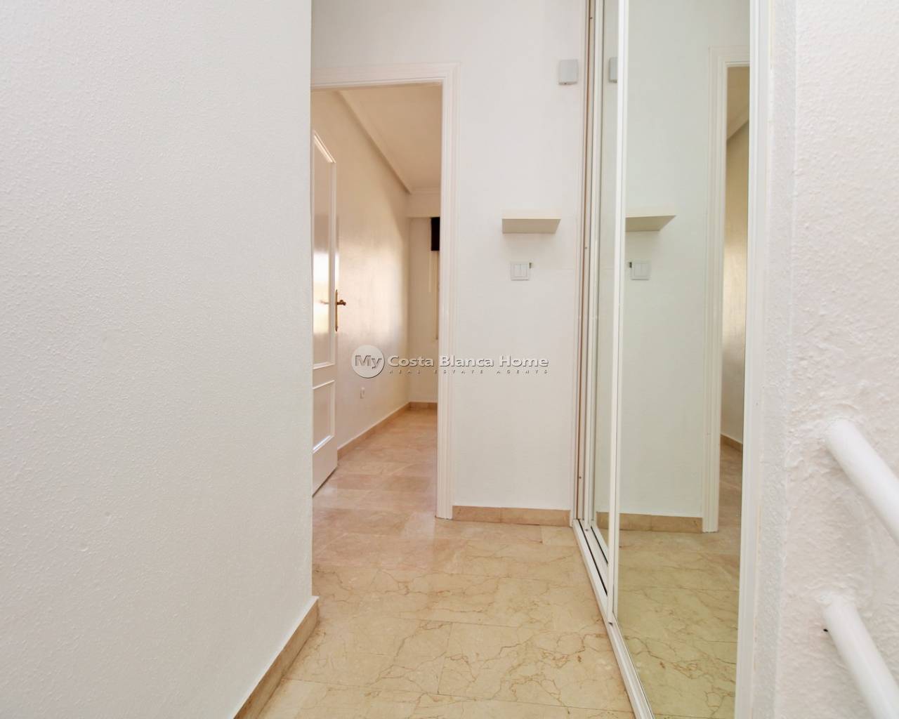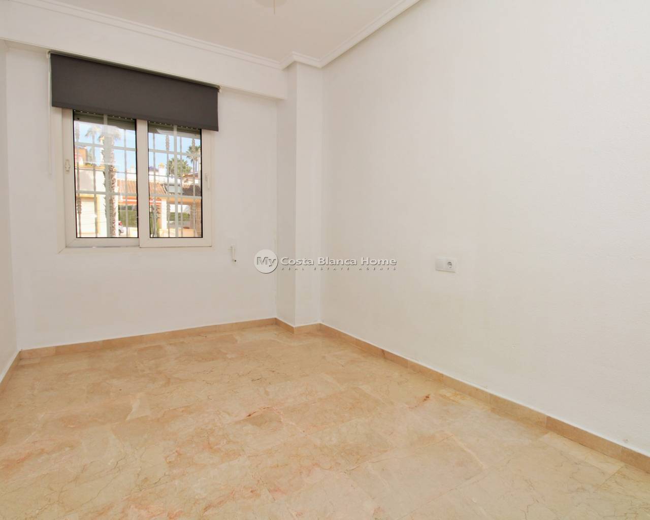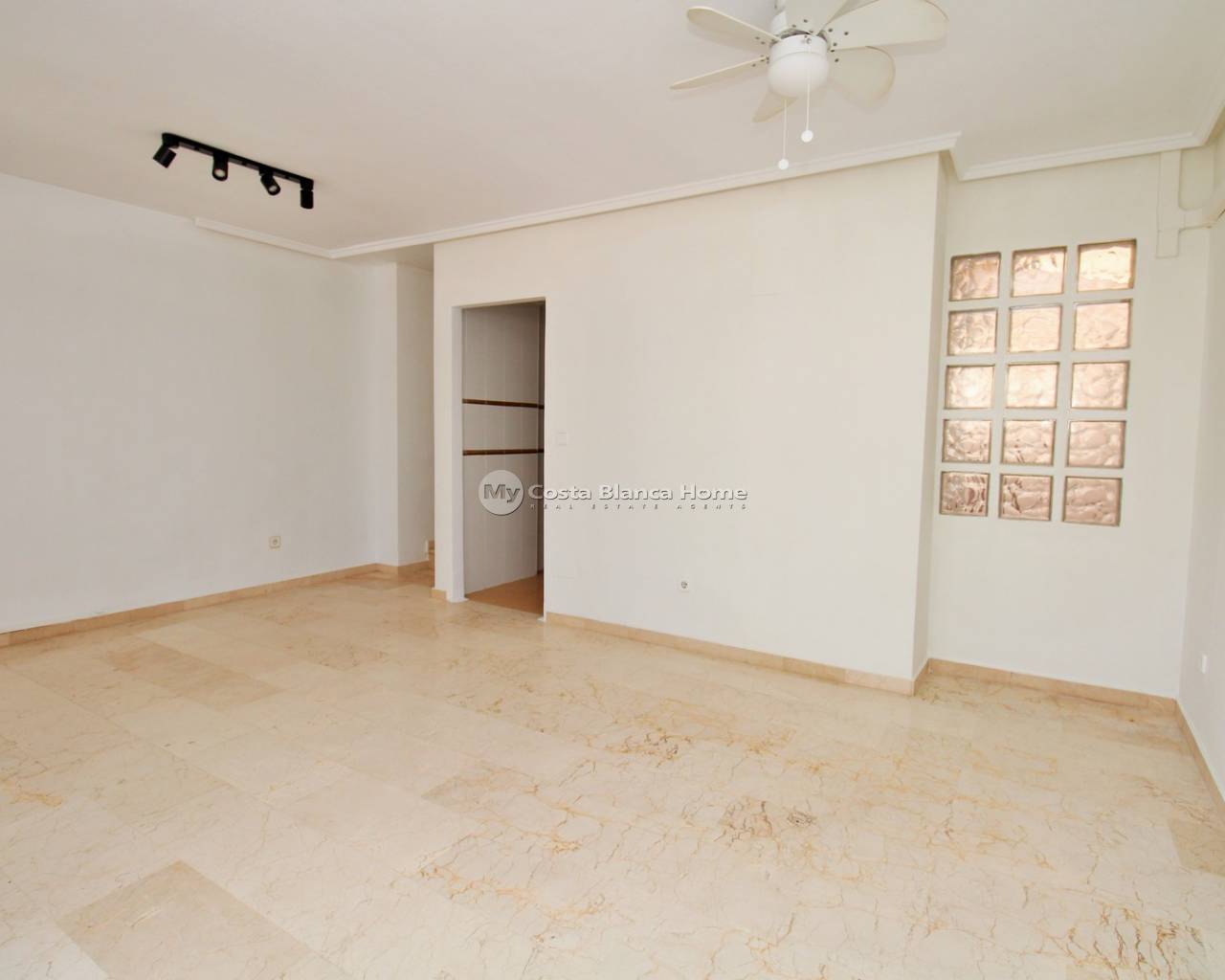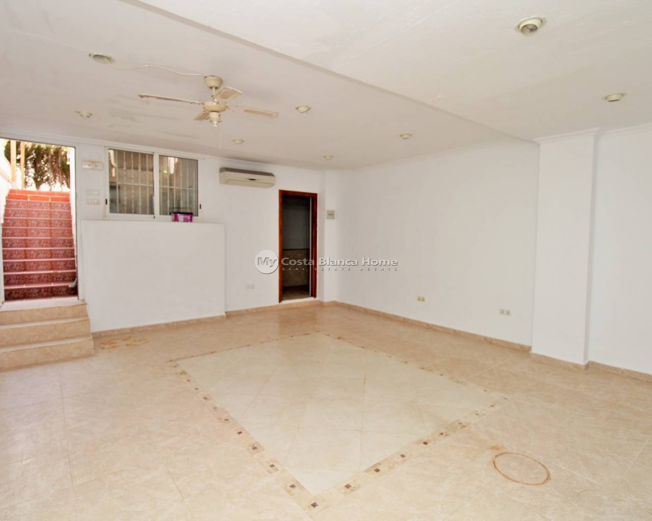Gelegen in de woonwijk Sun Golf Villas in Villamartin, ligt deze woning met 3 slaapkamers op een uitstekende locatie direct naast de Villamartin golfbaan en op loopafstand van het commerciële centrum La Fuente en de Mercadona supermarkt. De woning heeft tevens toegang tot een mooi gemeenschappelijk zwembad. De begane grond bestaat uit een ruime woon-eetkamer, een aparte keuken aan de achterzijde en een bijkeuken. De woning beschikt over marmeren vloeren in de gehele hoofdwoning, wat zorgt voor een lichte en stijlvolle afwerking. Op de bovenverdieping bevinden zich 3 tweepersoonsslaapkamers met inbouwkasten en 2 badkamers. De hoofdslaapkamer heeft toegang tot een privé balkon op het zuiden met uitzicht op de Villamartin golfbaan, terwijl een van de andere slaapkamers ook beschikt over een eigen balkon. De woning beschikt tevens over een ruime kelder met veel potentieel voor extra leefruimte. Deze ruimte bestaat momenteel uit een grote kamer, een badkamer met douche en twee opslagruimtes, ideaal als gastenverblijf, speelkamer, kantoor of multifunctionele ruimte. Gelegen in een goed onderhouden complex op loopafstand van diverse bars, restaurants en supermarkten in La Fuente, evenals dicht bij Villamartin Plaza en de golfbaan. De stranden van Orihuela Costa en Zenia Boulevard zijn binnen enkele minuten rijden bereikbaar. Let op: De woning is verkregen via een gerechtelijke veiling en de bijwerking van de eigendom in het kadaster is momenteel in behandeling. De overdracht kan iets langer duren dan gebruikelijk. Alle juridische documentatie zal aan de advocaat van de koper worden verstrekt.