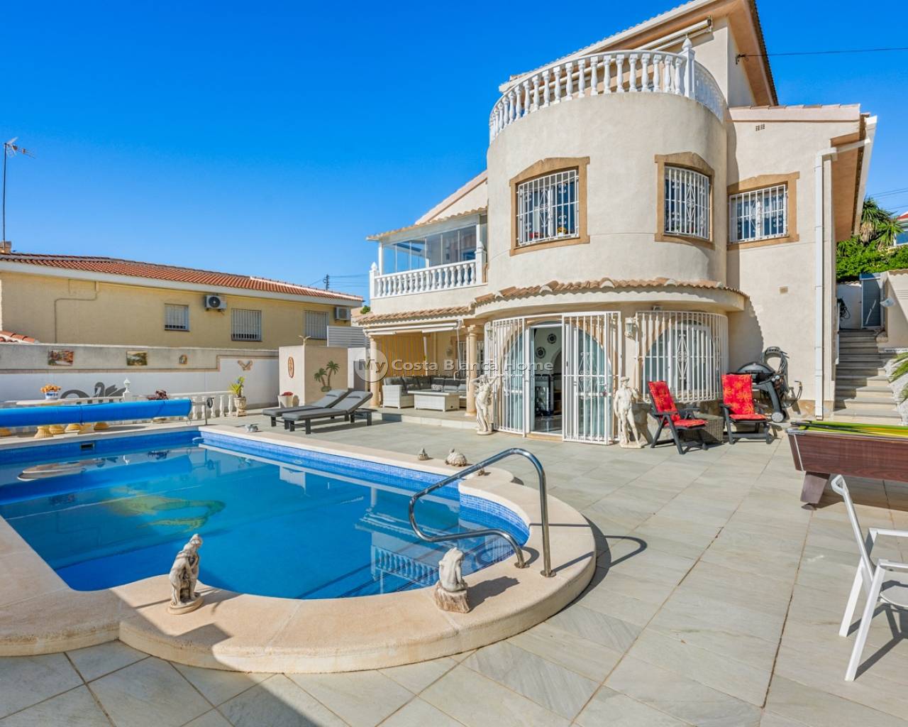 Dicht bij centrum3 slaapkamers / 3 badkamersPerceel van 500 m²Privé zwembadUitzichtApart gastenverblijfBalkonGarage Perfect als vakantiehuis of permanente woning.