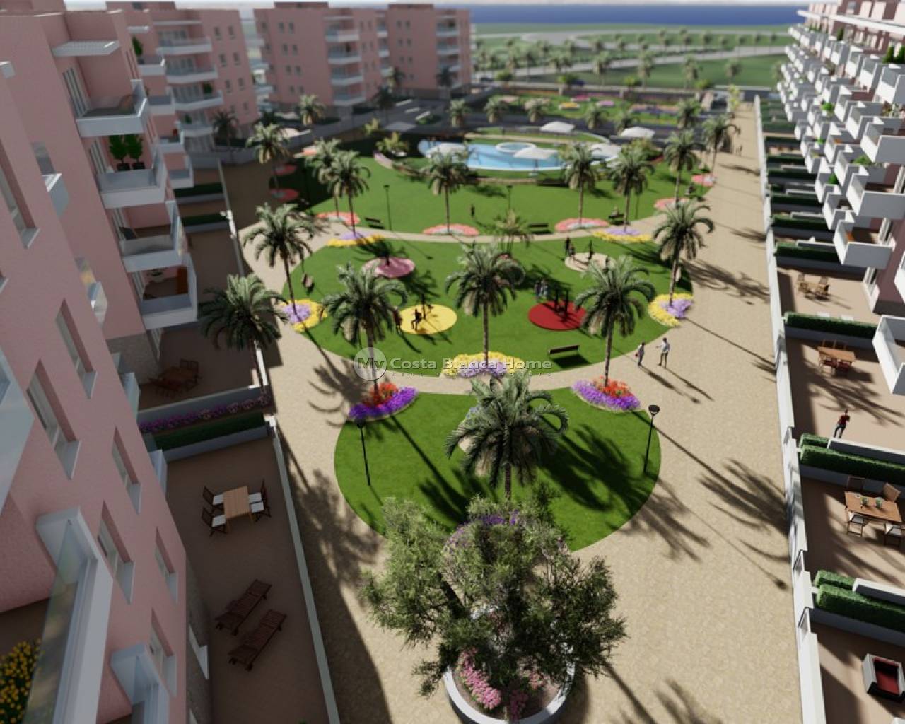 New complex of 175 apartments with beautiful communal areas, located in El Raso, a privileged area in Guardamar del Segura, on the Costa Blanca South. A large selection of daily services, such as supermarkets, bars and restaurants, leisure and sports activities are available, just a short drive away.