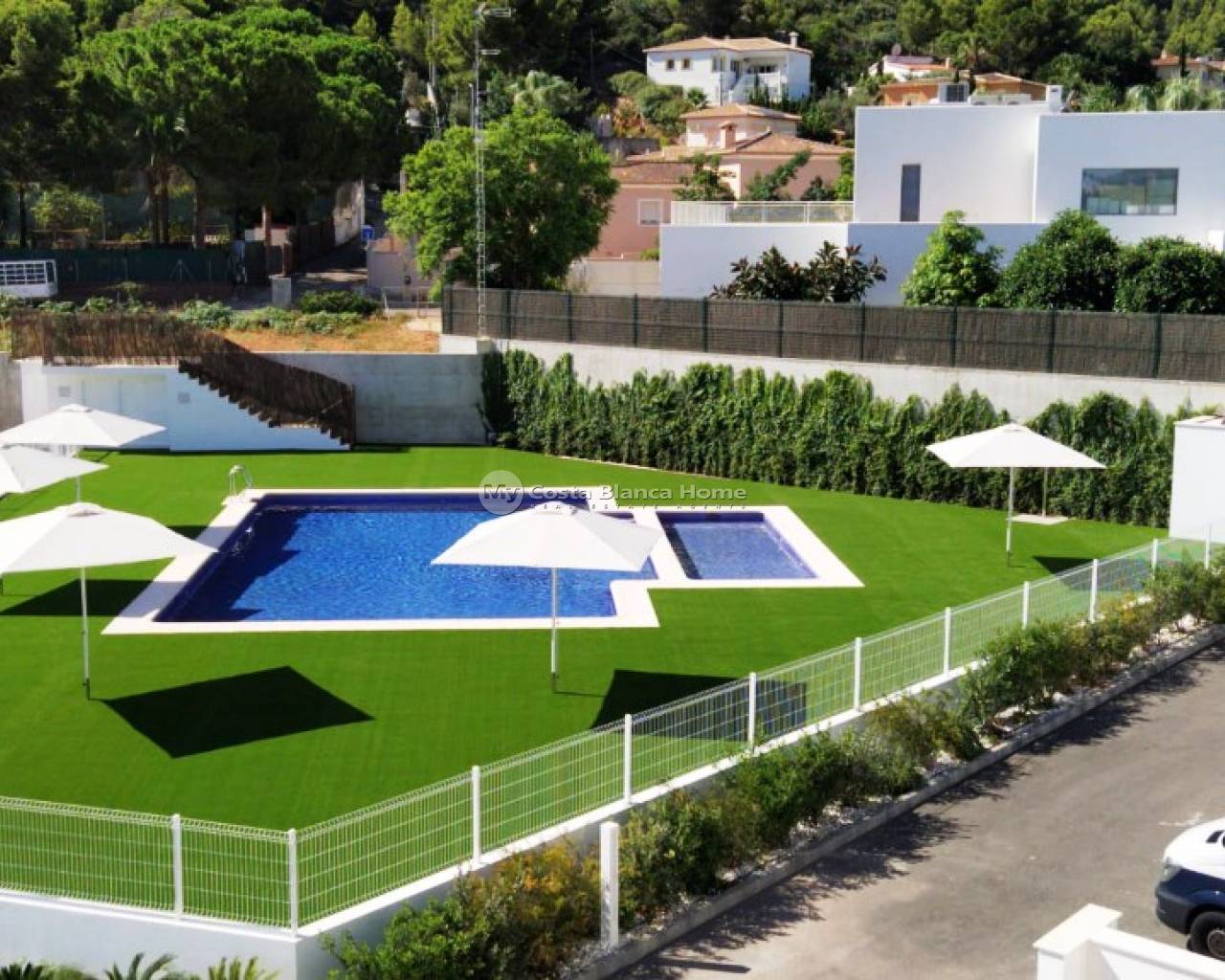 LAST HOMES AVAILABLE!Discover this stunning newly built modern home, designed to offer maximum comfort and quality of life! Located in a quiet residential area, this house with 3 bedrooms and 3 bathrooms is perfect for those seeking comfort, style, and functionality.Distributed over 3 floors, this property features a spacious solarium with views of the magnificent Montgó, where you can enjoy unique outdoor moments. On the ground floor, you are greeted by a spacious living-dining room with direct access to the garden and terrace, perfect for family gatherings or socializing with friends. The open-plan kitchen blends seamlessly with the living area, creating a bright and welcoming space.On the upper floor, you'll find a master bedroom with a walk-in closet and a private bathroom, plus another bedroom with a terrace. The bathrooms are stylish and contemporary, and built-in wardrobes offer plenty of storage space. Additionally, the property includes 2 parking spaces and expansive common areas with a children's playground and a communal pool.The location is ideal, as it's close to the town center and all essential services such as supermarkets, restaurants, and of course, the beach. You can also explore the beautiful surroundings, with hiking and nature in Montgó and enjoy the beautiful beaches of Denia.This home is a unique opportunity for those seeking a modern, comfortable, and well-located property. Don't miss this chance.Contact us today for more information or to schedule your visit!