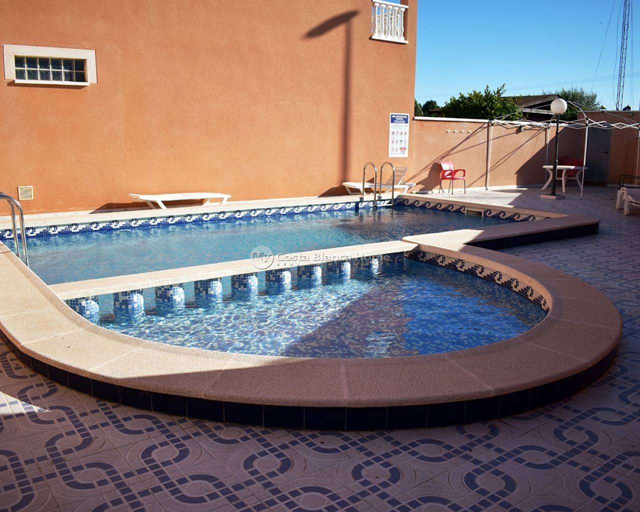 Semi-detached bungalow on the greenway overlooking the Pink Lagoon in Torrevieja. East-west facing. Located in a residential area consisting of 10 villas.