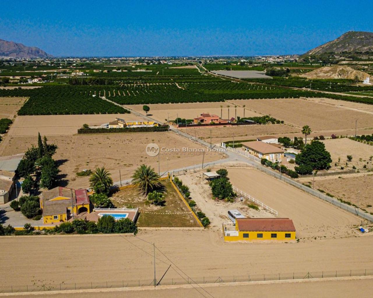 Detached house with a pool on a plot of approximately 8,000 m2, with horse stables, all very beautiful and well-maintained, in a privileged area of Orihuela's orchards, with garden areas and a fence around the entire plot.