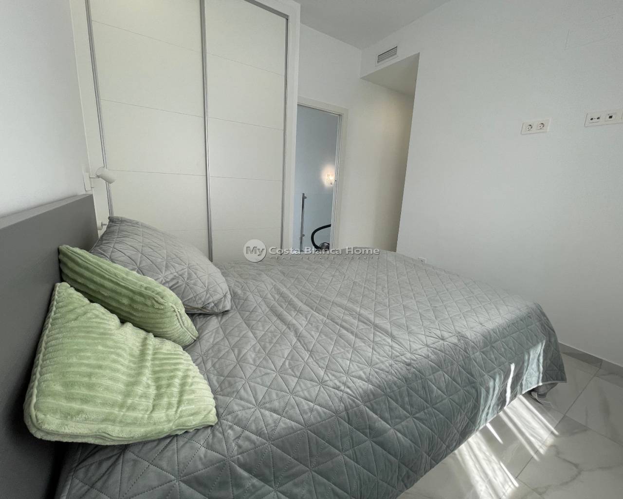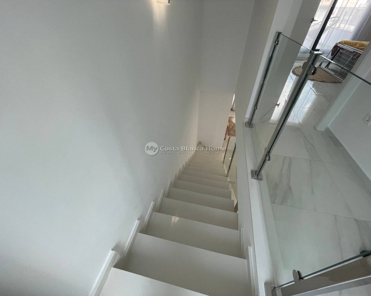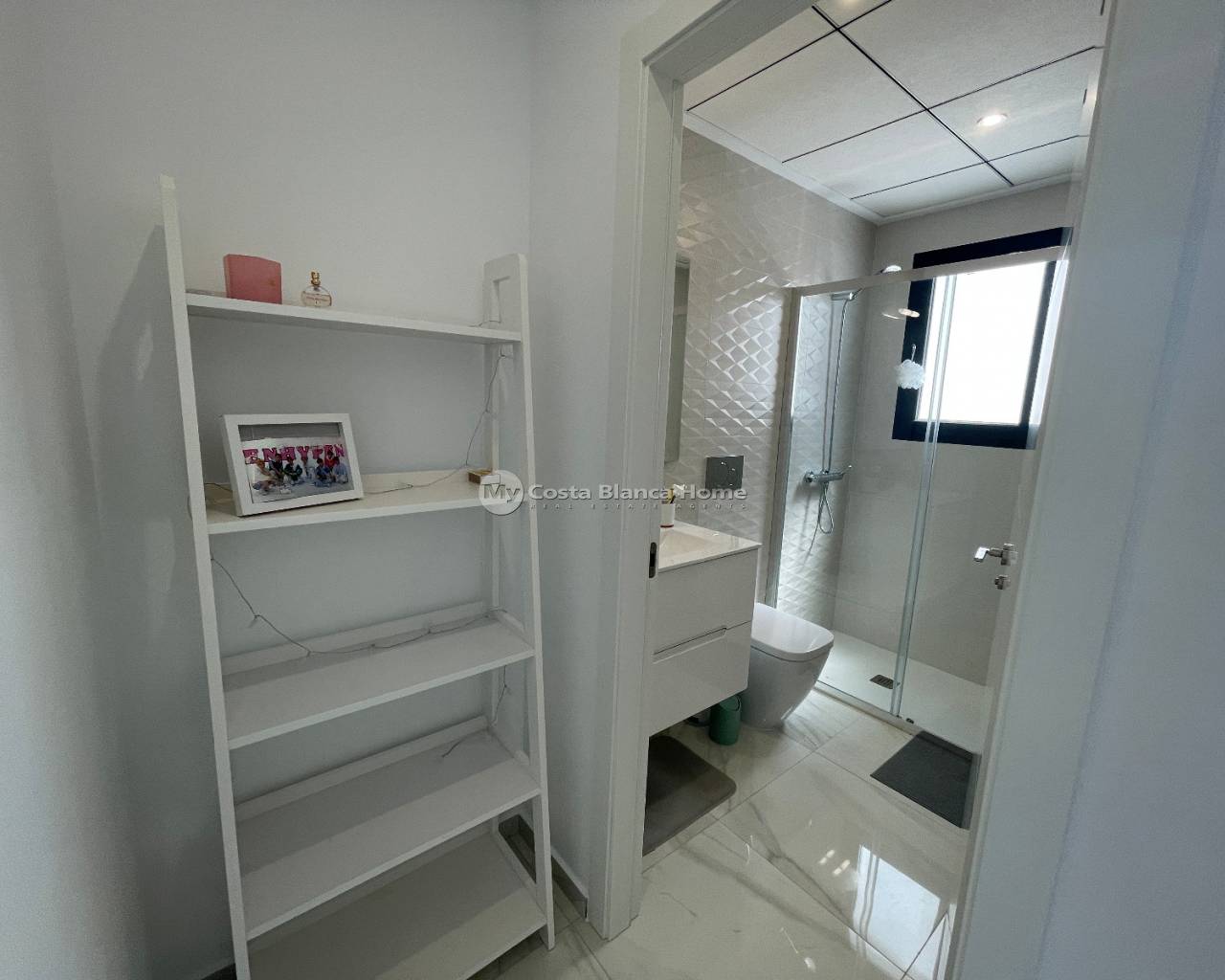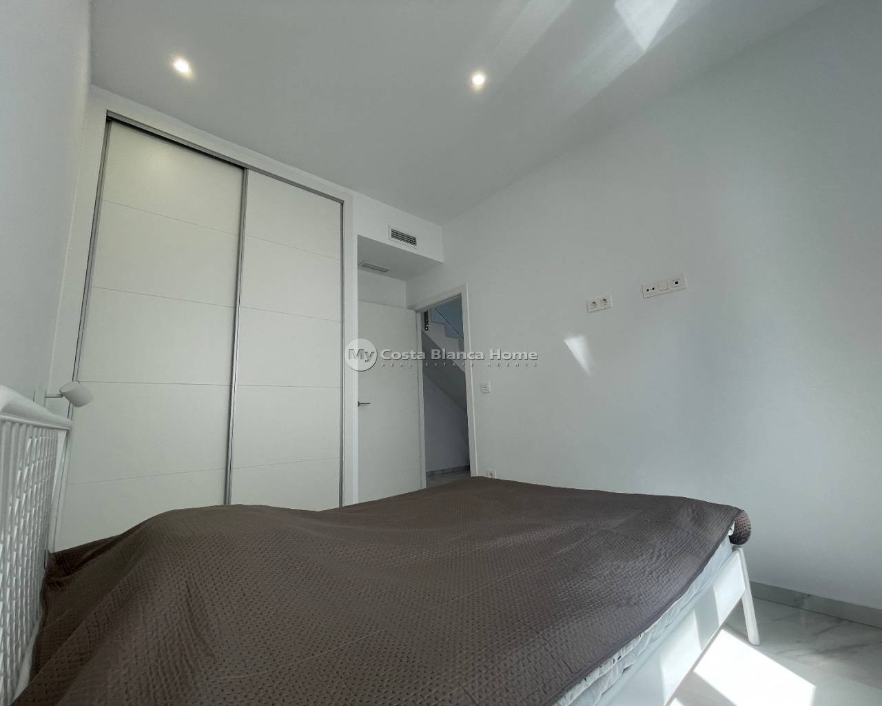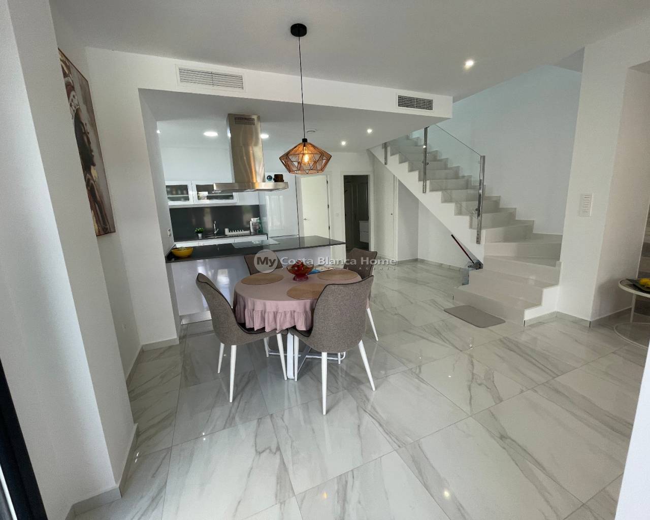 This stunning villa is in perfect condition and offers a contemporary design that prioritizes comfort and style. The open-concept living and dining area, along with a modern kitchen, creates a welcoming space that's ideal for both everyday living and entertaining guests.On the ground floor, you'll find a spacious bedroom with built-in wardrobes, accompanied by a full bathroom for added convenience. Upstairs, a charming landing leads out to a small terrace, an ideal spot to enjoy your morning coffee or relax in peace.The second bedroom is generously sized and comes with its own elegant en-suite bathroom. At the end of the hallway, the master bedroom provides a luxurious retreat, complete with an en-suite bathroom and direct access to a private terrace. This sun-filled space is perfect for unwinding and soaking up the beautiful Mediterranean climate.The villa is equipped with air conditioning and is move-in ready, ensuring you can enjoy comfort and quality from day one.Nestled in the heart of the Costa Blanca, Benijófar is a charming and well-connected town in the province of Alicante. With its laid-back Mediterranean atmosphere, Benijófar strikes the perfect balance between traditional Spanish character and modern amenities. Just a short drive from the stunning beaches of Guardamar and Torrevieja, and with all essential services—such as supermarkets, restaurants, cafés, and pharmacies—within walking distance, it's an ideal destination for both year-round living and holiday getaways.