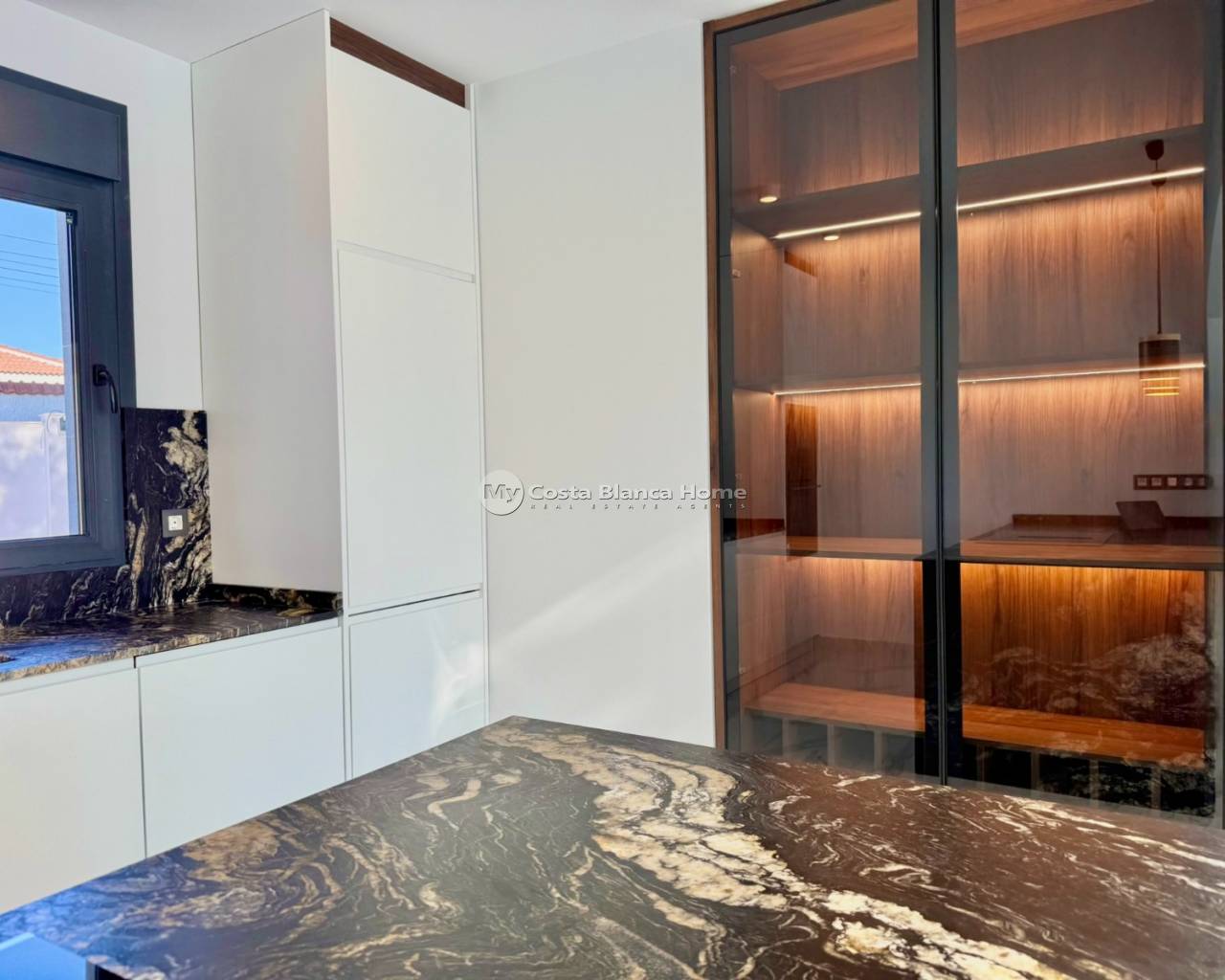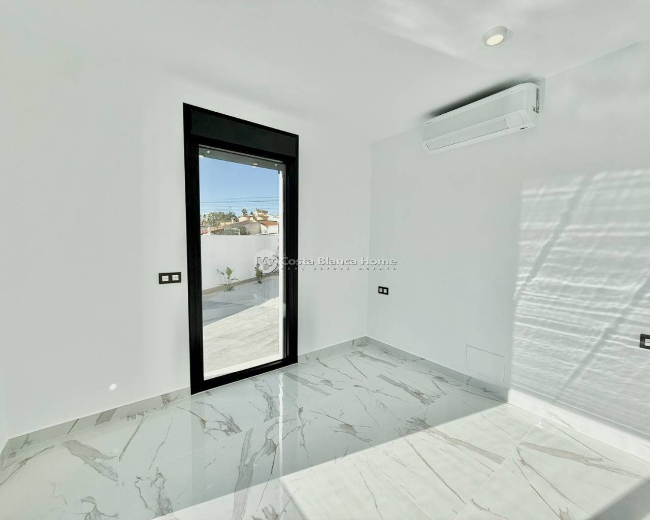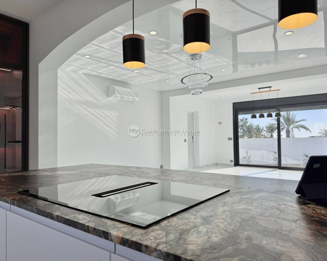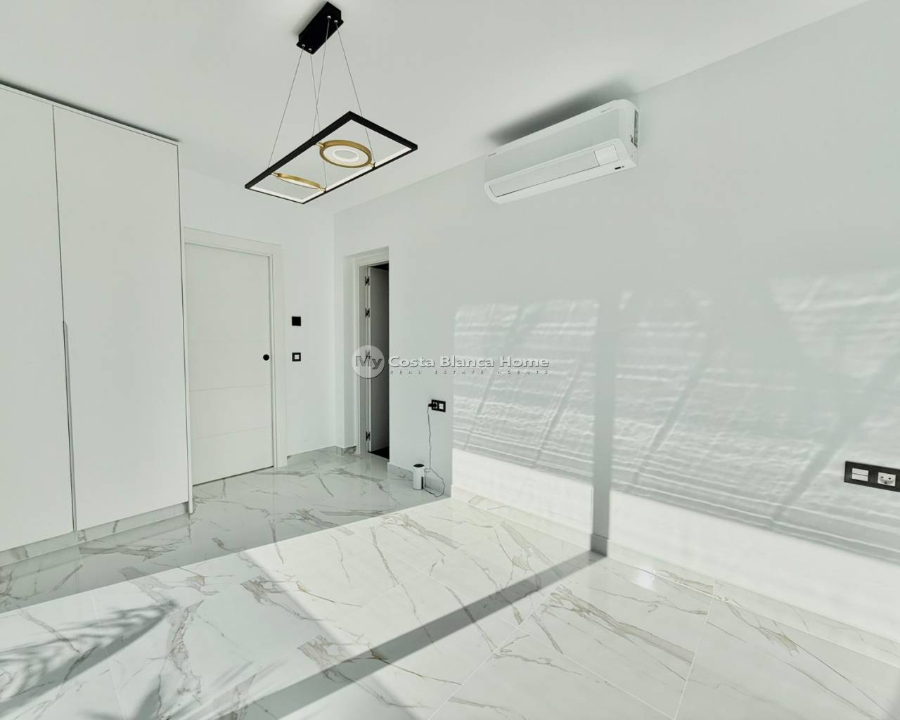 Positioned on one of Ciudad Quesada’s most desirable streets and occupying a privileged corner plot, this fully refurbished detached villa offers a refined blend of Mediterranean charm and sleek contemporary living. Just a short walk from the bustling town centre, the home provides a rare combination of privacy, space and high-end comfort in a sought-after coastal setting. Interior Features Designed with an emphasis on elegance, functionality and modern living, the interior stands out for its quality and attention to detail: 4-5 generous bedrooms, each featuring bespoke fitted wardrobes and high-spec finishes. 4 bathrooms, including three en suite, styled with premium materials and a modern, minimalist aesthetic. A spacious open-plan living and dining area, seamlessly connected to a luxury kitchen equipped with the latest BOSCH appliances. Individually controlled air-conditioning zones, all manageable from a mobile app for effortless climate control. Underfloor heating throughout, ensuring year-round comfort. Integrated smart-home system with electric blinds and intelligent lighting for a streamlined, modern lifestyle. Designer fixtures, carpentry and tiling, creating a cohesive and elegant interior atmosphere. Outdoor Living The exterior of the property is designed to make the most of the Costa Blanca’s exceptional climate: A spectacular 5×10 m private swimming pool with built-in jacuzzi, ideal for relaxing, entertaining or enjoying warm summer days. Low-maintenance Mediterranean garden with ample space for outdoor dining, lounging and social gatherings. A large rooftop solarium, offering open views and a serene setting for sunbathing or hosting guests. Separate, fully equipped laundry room with washer, dryer and storage. Additional Highlights Fully renovated using first-class materials and craftsmanship. Bright, harmonious interior layout with abundant natural light. Prime Location Located just minutes from all amenities—including restaurants, supermarkets and leisure facilities—this villa strikes the perfect balance between convenience and tranquillity. It offers the ideal base for those seeking a sophisticated Mediterranean lifestyle in one of Ciudad Quesada’s most prestigious areas.