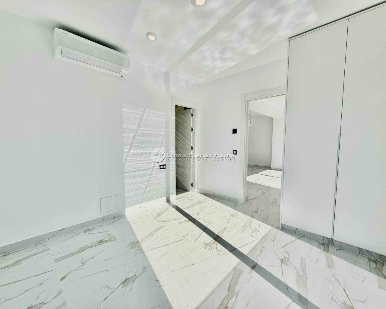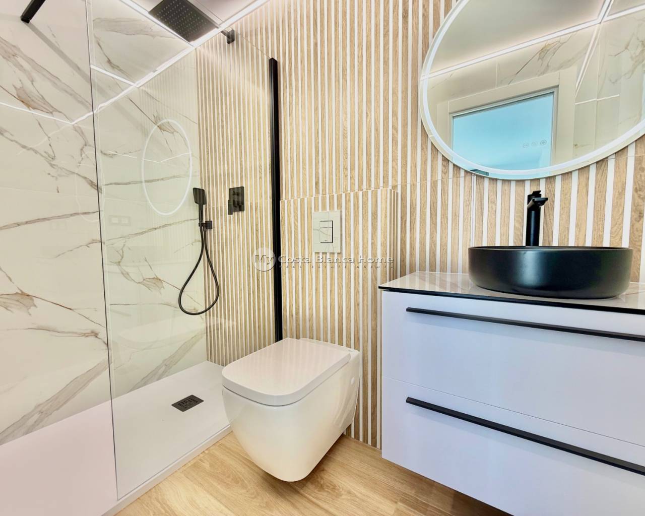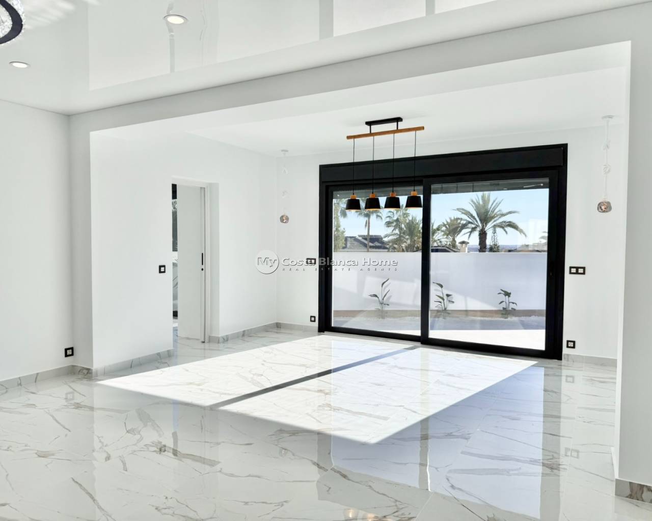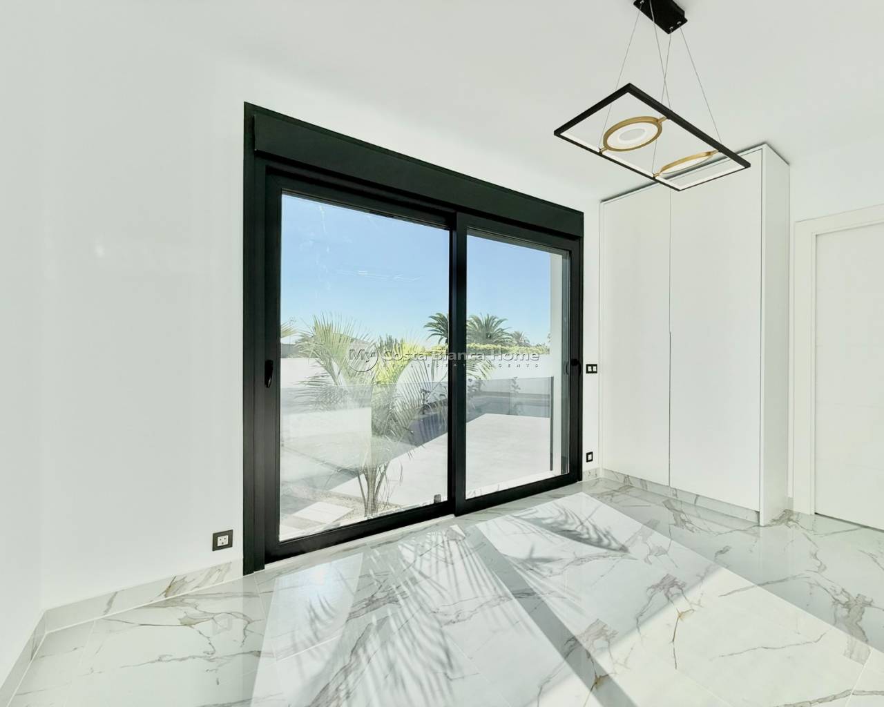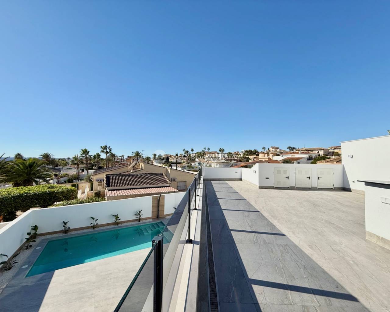 Positioned on one of Ciudad Quesada’s most desirable streets and occupying a privileged corner plot, this fully refurbished detached villa offers a refined blend of Mediterranean charm and sleek contemporary living. Just a short walk from the bustling town centre, the home provides a rare combination of privacy, space and high-end comfort in a sought-after coastal setting. Interior Features Designed with an emphasis on elegance, functionality and modern living, the interior stands out for its quality and attention to detail: 4-5 generous bedrooms, each featuring bespoke fitted wardrobes and high-spec finishes. 4 bathrooms, including three en suite, styled with premium materials and a modern, minimalist aesthetic. A spacious open-plan living and dining area, seamlessly connected to a luxury kitchen equipped with the latest BOSCH appliances. Individually controlled air-conditioning zones, all manageable from a mobile app for effortless climate control. Underfloor heating throughout, ensuring year-round comfort. Integrated smart-home system with electric blinds and intelligent lighting for a streamlined, modern lifestyle. Designer fixtures, carpentry and tiling, creating a cohesive and elegant interior atmosphere. Outdoor Living The exterior of the property is designed to make the most of the Costa Blanca’s exceptional climate: A spectacular 5×10 m private swimming pool with built-in jacuzzi, ideal for relaxing, entertaining or enjoying warm summer days. Low-maintenance Mediterranean garden with ample space for outdoor dining, lounging and social gatherings. A large rooftop solarium, offering open views and a serene setting for sunbathing or hosting guests. Separate, fully equipped laundry room with washer, dryer and storage. Additional Highlights Fully renovated using first-class materials and craftsmanship. Bright, harmonious interior layout with abundant natural light. Prime Location Located just minutes from all amenities—including restaurants, supermarkets and leisure facilities—this villa strikes the perfect balance between convenience and tranquillity. It offers the ideal base for those seeking a sophisticated Mediterranean lifestyle in one of Ciudad Quesada’s most prestigious areas.