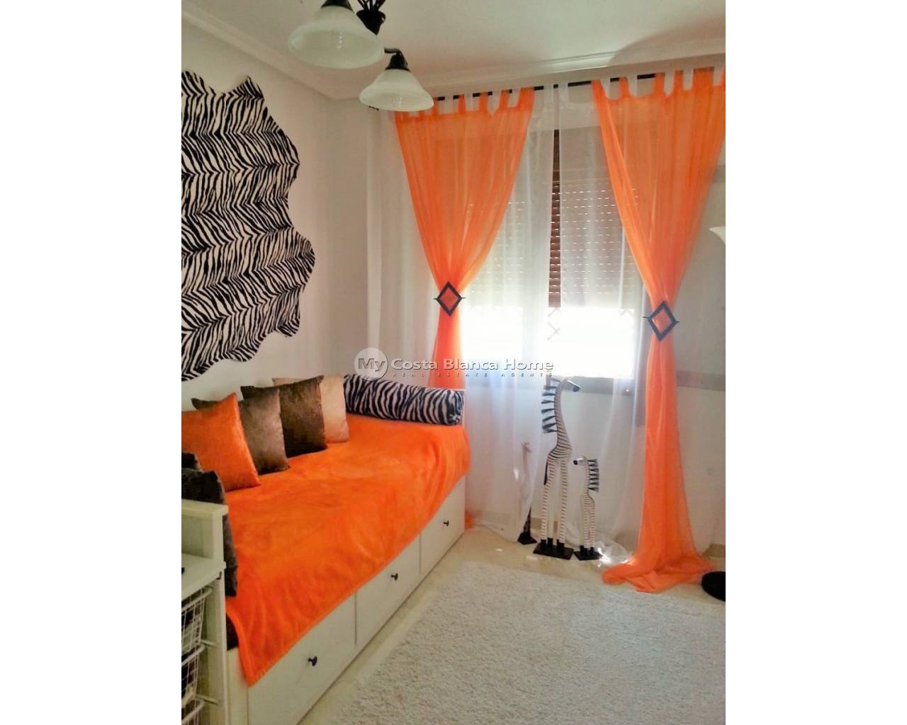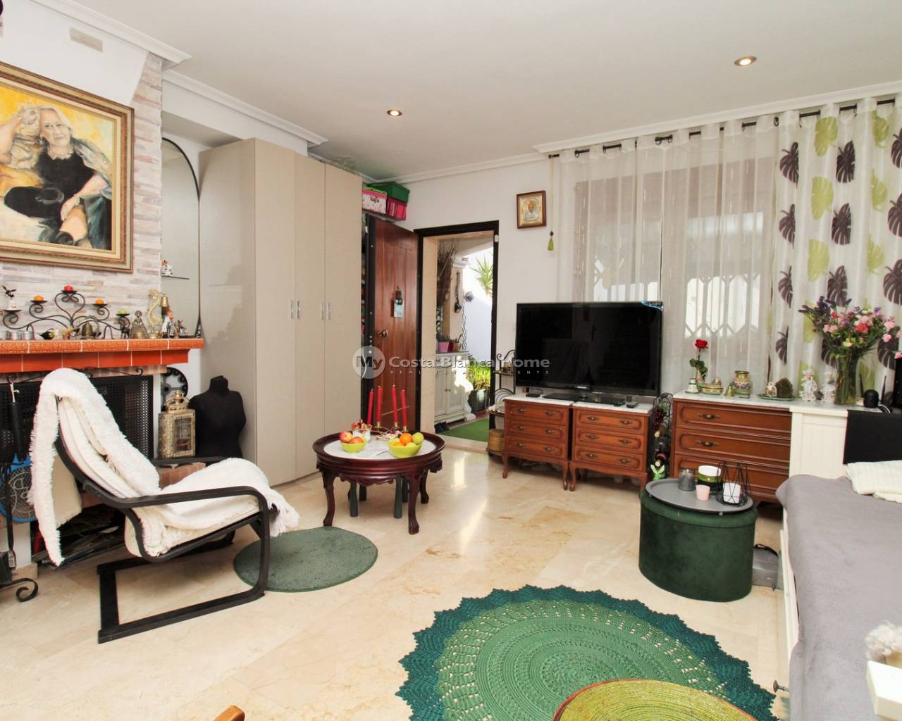 This well-presented Sofía-style townhouse is located in the sought-after R9, Pau 8 area of Villamartin, within a secure gated community and just 10 minutes’ walk from Villamartin Plaza and Villamartin Golf Course. The ground floor features a front tiled terrace, ideal for outdoor seating, leading into a bright lounge–dining area with internal staircase. To the rear is a fitted kitchen with access to a private patio, along with a guest WC on this level. Upstairs, there are two double bedrooms, both with fitted wardrobes, and a family bathroom. The main bedroom benefits from a private balcony, providing additional outdoor space. An internal staircase leads to a private roof solarium, offering ample space for sunbathing or relaxing. The property forms part of a well-maintained gated community with a communal swimming pool and communal parking. The entire community is scheduled to be repainted during Q2 of 2026, further enhancing its overall appearance and long-term appeal. The townhouse is sold part furnished, including white goods, and is ideally positioned close to shops, bars, restaurants, golf, and public transport, with the beaches of Orihuela Costa and Zenia Boulevard just a short drive away. An excellent option for a holiday home, permanent residence, or low-maintenance property in a prime Villamartin location.