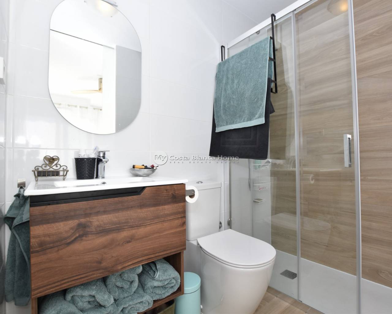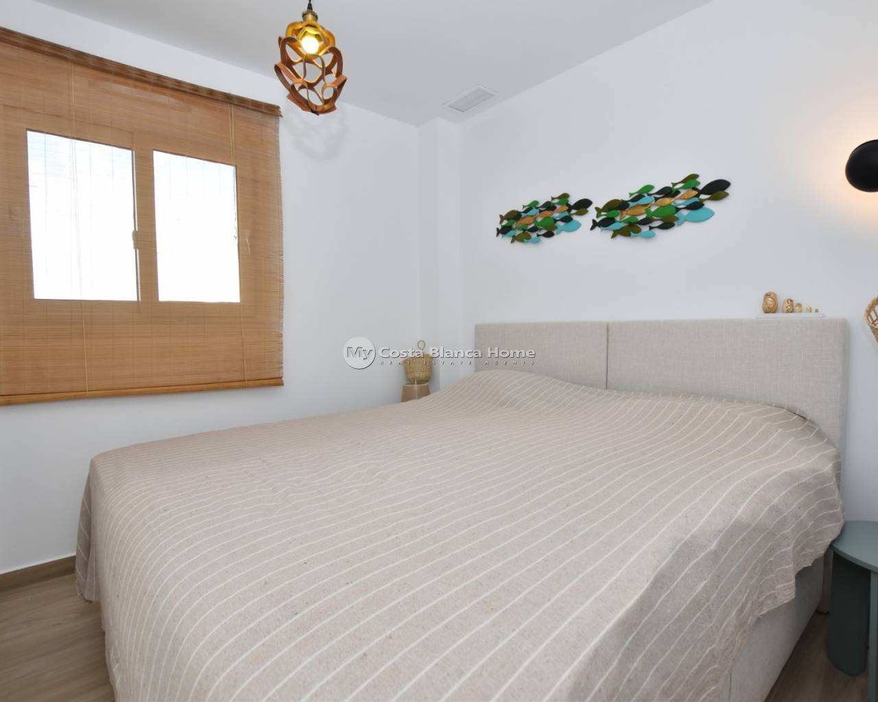 This beautiful top-floor apartment in the Capri VIII community at Vistabella Golf was completed in April 2025 and is almost brand new. It features 2 bedrooms, 2 bathrooms, a bright open-plan living room with kitchen, a terrace and a spacious private rooftop solarium — perfect for relaxing and enjoying the weather. The community offers a swimming pool, mini-golf, petanque, garden areas and parking. The property includes air conditioning and good finishes. Vistabella Golf has an 18-hole course, academy, practice areas, restaurant and clubhouse. Guardamar and Torrevieja beaches are around 20–25 minutes away, and Alicante Airport about 45 minutes.