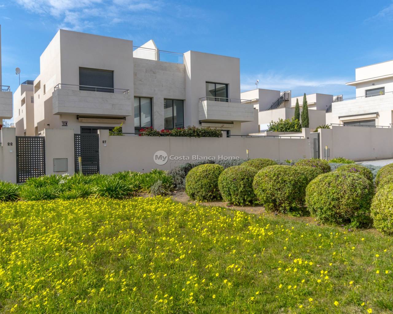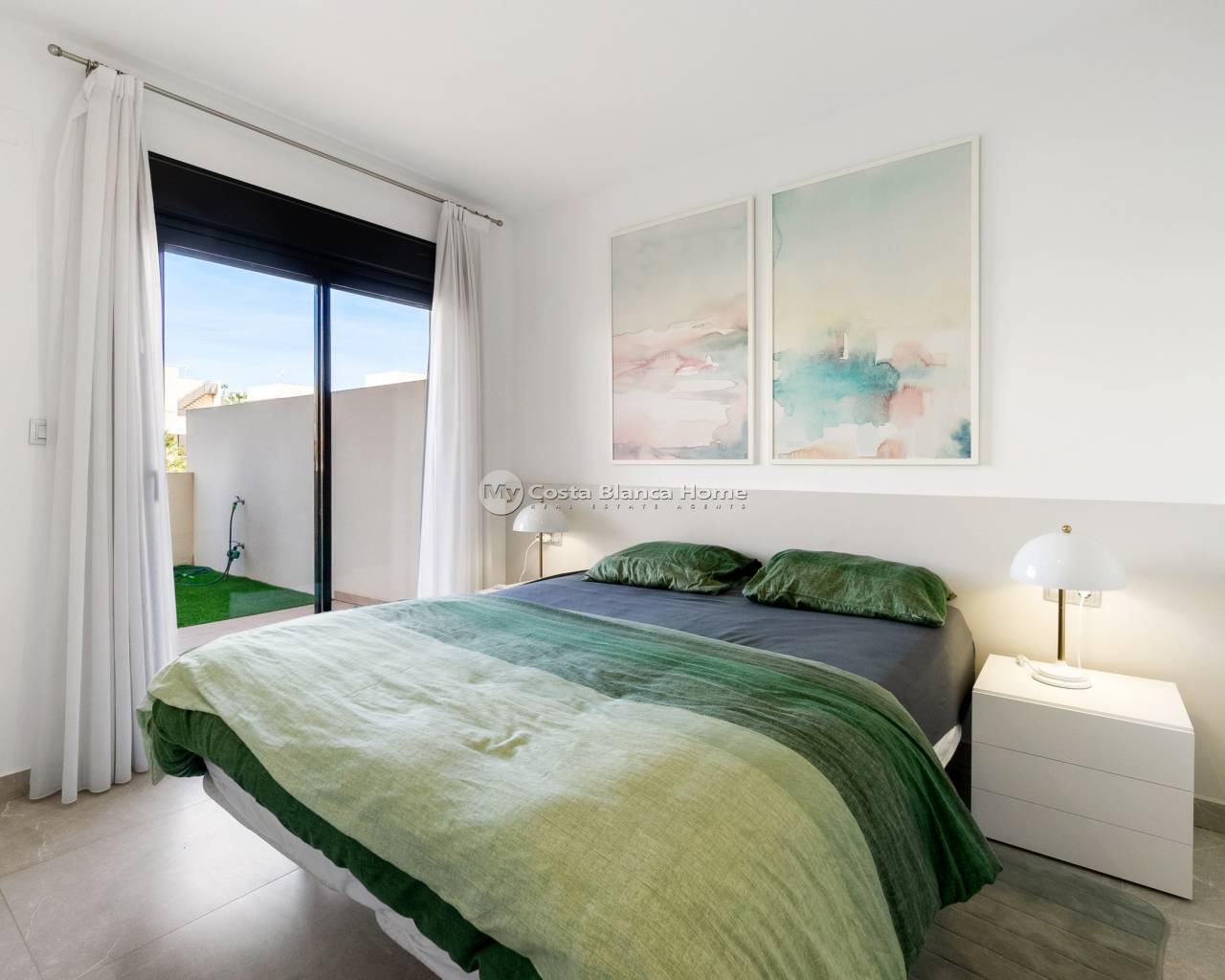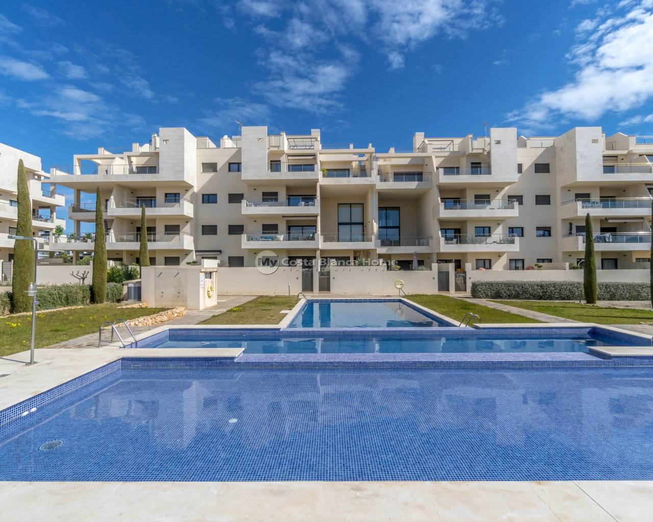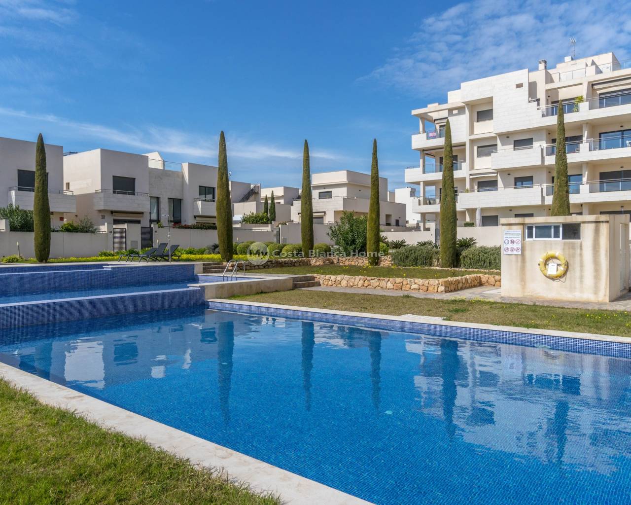Modern apartment in Jardines de Montesolana, Orihuela Costa. This partment distributed in two bedrooms and two bathrooms. It has a spacious living-dining room with open plan kitchen and direct access to the large garden of 43 m2 with views to the communal areas of the residential with south orientation. It is located in the Jardines de Montesolana development which has a communal swimming pool and garden areas. This residential is close to La Zenia Boulevard shopping centre (Orihuela Costa). La Zenia is close to Cabo Roig, Campoamor and Playa Flamenca. It is a growing area, close to all amenities and the famous La Zenia Boulevard shopping centre. Only a few minutes from the N-332 and the Mediterranean motorway AP-7 towards Alicante and Cartagena. There are also around the golf courses of Villamartin, Las Ramblas, Campoamor and Las Colinas.