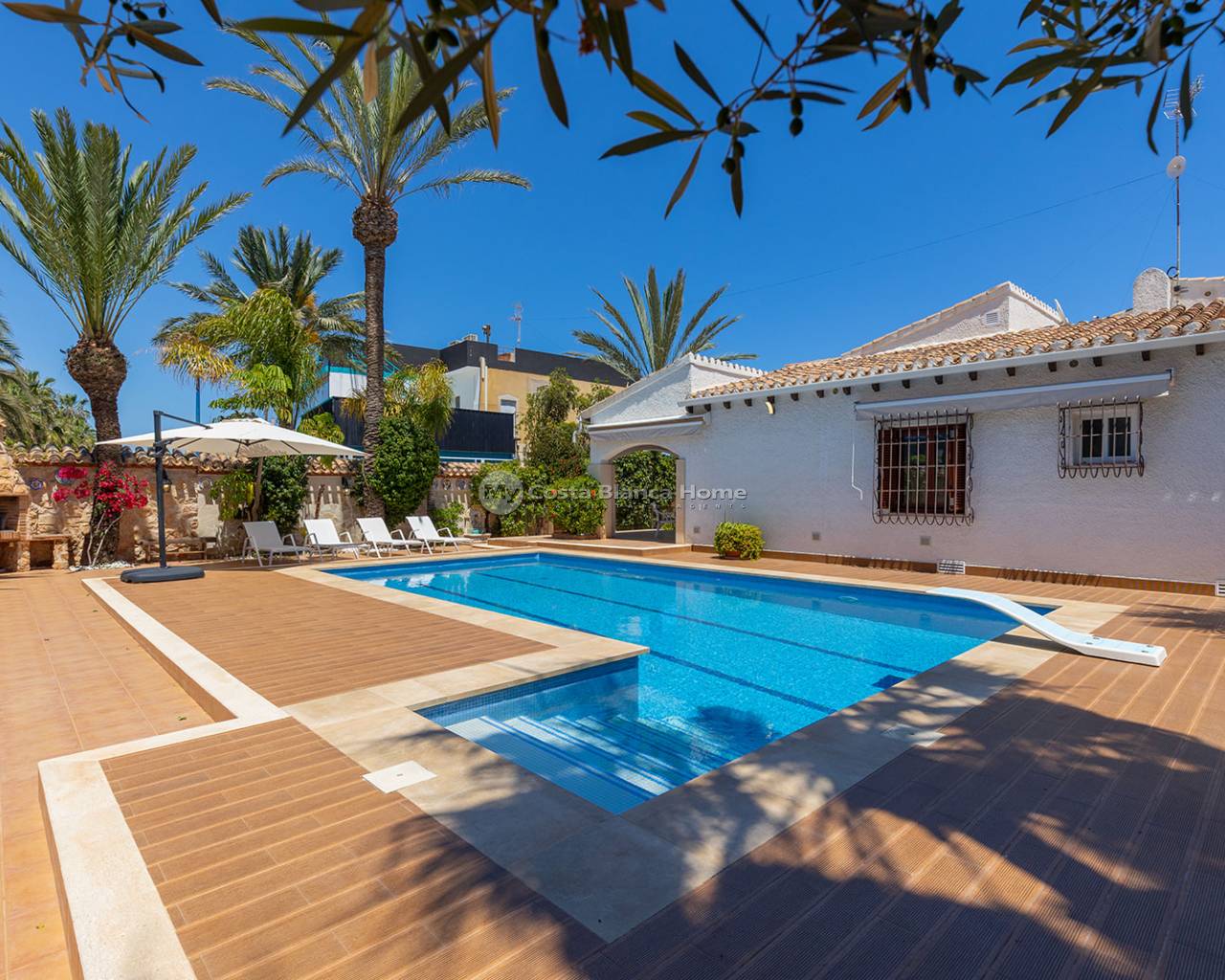 We present this charming villa located in one of the most privileged areas of the Costa Blanca: Punta Prima, just a few steps from the sea. The property has a built area of 168 m², set on a spacious 540 m² plot, offering privacy, comfort, and ample outdoor space to enjoy. The villa features 4 spacious bedrooms, 2 full bathrooms, a bright living-dining room with direct access to the exterior, and a modern fully equipped open-plan kitchen. Outside, the property boasts a private pool, barbecue area, sunny terraces, and a Mediterranean garden – ideal for enjoying the climate all year round. Punta Prima is a well-established coastal area, known for its direct access to the sea, fine sandy beaches, natural coves, and peaceful environment. All essential services are nearby: restaurants, supermarkets, pharmacies, shopping centres such as La Zenia Boulevard, and excellent road connections. Just 10 minutes by car from the centre of Torrevieja, and surrounded by golf courses, sports facilities, and green areas.