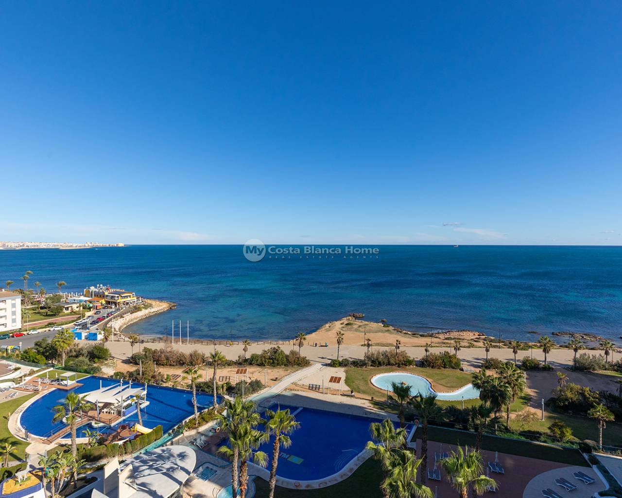 We present this stunning luxury penthouse located in the exclusive Sea Senses residential complex, one of the most sought-after developments in Punta Prima. With an unbeatable southeast orientation and panoramic views of the Mediterranean, this property offers a privileged seaside lifestyle. The property features 2 bedrooms and 2 bathrooms, designed in a modern and functional layout to ensure maximum comfort. From the bright living room, you access a charming 12 m² terrace, perfect for enjoying the sunrise and the sea breeze. The highlight of this penthouse is its spectacular private 83 m² solarium, equipped with a jacuzzi and relaxation areas—an authentic private oasis with endless sea views, ideal for enjoying the Mediterranean climate all year round. The property includes an underground parking space and a storage room, adding convenience and extra storage capacity. Sea Senses is one of the most prestigious residential complexes on the Costa Blanca South, offering top-class communal areas with infinity pools facing the sea, a gym, spa, jacuzzis, sports courts, and landscaped spaces. A setting designed to provide privacy, luxury, and well-being. Located in the renowned area of Punta Prima, this penthouse is just a few steps from the beach and surrounded by year-round services: supermarkets, restaurants, cafés, public transport, and leisure areas. It is also close to shopping centres such as Zenia Boulevard, prestigious golf courses, and main connections to Torrevieja and Orihuela Costa. A truly unique home, where exclusivity, comfort, and sea views come together to offer an unparalleled living experience.