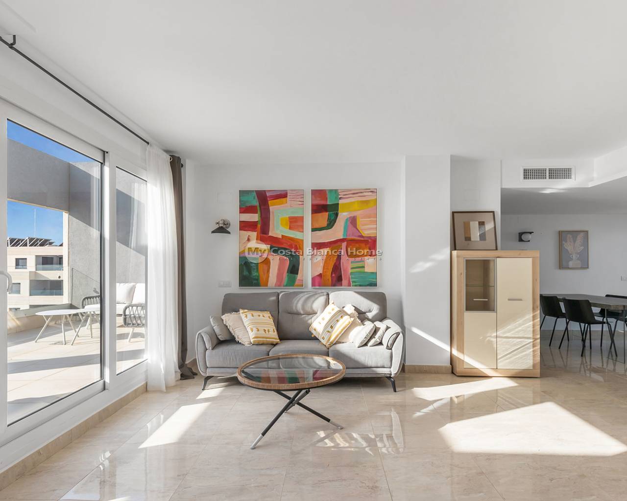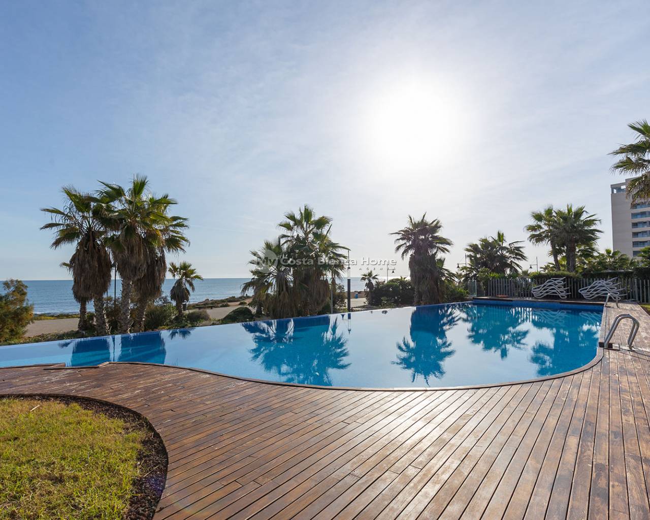 We present this magnificent 3-bedroom, 2-bathroom penthouse with 139 m², located in the prestigious Panorama Mar residential complex, one of the most modern and highly regarded developments in Punta Prima. Situated frontline, it offers stunning open views of the Mediterranean and a privileged setting for those seeking quality, comfort, and exclusivity by the sea. The property features a spacious and bright 28 m² south-facing terrace, perfect for enjoying the sun all day, the sea breeze, and unbeatable panoramic views. The interior layout is modern and functional, with generous rooms filled with natural light, designed to maximize comfort. The penthouse includes an underground parking space and a storage room, providing additional convenience and extra storage. Panorama Mar is a modern frontline complex that stands out for its large swimming pools, including a heated pool, landscaped areas, and relaxation zones with sea views. It offers an exclusive, secure, and well-maintained environment, ideal for enjoying the Mediterranean lifestyle all year round. Located in one of the most privileged areas of the Costa Blanca, Punta Prima combines tranquility and convenience. The property is just a few steps from the beach and surrounded by restaurants, supermarkets, and leisure options, while being very close to Zenia Boulevard and several prestigious golf courses.