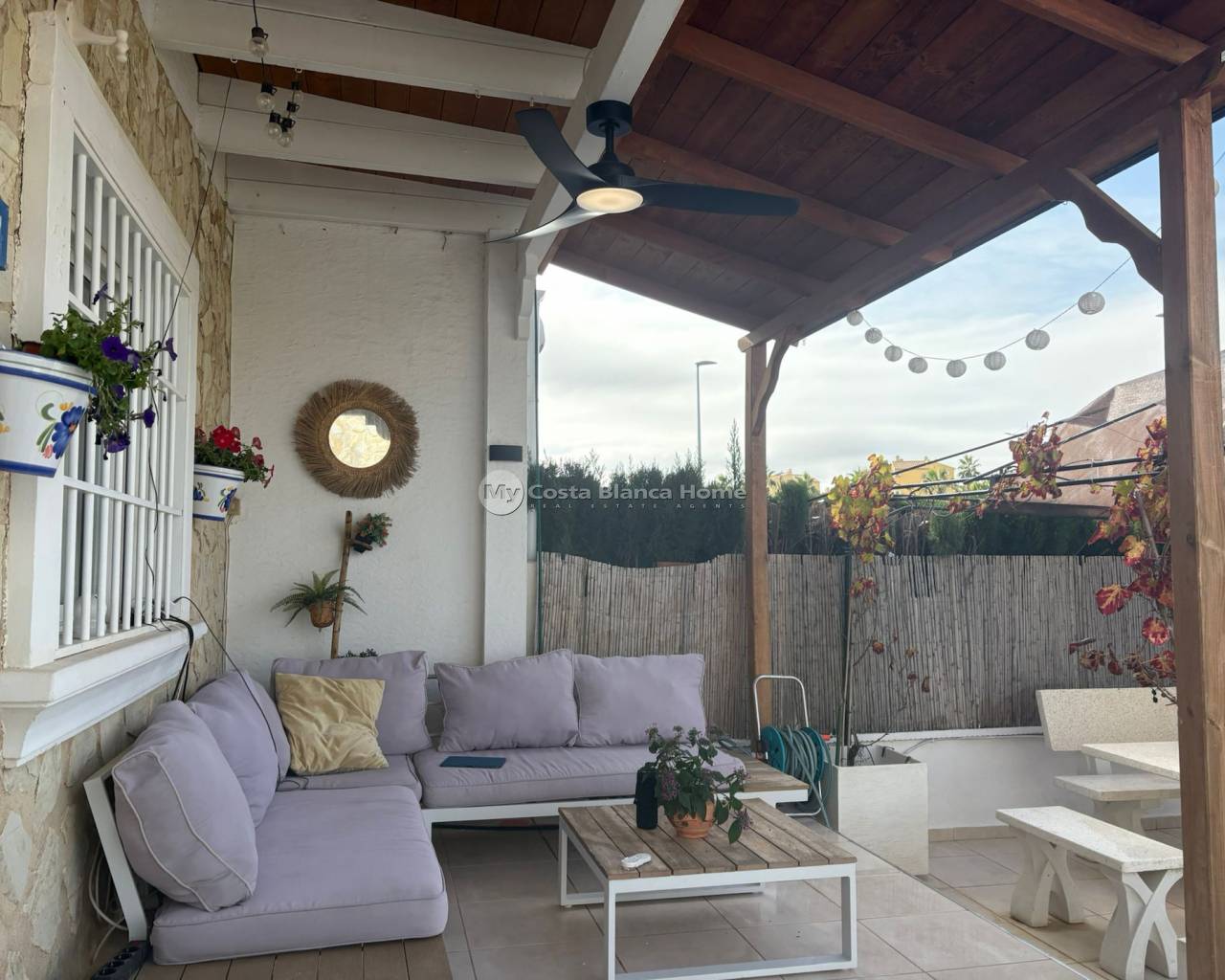 For sale is a charming townhouse in the sought-after area of Montemar, Algorfa, offering a comfortable internal space of 90 m2. This well-maintained resale property features three spacious bedrooms and two bathrooms, perfect for families or those wanting extra space for guests or a home office. One of the bedrooms and bathrooms are on the ground floor. The different outside spaces are perfect for relaxing or entertaining, offering sun or shade throught the day. The surroundings are known for a relaxed lifestyle, scenic walking paths, and access to beautiful landscapes, making it an ideal choice for anyone seeking both nature and convenience. The townhouse is west facing, allowing for plenty of afternoon sunlight to filter into your living spaces. It is offered unfurnished, giving you the freedom to design and decorate according to your own taste. Residents have access to a lovely communal swimming pool, perfect for relaxing or socialising with friends and neighbours. Amenities such as shops, cafes, and services are just a short stroll away, making daily living convenient and enjoyable. If you are looking for a quality home in a welcoming area, this property is the perfect choice. EXTRAS INCLUDE Air conditioning units x 2 Sun awnings Wood burner in lounge New Kitchen Contact us today to arrange a viewing and make this townhouse your new home.
