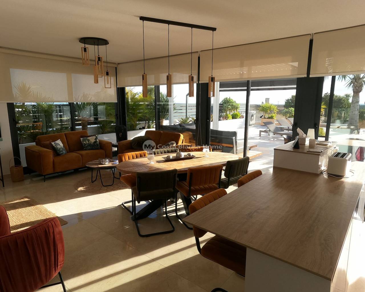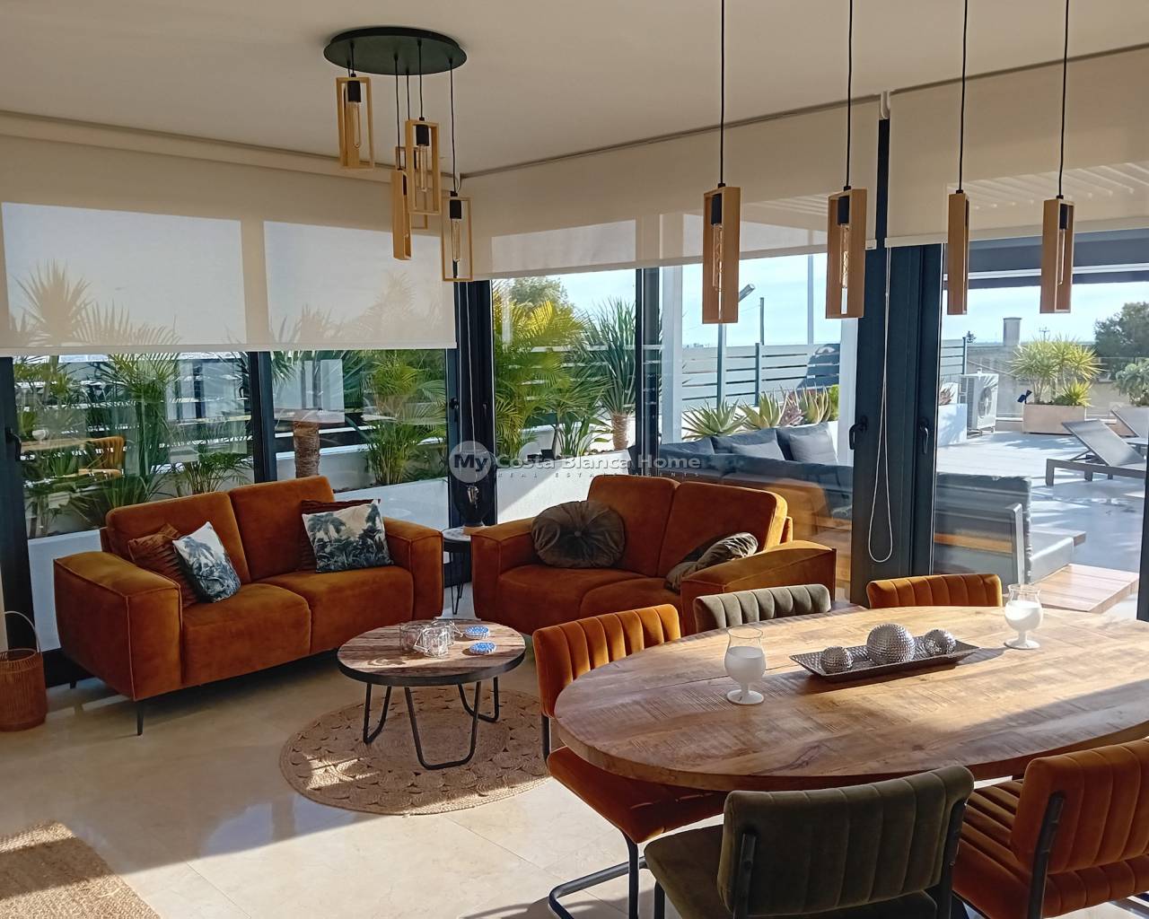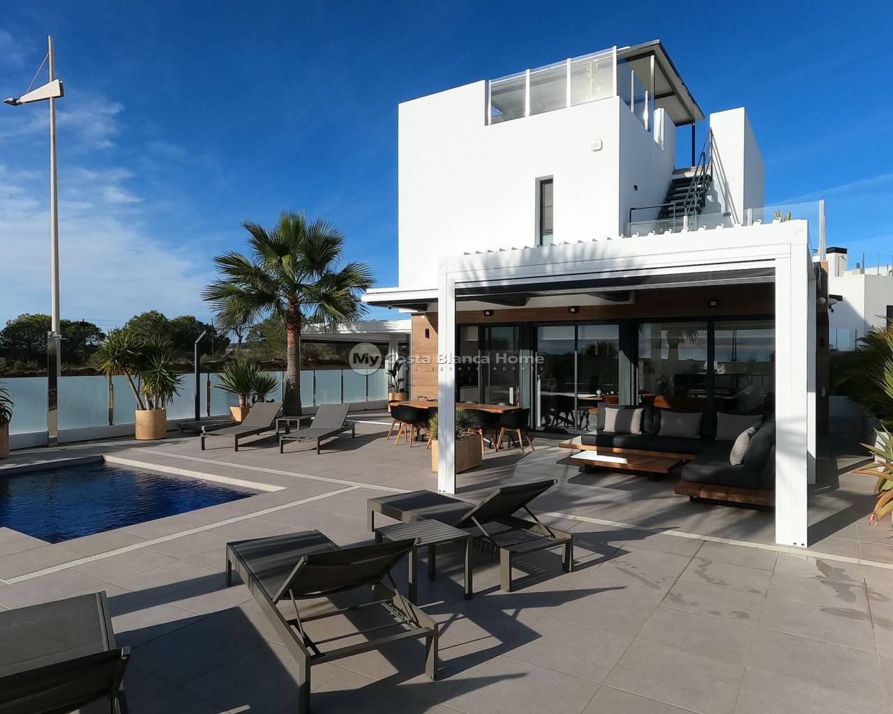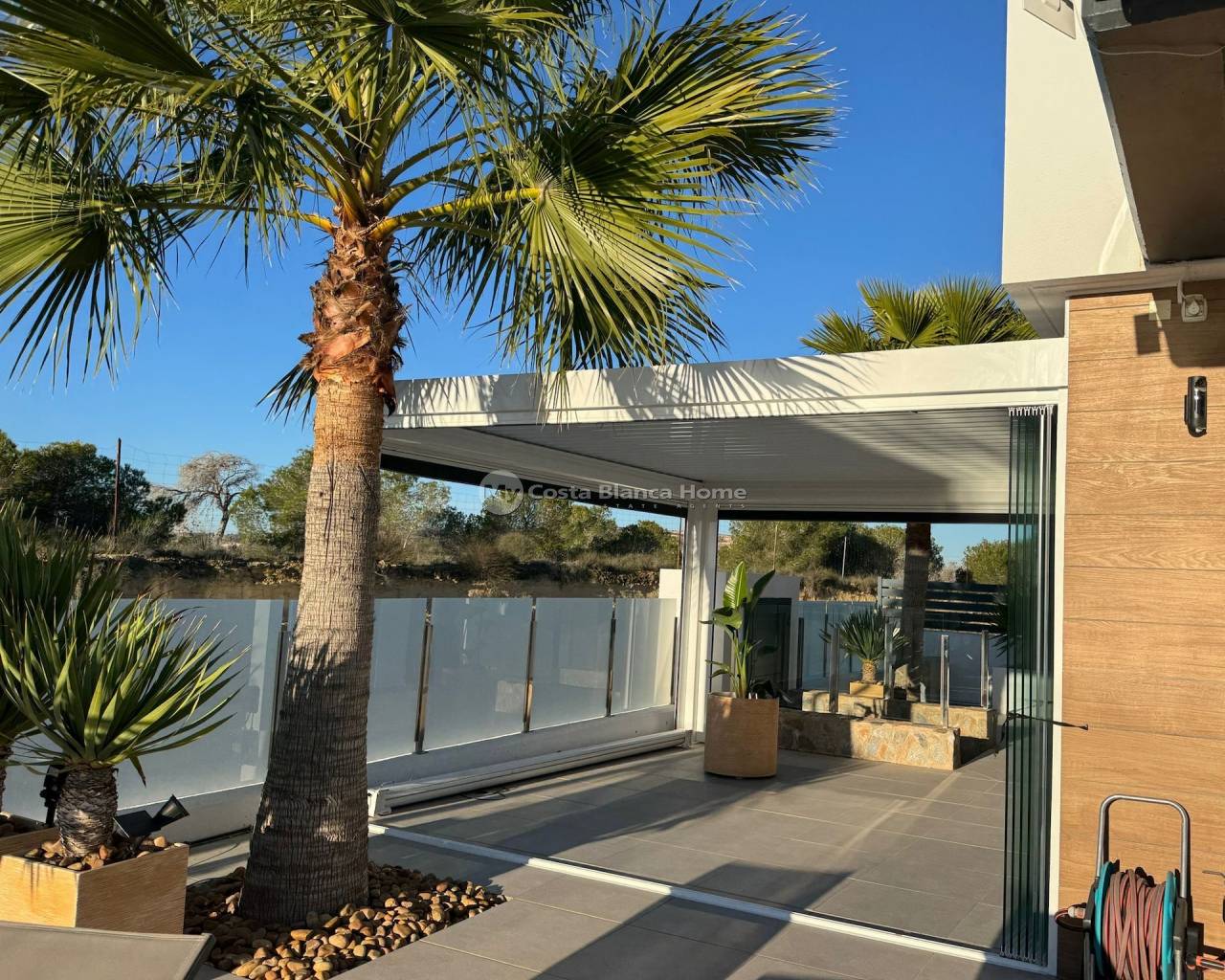 For sale: This stunning detached villa offers comfortable living in the sought-after area of Algorfa, within the prestigious La Finca Golf resort. The villa is a resale property and provides a generous internal space of 253.5 m². Inside, you will find three spacious bedrooms and three modern bathrooms, making it ideal for families or those who enjoy having guests. The villa features a bright and airy open-plan living area with large windows that overlook the pool. There is a central air conditioning system for year-round comfort. The basement offers flexible space, currently used a recreational room with a home cinema, a pool table, and a bar. This is the perfect entertaining zone. A door gives access to the double garage, and there is also a large utility room. Step outside to the private south-facing swimming pool with low maintenance gardens. From the spacious solarium you can enjoy breathtaking panoramic views of the mountains, countryside, and even the sea. Algorfa and La Finca Golf are known for their peaceful atmosphere, well-maintained surroundings, and accessibility to all amenities, including shops, restaurants, and leisure facilities. This superb villa is close to everything you need while providing a tranquil escape. This beautiful home is proudly advertised by Orange Casas. Contact us today to arrange a viewing. KEY FEATURES Private heated pool South facing Huge underbuild entertaining zone Double garage Prestigious location Walking to amenities Solar panels Alarm system with camera system Two beautiful bioclimatic toldos