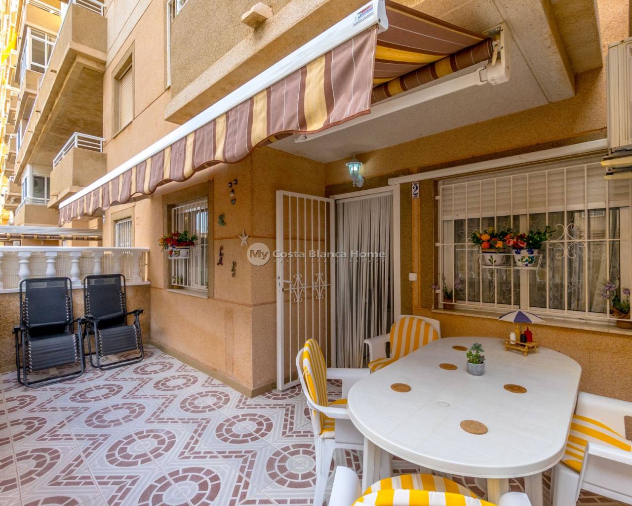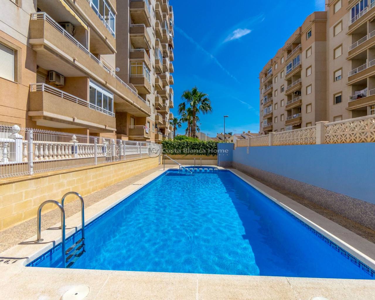 Renovated 2-Bedroom Ground Floor Apartment in Torrevieja Located in the peaceful and established area of Nueva Torrevieja, this ground floor 2-bedroom, 1-bathroom apartment is ideal for year-round living, a holiday home, or a solid rental investment. The apartment is set within a well-maintained residential complex that offers access to a communal swimming pool, and is situated on the ground floor for easy access. It features a modern bathroom with a walk-in shower, an updated kitchen, and new floor tiling, offering a clean and functional living space. One of the highlights of this property is the two private terraces — one at the front and one at the rear — allowing you to enjoy both morning and afternoon sun, relax outdoors, or use the space for extra storage or dining. The total built area is 62 m², providing a comfortable and practical layout. The apartment is well-connected by road and local transport. Supermarkets, cafés, and other essential services are just a short walk away. Property Features: 62 m² built 2 bedrooms air conditioning 1 bathroom with walk-in shower Renovated kitchen New floor tiles Ground floor – step-free access Two private terraces (front and rear) Communal swimming pool Quiet residential location in Torrevieja Easy access to shops, services, and public transport A great opportunity to own a move-in-ready property in a calm area of Torrevieja, offering both indoor comfort and outdoor space.