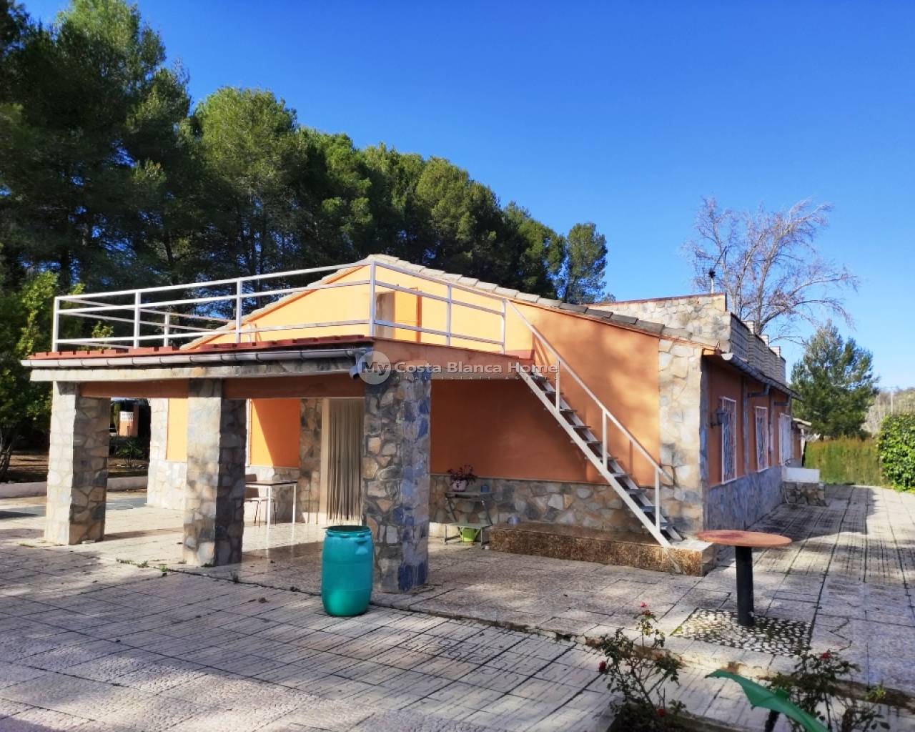 Located just 3 km from Benilloba, in a peaceful rural setting with easy access, this spacious single-storey country house offers an excellent opportunity as a permanent home or a perfect holiday retreat.The property has 138 m² built, comfortably distributed into five bedrooms, a family bathroom, guest toilet, kitchen with pantry, and a welcoming living-dining room with fireplace, ideal for year-round living. The house is accessed via a covered porch, and also features a garage, terrace, and a rooftop solarium with pleasant open views.Set on a fully fenced plot of 5,258 m², the land includes landscaped areas and olive trees, providing privacy and generous outdoor space. Additional features include a swimming pool, barbecue area, and covered parking for several vehicles.The property benefits from mains water, electricity and 380W power supply, with internet connection available. Its excellent location close to the village, combined with open views, makes it a very attractive option.Benilloba lies in the El Condado region, close to the Valle de Seta, the Sierra de Mariola Natural Park, and towns such as Cocentaina and Alcoy, well known for hiking, cycling and rural tourism. A complete country property offering space, comfort and a beautiful natural setting.