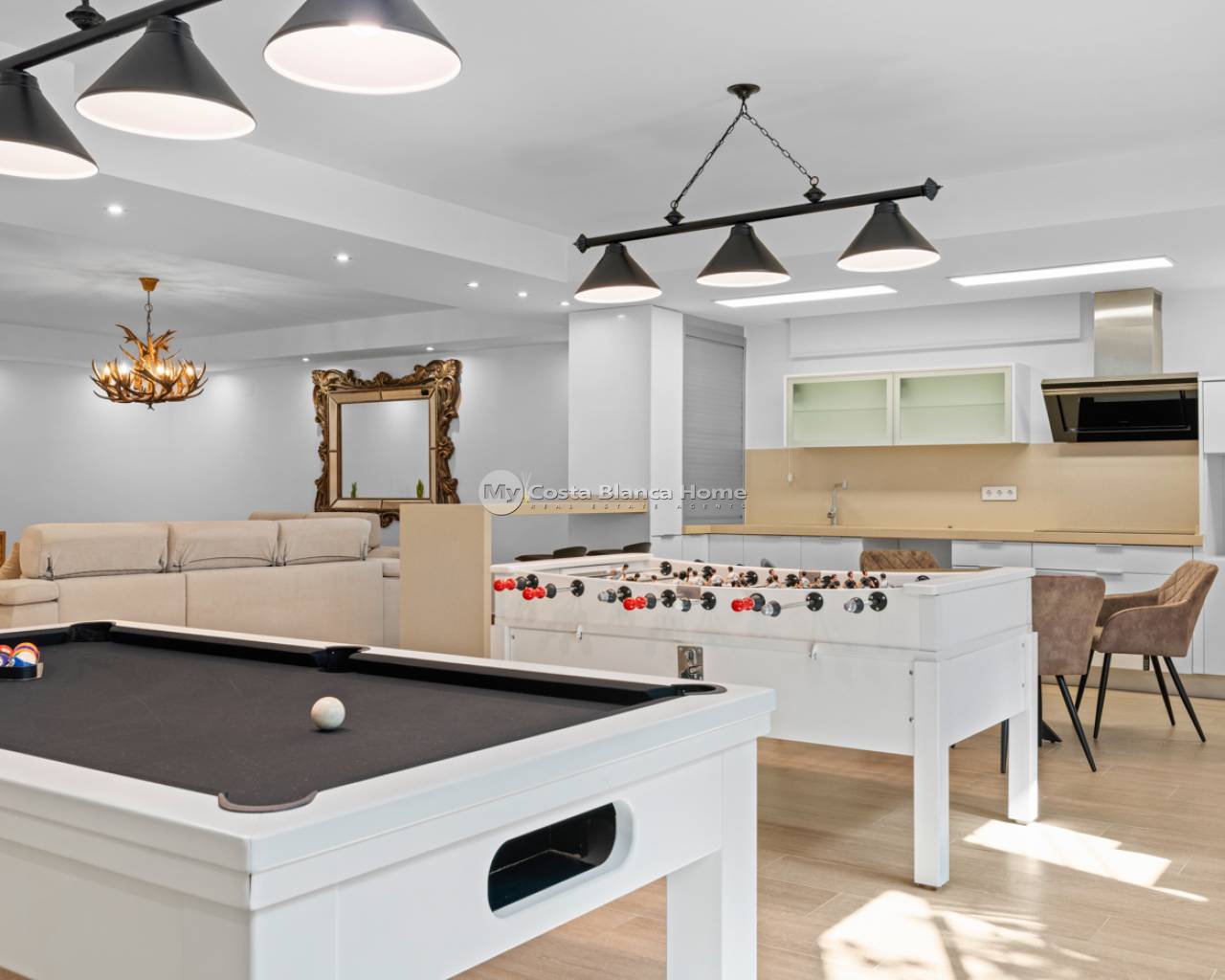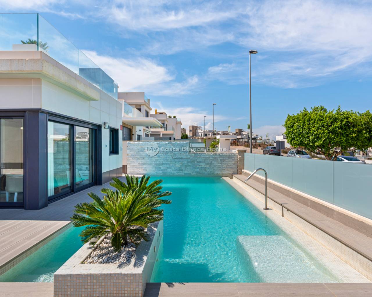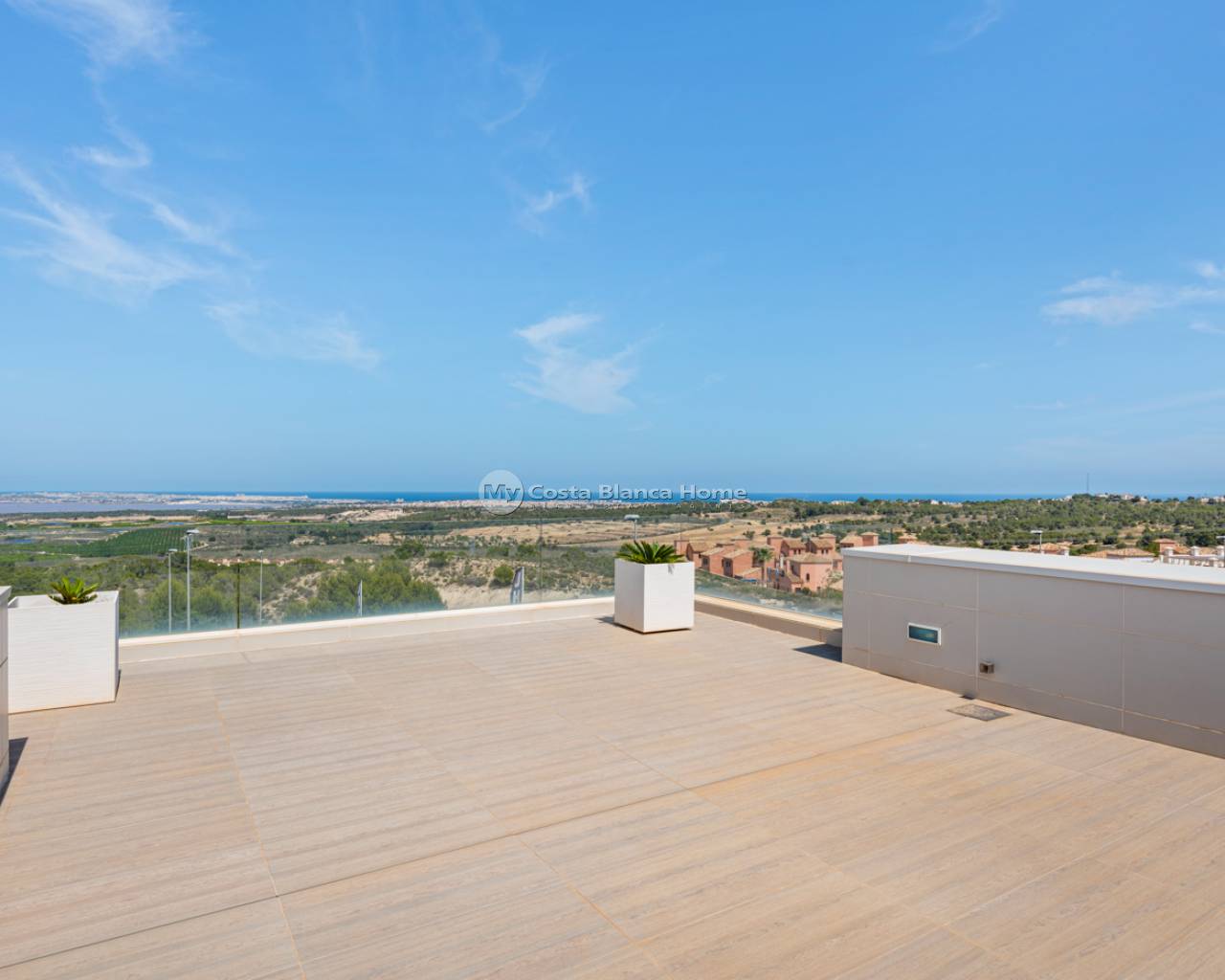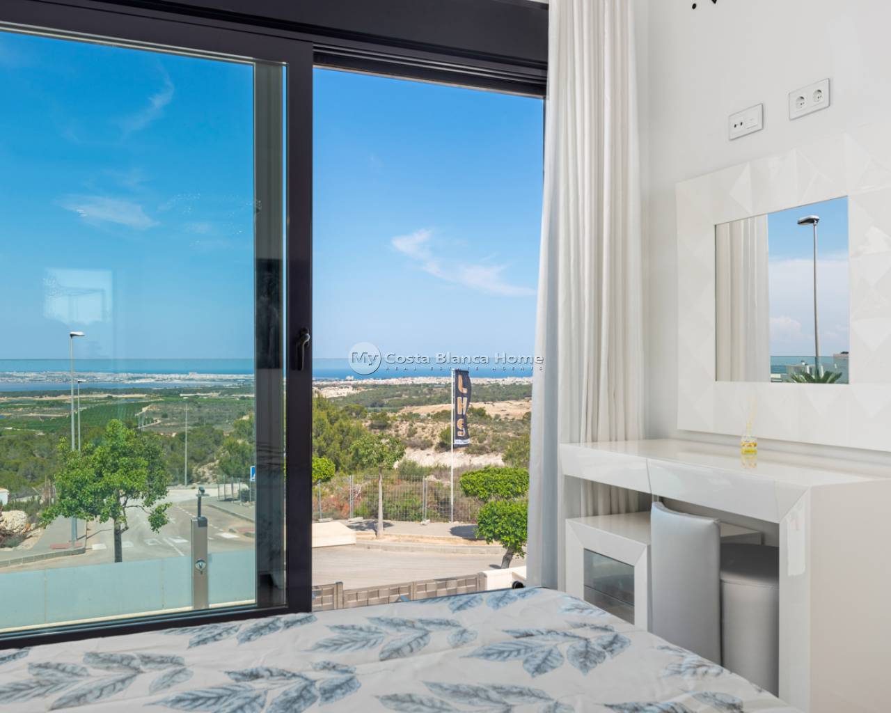 Luxury villa with 5 bedrooms and incredible views This recently built luxury property has a total of 5 bedrooms and 4 bathrooms, distributed over two floors and a basement, with a practical elevator that communicates with all the floors of the house and a beautiful glass staircase with interior lighting. In the basement we find a game room (with billiards and table football), a room for celebrations with a full kitchen, 2 bedrooms, 2 storage rooms and a full bathroom. On the main floor we find the living-dining room with an open-concept kitchen and central island, the main bedroom with an en-suite bathroom, as well as a laundry room and a toilet. On the first floor there are 2 spacious bedrooms, 2 bathrooms and access to the balconies. On the top floor we find an incredible 70m2 solarium with impressive panoramic views. EquipmentIt has air conditioning, its own parking for several vehicles, central heating with underfloor heating throughout the house and is for sale furnished with designer furniture and totally equipped, except for personal belongings. The house also has a pellet machine to heat the house, as well as solar panels and an electric water heater. The house includes security windows and doors, with keyed keys, as well as a security system with sensors in all rooms. The equipment is of high quality, including: motorized sofas, brand new mattresses, steam oven with pyrolysis, combo fridge that makes normal and crushed ice. Outdoor spaceIn the garden we find a private pool with waterfall, jacuzzi and hydromassage. The space around the pool is well cared for, decorated with a large amount of vegetation. Next to the pool we find an outdoor shower. Finally, there is also parking for several cars within the plot. AreaResidencial Bellavista is located in one of the areas with the best views of the Costa Blanca. In the municipality of San Miguel de Salinas, just 7 kilometers from the beaches of Orihuela, surrounded by golf courses, the most important shopping center in the area that has all kinds of services, as well as bars, restaurants, shops clothes, supermarkets, etc. This residential is ideal for lovers of nature and tranquility.