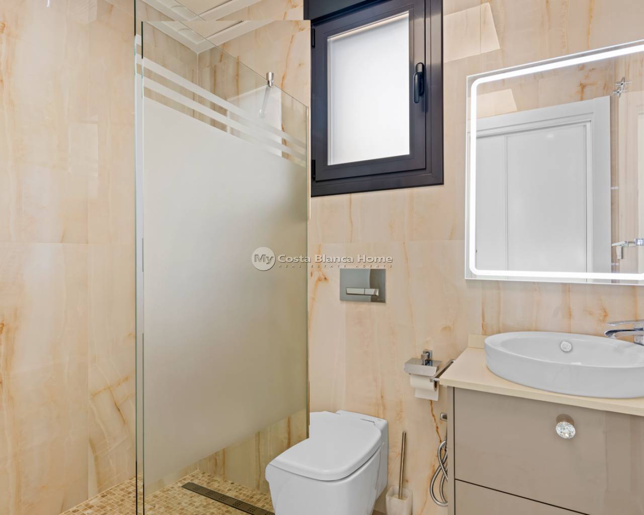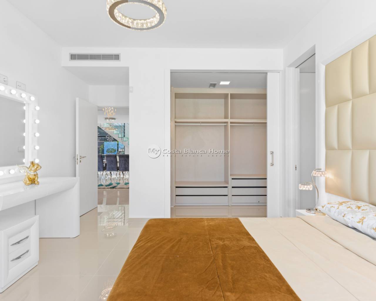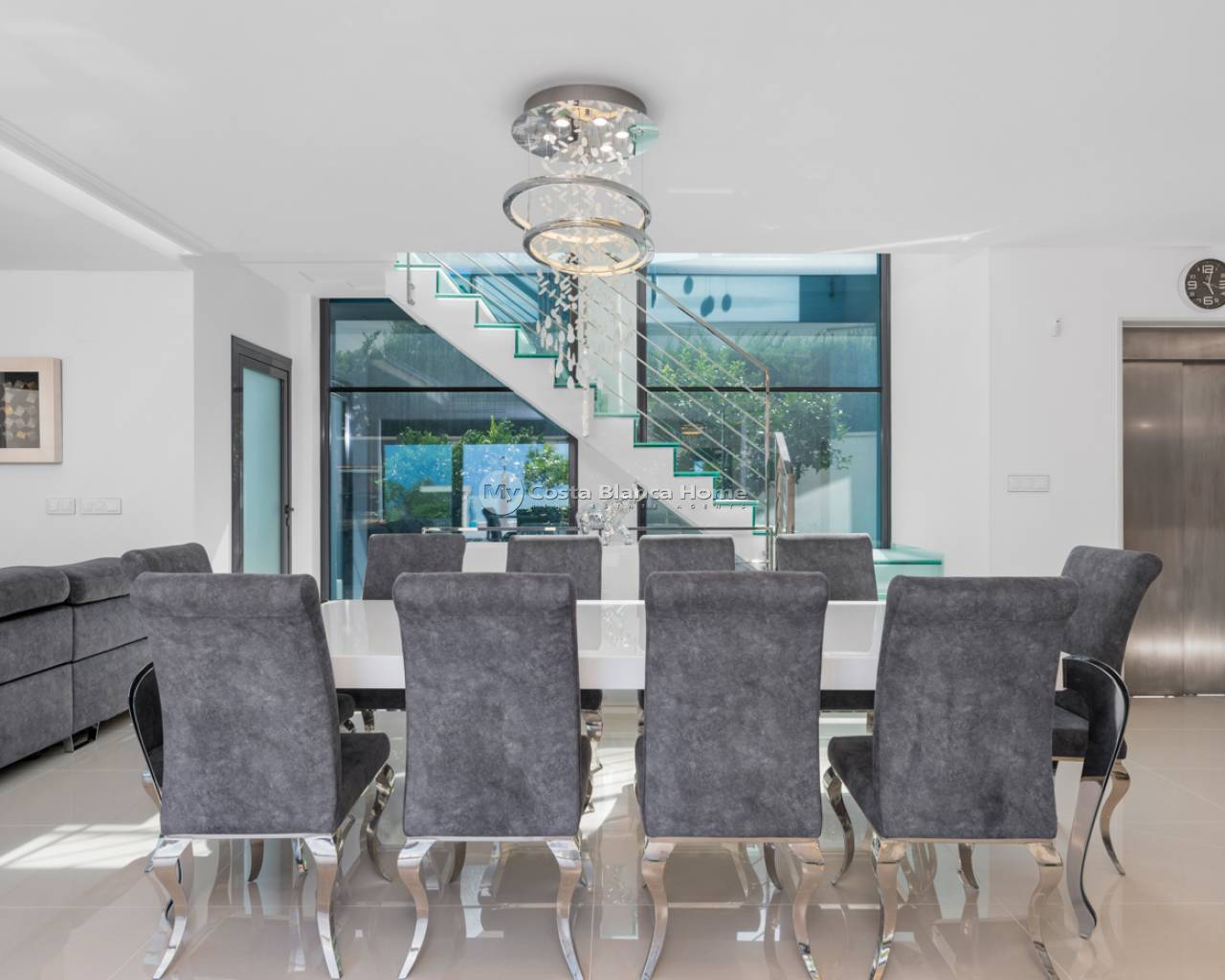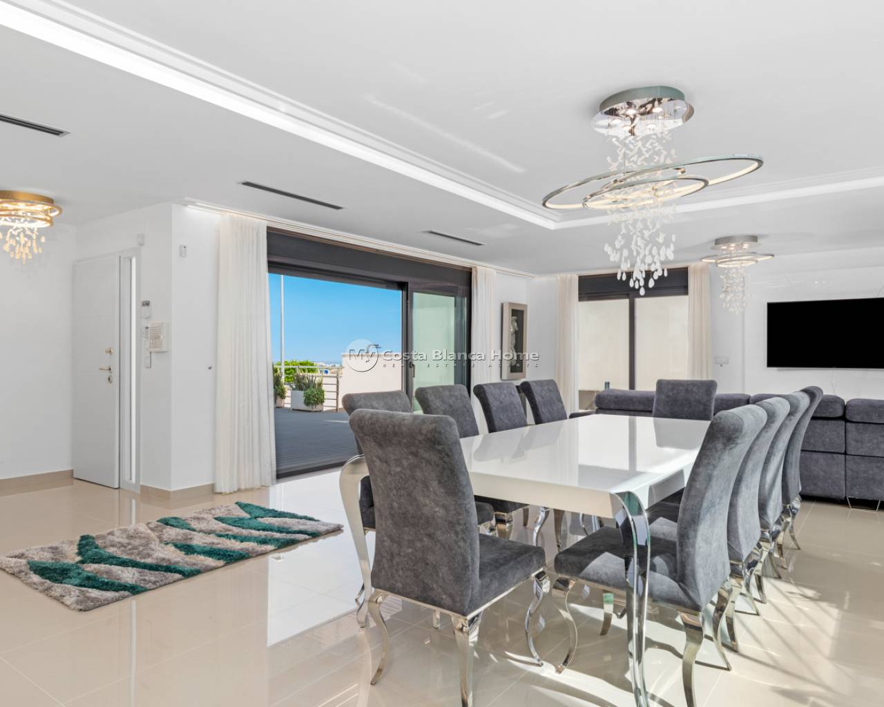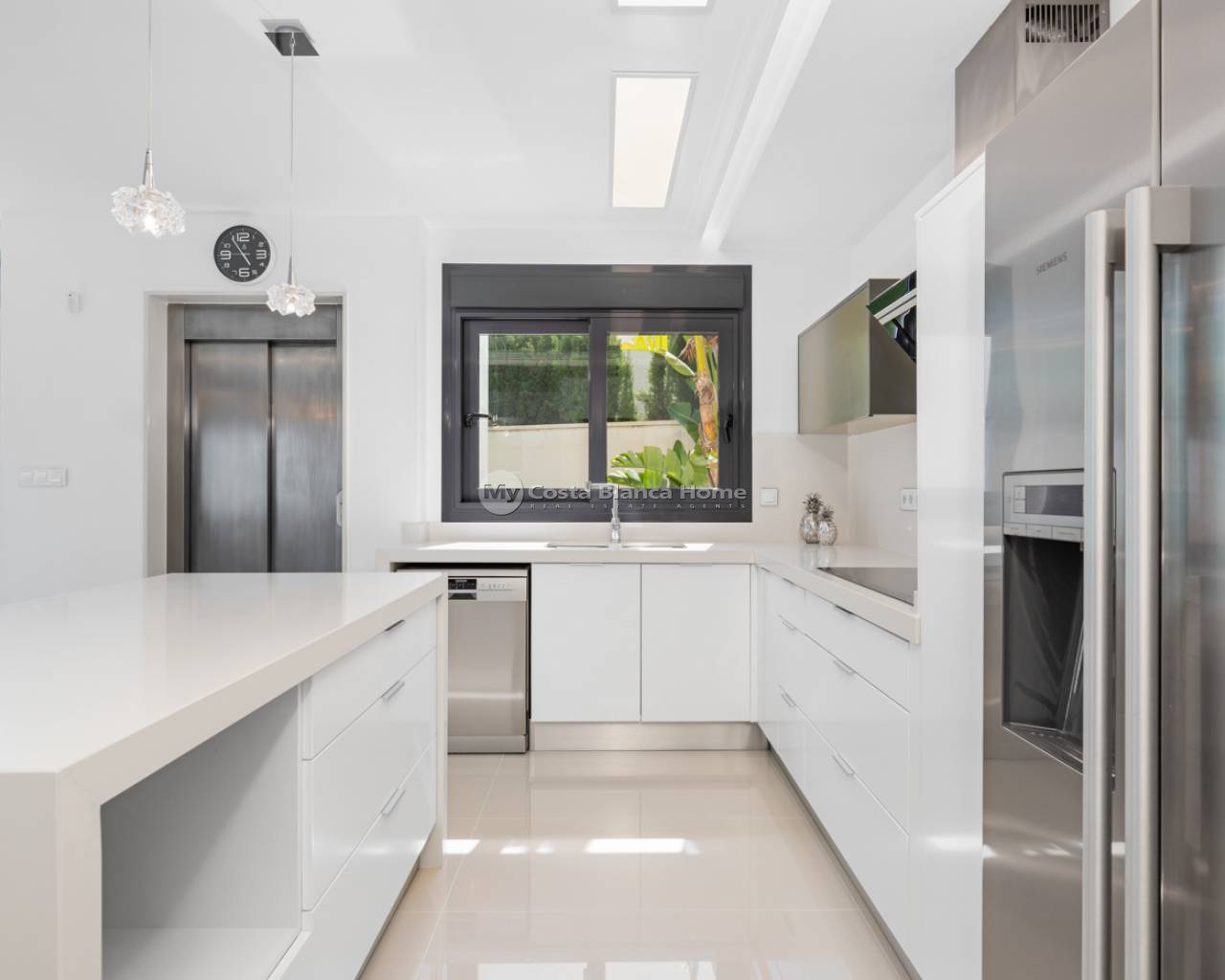Luxury villa with 5 bedrooms and incredible views This recently built luxury property has a total of 5 bedrooms and 4 bathrooms, distributed over two floors and a basement, with a practical elevator that communicates with all the floors of the house and a beautiful glass staircase with interior lighting. In the basement we find a game room (with billiards and table football), a room for celebrations with a full kitchen, 2 bedrooms, 2 storage rooms and a full bathroom. On the main floor we find the living-dining room with an open-concept kitchen and central island, the main bedroom with an en-suite bathroom, as well as a laundry room and a toilet. On the first floor there are 2 spacious bedrooms, 2 bathrooms and access to the balconies. On the top floor we find an incredible 70m2 solarium with impressive panoramic views. EquipmentIt has air conditioning, its own parking for several vehicles, central heating with underfloor heating throughout the house and is for sale furnished with designer furniture and totally equipped, except for personal belongings. The house also has a pellet machine to heat the house, as well as solar panels and an electric water heater. The house includes security windows and doors, with keyed keys, as well as a security system with sensors in all rooms. The equipment is of high quality, including: motorized sofas, brand new mattresses, steam oven with pyrolysis, combo fridge that makes normal and crushed ice. Outdoor spaceIn the garden we find a private pool with waterfall, jacuzzi and hydromassage. The space around the pool is well cared for, decorated with a large amount of vegetation. Next to the pool we find an outdoor shower. Finally, there is also parking for several cars within the plot. AreaResidencial Bellavista is located in one of the areas with the best views of the Costa Blanca. In the municipality of San Miguel de Salinas, just 7 kilometers from the beaches of Orihuela, surrounded by golf courses, the most important shopping center in the area that has all kinds of services, as well as bars, restaurants, shops clothes, supermarkets, etc. This residential is ideal for lovers of nature and tranquility.