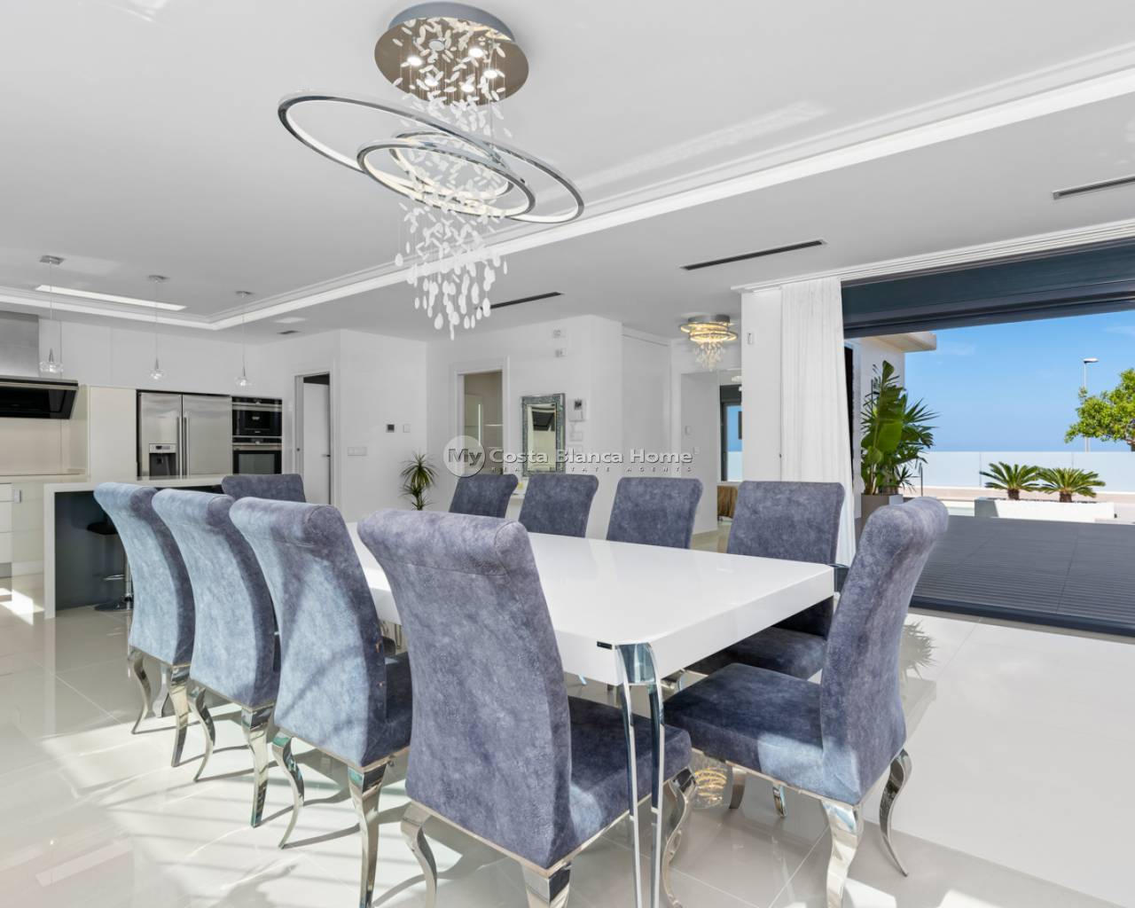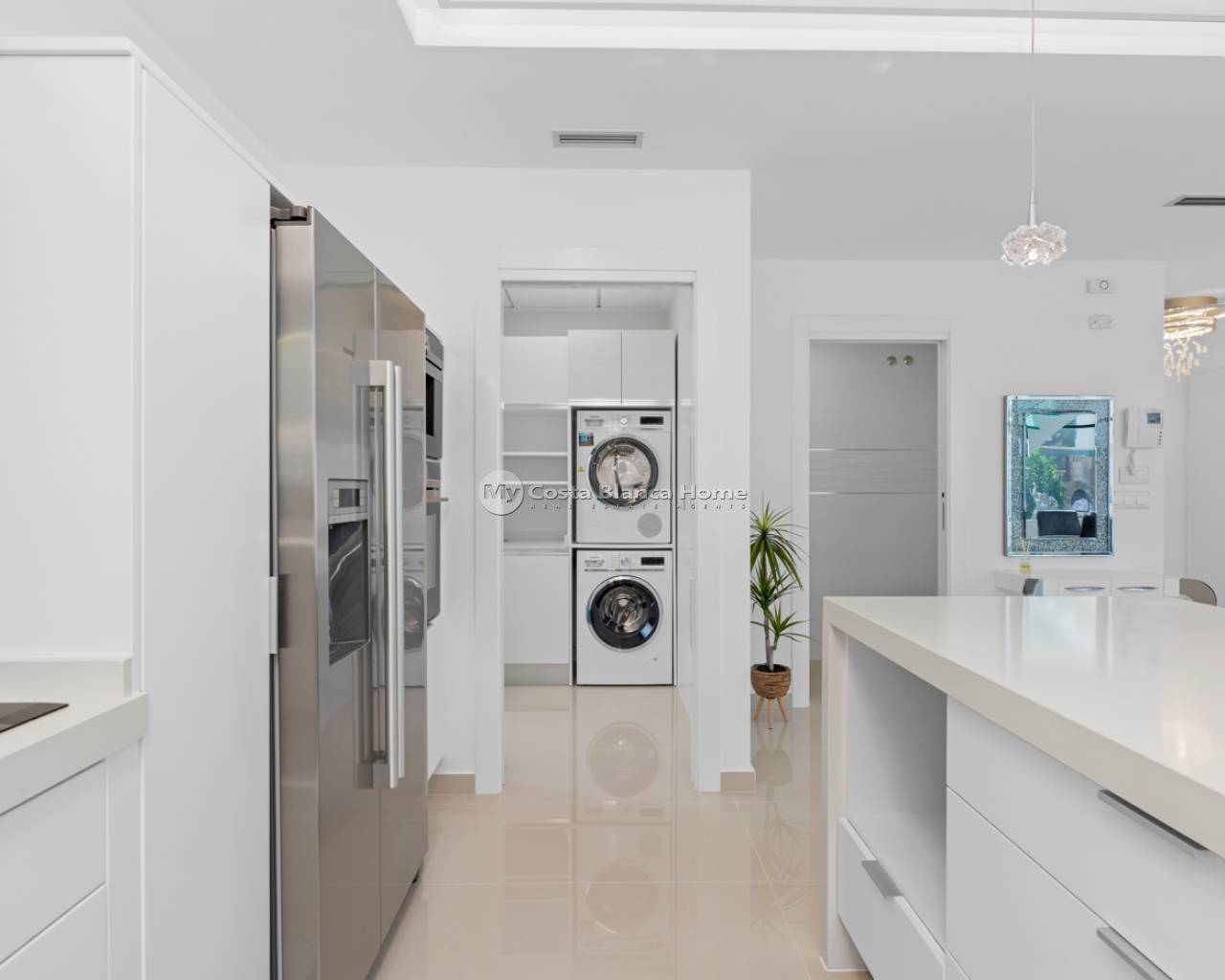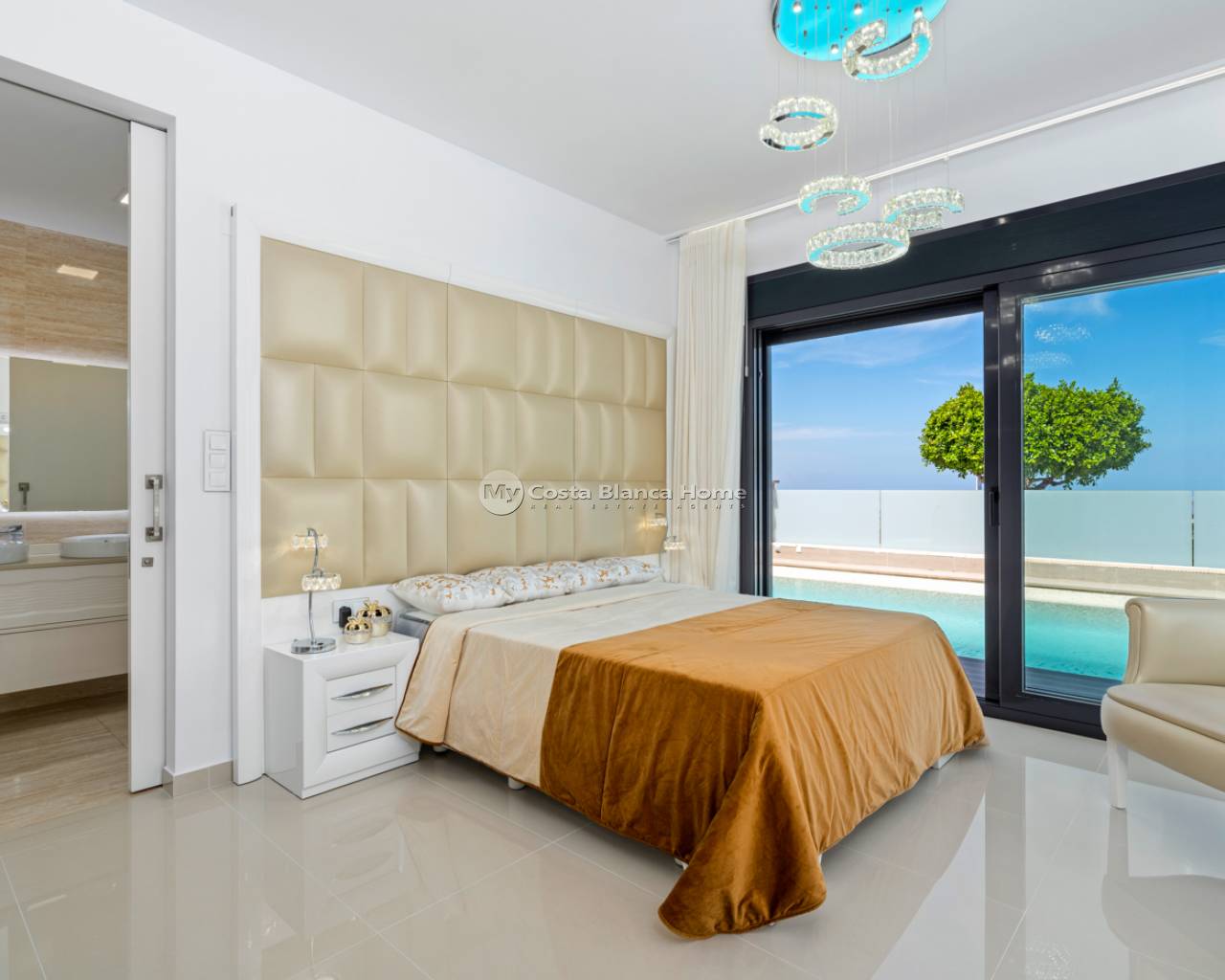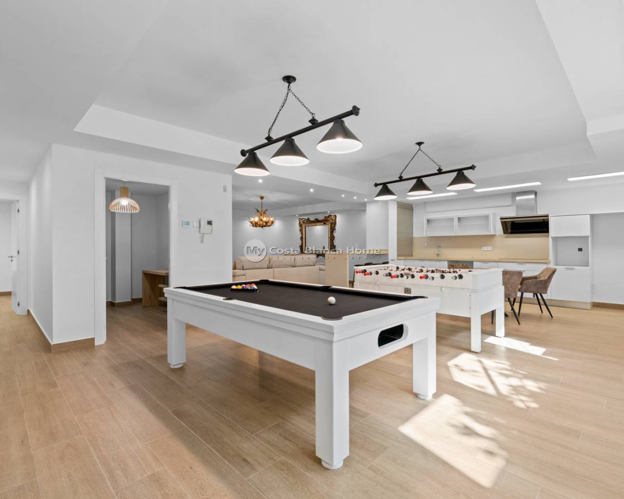 Luxury villa with 5 bedrooms and incredible views This recently built luxury property has a total of 5 bedrooms and 4 bathrooms, distributed over two floors and a basement, with a practical elevator that communicates with all the floors of the house and a beautiful glass staircase with interior lighting. In the basement we find a game room (with billiards and table football), a room for celebrations with a full kitchen, 2 bedrooms, 2 storage rooms and a full bathroom. On the main floor we find the living-dining room with an open-concept kitchen and central island, the main bedroom with an en-suite bathroom, as well as a laundry room and a toilet. On the first floor there are 2 spacious bedrooms, 2 bathrooms and access to the balconies. On the top floor we find an incredible 70m2 solarium with impressive panoramic views. EquipmentIt has air conditioning, its own parking for several vehicles, central heating with underfloor heating throughout the house and is for sale furnished with designer furniture and totally equipped, except for personal belongings. The house also has a pellet machine to heat the house, as well as solar panels and an electric water heater. The house includes security windows and doors, with keyed keys, as well as a security system with sensors in all rooms. The equipment is of high quality, including: motorized sofas, brand new mattresses, steam oven with pyrolysis, combo fridge that makes normal and crushed ice. Outdoor spaceIn the garden we find a private pool with waterfall, jacuzzi and hydromassage. The space around the pool is well cared for, decorated with a large amount of vegetation. Next to the pool we find an outdoor shower. Finally, there is also parking for several cars within the plot. AreaResidencial Bellavista is located in one of the areas with the best views of the Costa Blanca. In the municipality of San Miguel de Salinas, just 7 kilometers from the beaches of Orihuela, surrounded by golf courses, the most important shopping center in the area that has all kinds of services, as well as bars, restaurants, shops clothes, supermarkets, etc. This residential is ideal for lovers of nature and tranquility.