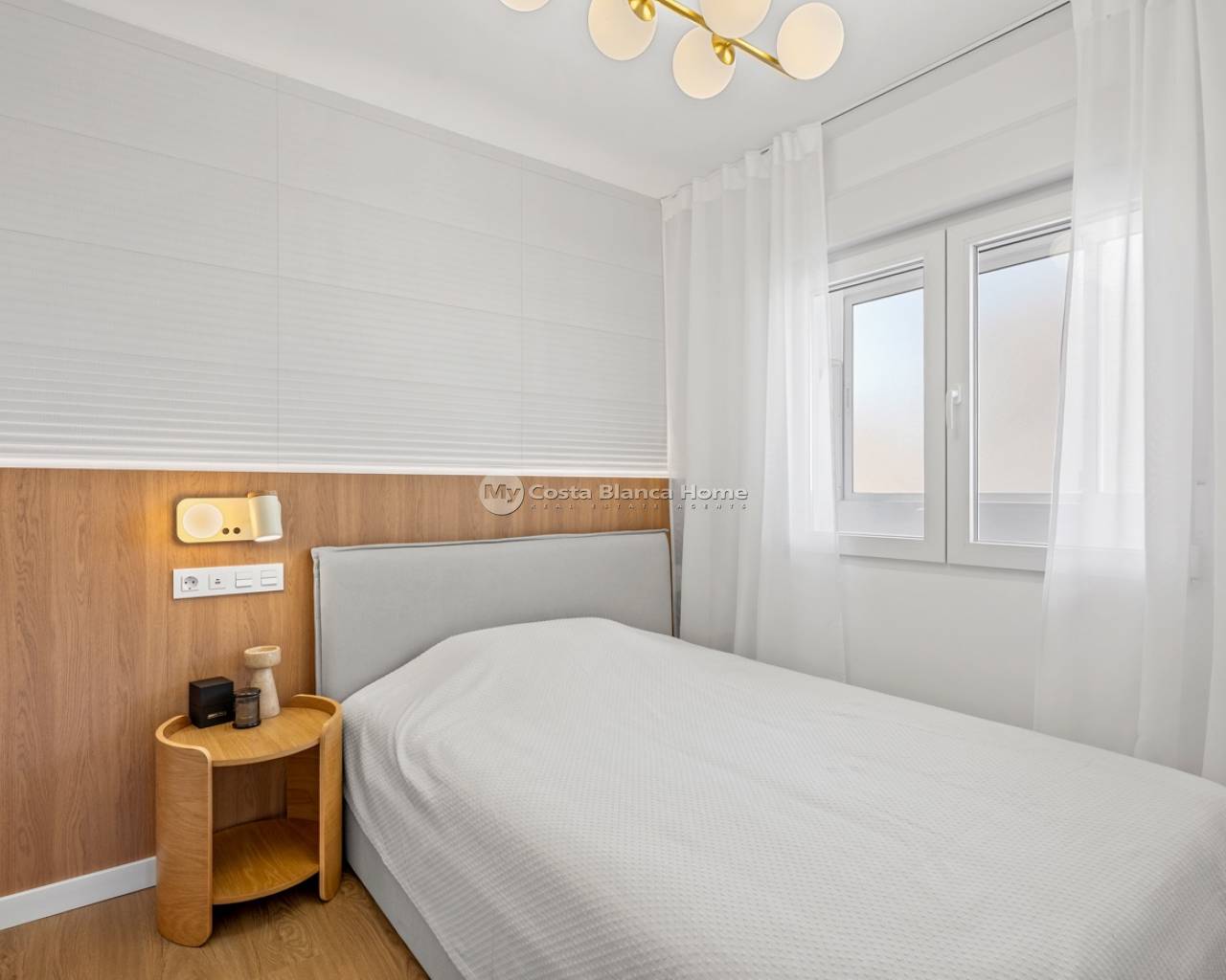 New opportunity on the market: a fully renovated corner penthouse on the 6th floor, just 500 meters from the sea, located in one of the most sought-after and promising areas of the Costa Blanca South. A rare find due to its combination of height, corner location, privacy, and completely unobstructed views—features typically found in much more expensive properties. Open Panoramic Views Views of the Mediterranean SeaClear sunrises and sunsetsNighttime panoramic views over the cityMountain viewsViews of the Torrevieja Salt Lakes Being a corner apartment on the top floor, it offers maximum natural light and cross ventilation. All rooms have direct access to the terrace, without interior patios, guaranteeing light, a spacious feel, and privacy. Main Features 70 m² built2 bedrooms1 bathroomCorner penthouse – 6th floorBuilding with elevatorCommunal swimming poolSoundproof panoramic windowsExcellent sound insulationRecently renovated Interior and finishes The apartment is delivered fully equipped and furnished with a modern and functional design: Designer furnitureNatural stone elementsLarge-format porcelain tilesIntegrated ambient LED lightingInverter air conditioning with Wi-Fi controlInduction hobDishwasherDirect Drive washing machineQLED Smart TVAlarm systemProgrammable boiler Added value for investors It has a valid tourist license, which can be transferred to the new owner, as licenses are granted in this building. This is a high-demand area for both national and international holiday rentals. Furthermore, the building is undergoing a complete facade renovation, a project already fully paid for, with no additional assessments for the new owner. Parking Enclosed and covered communal parking within the residential complex. Optional underground parking space for €10,000. Ready to move in or start generating income from day one!