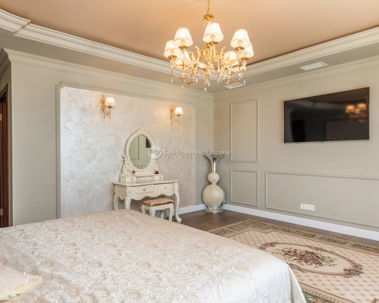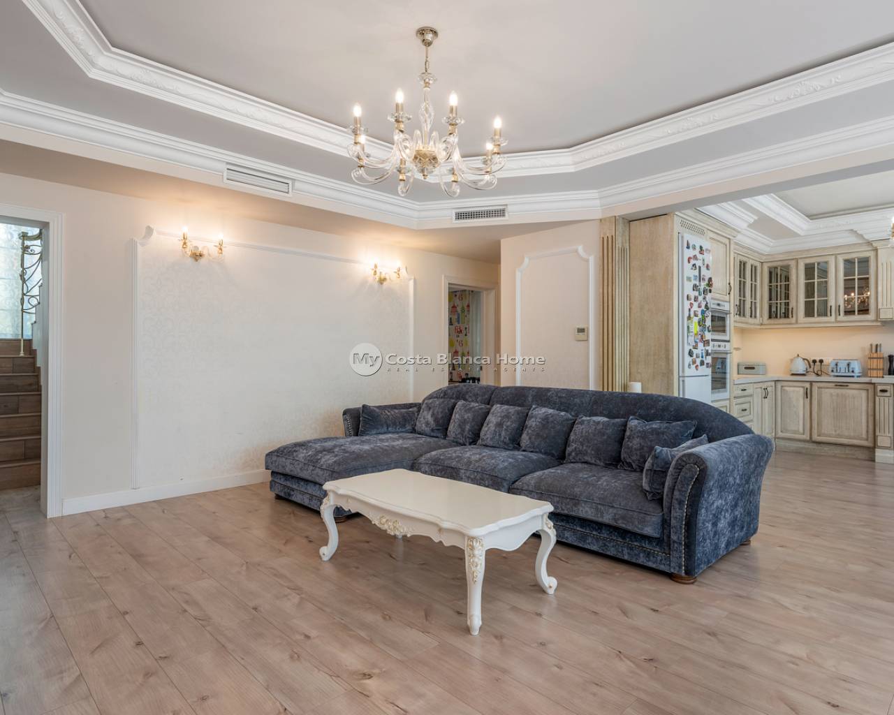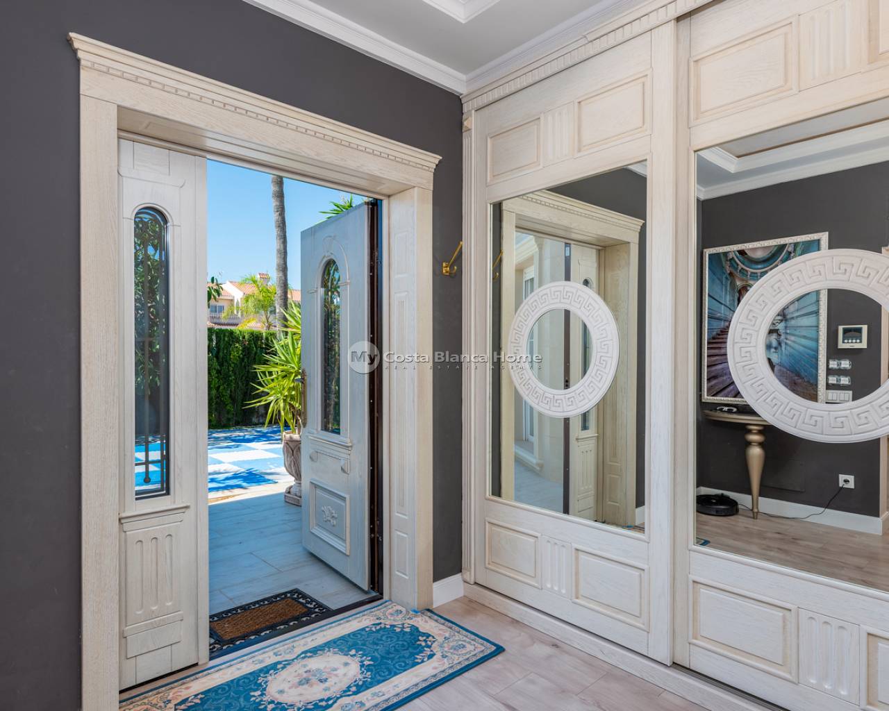 We are pleased to present this beautiful house which contains 5 bedrooms and 3 bathrooms in the popular Doña Pepa - Ciudad Quesada. The home is 303sqm including a 20sqm garage and consists of two floors. You enter an open hall where you have a bright and open access to the living room with high ceilings. Furthermore you have 2 double bedrooms and 1 bathroom on the ground floor. The living room is large and airy with direct access to a wonderful terrace, overlooking the garden. On this floor you can also find a laundry room and direct access to the garage. On the second floor you have a big walk in closet, 3 large bedrooms and 2 bathrooms, one of them en suite. The home is equipped with integrated air conditioning on each floor and underfloor heating throghout the house. Outdoor area The plot is 882sqm where you will find the area with saltwater pool m8 x 4m, outdoor kitchen with barbecue and a kids playground. You will find plenty of space to have several seating areas and sun loungers.