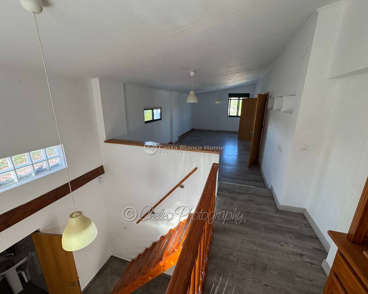 On the first floor there is a family bathroom with shower, 4 bedrooms in total, the air conditioned master bedroom has a cloak room with fitted wardrobes, plus a balcony overlooking the garden. There is also a storage room with stairs accessing the rooftop solarium offering panoramic views of the surrounding countryside.