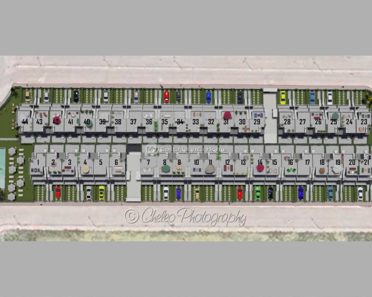 This new residential development of 44 modern townhouses in Cox, Alicante.