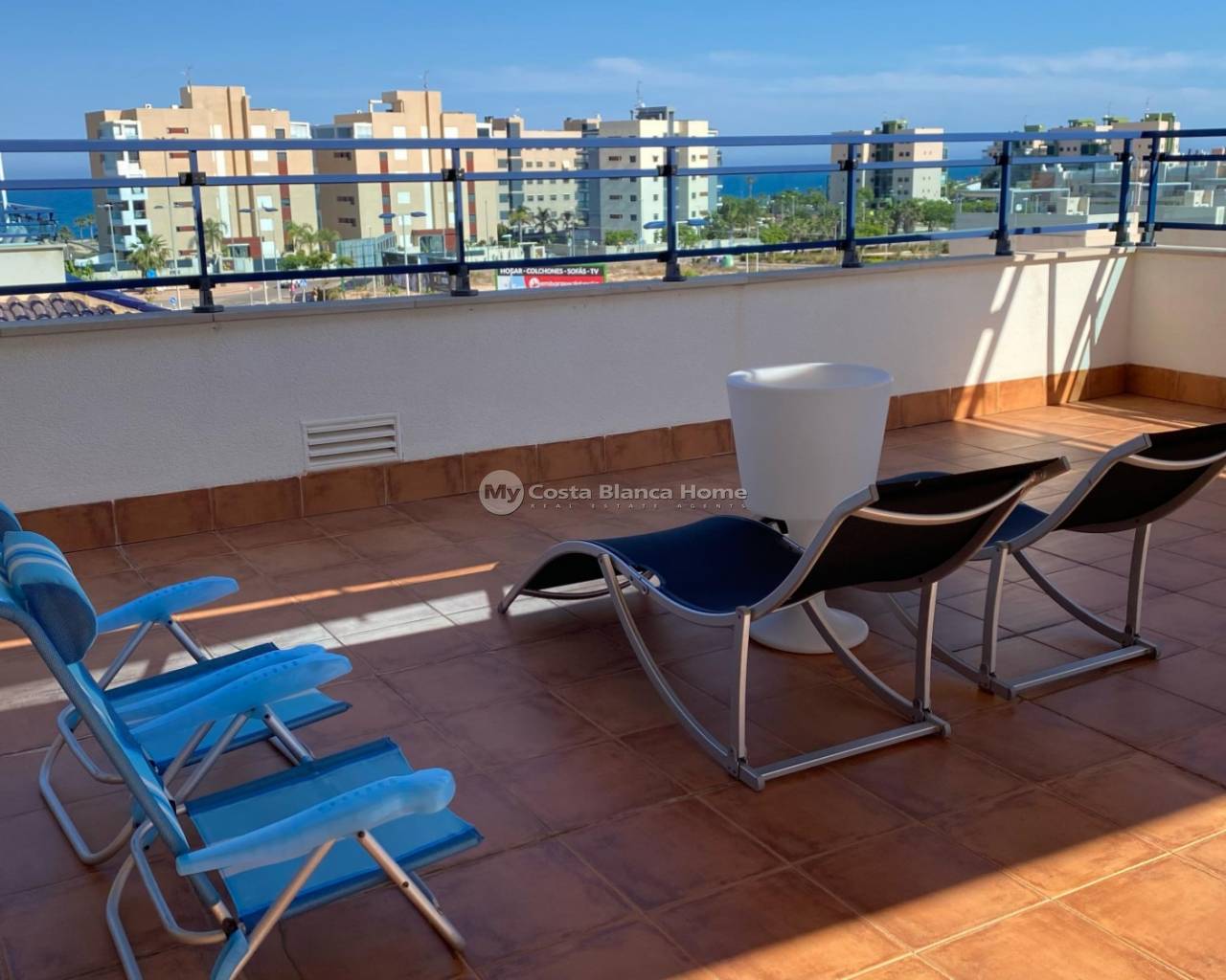 Bienvenue dans ce superbe penthouse d'angle au cœur de Mil Palmeras, où la vie côtière rencontre le confort ultime. Ce charmant appartement de deux chambres et d'une salle de bains dispose d'un espace de vie spacieux, idéal pour se détendre ou recevoir, et d'une atmosphère lumineuse et aérée. Sortez sur la terrasse privée ou montez les escaliers jusqu'au grand solarium, votre oasis personnelle avec des vues sur la mer à couper le souffle.