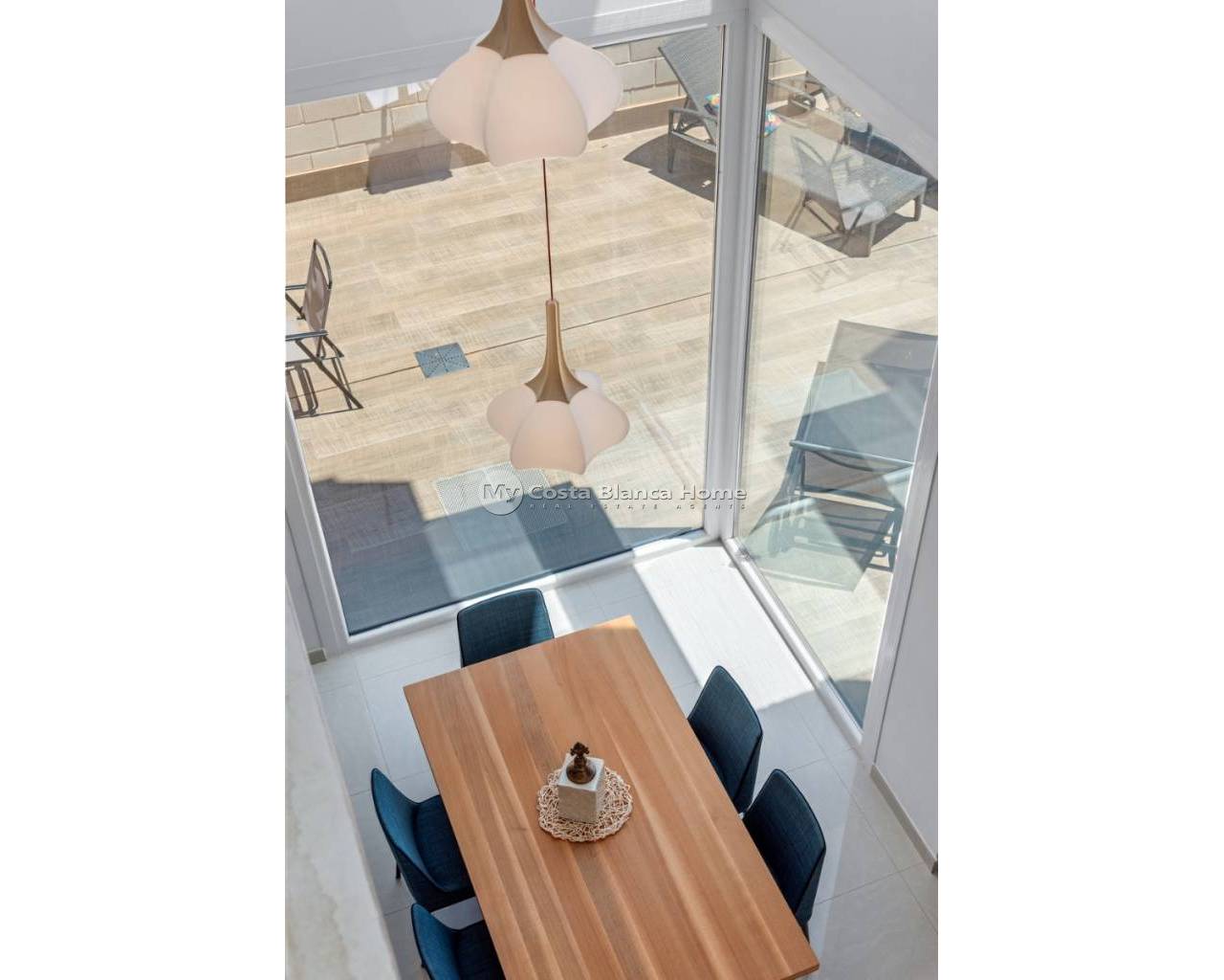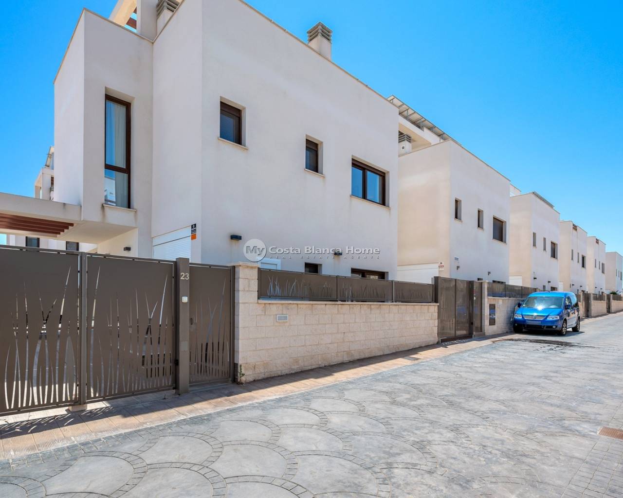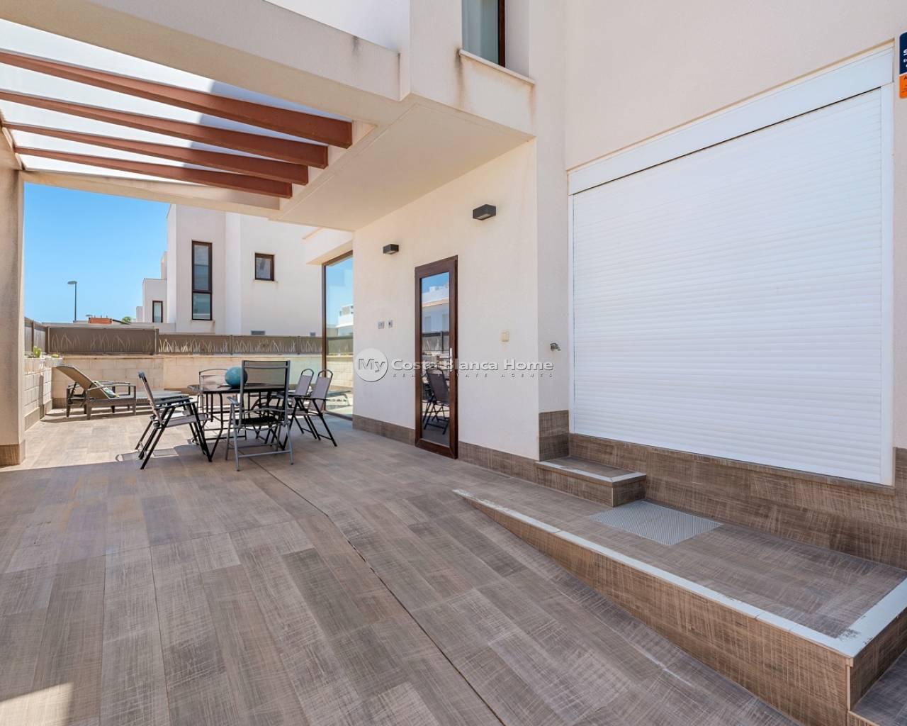 Située dans un quartier résidentiel calme de Ciudad Quesada, cette propriété construite en 2018 offre une disposition fonctionnelle et des espaces bien agencés à l’intérieur comme à l’extérieur. Elle dispose de 101 m² construits sur un terrain de 184 m², avec trois chambres, trois salles de bains, un sous-sol et une terrasse sur le toit. Le rez-de-chaussée comprend un salon, une salle à manger et une cuisine ouverte avec îlot central. À ce niveau se trouvent également une chambre avec placard intégré, une salle de bain complète, une buanderie et un accès direct au jardin et à la piscine. À l’étage, on trouve deux chambres. La chambre principale dispose d’une salle de bain privative et d’un accès à une terrasse. La seconde chambre se situe près d’une autre salle de bain. Un couloir relie les deux pièces. Le sous-sol est aménagé en salle de loisirs avec un espace billard et offre un espace supplémentaire pour différents usages. La terrasse sur le toit comprend une cuisine extérieure entièrement équipée, accessible depuis l’intérieur de la maison, idéale pour profiter des repas en plein air tout au long de l’année. À l’extérieur, la villa dispose d’une piscine privée de 3,30 x 6,50 mètres, d’un jardin en gazon artificiel et d’un stationnement sur la parcelle. En tant que maison d’angle, elle bénéficie d’une meilleure luminosité et d’une plus grande intimité. La propriété est vendue entièrement meublée, avec climatisation, placards intégrés, volets automatiques, moustiquaires, système d’alarme et cuisine équipée. Elle convient aussi bien pour une résidence principale que pour un usage saisonnier.