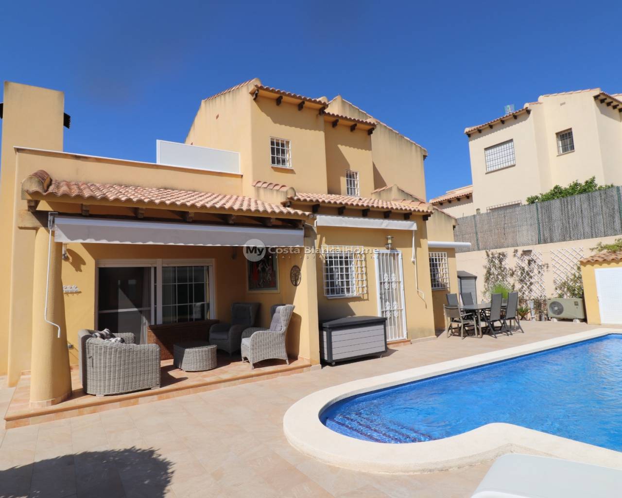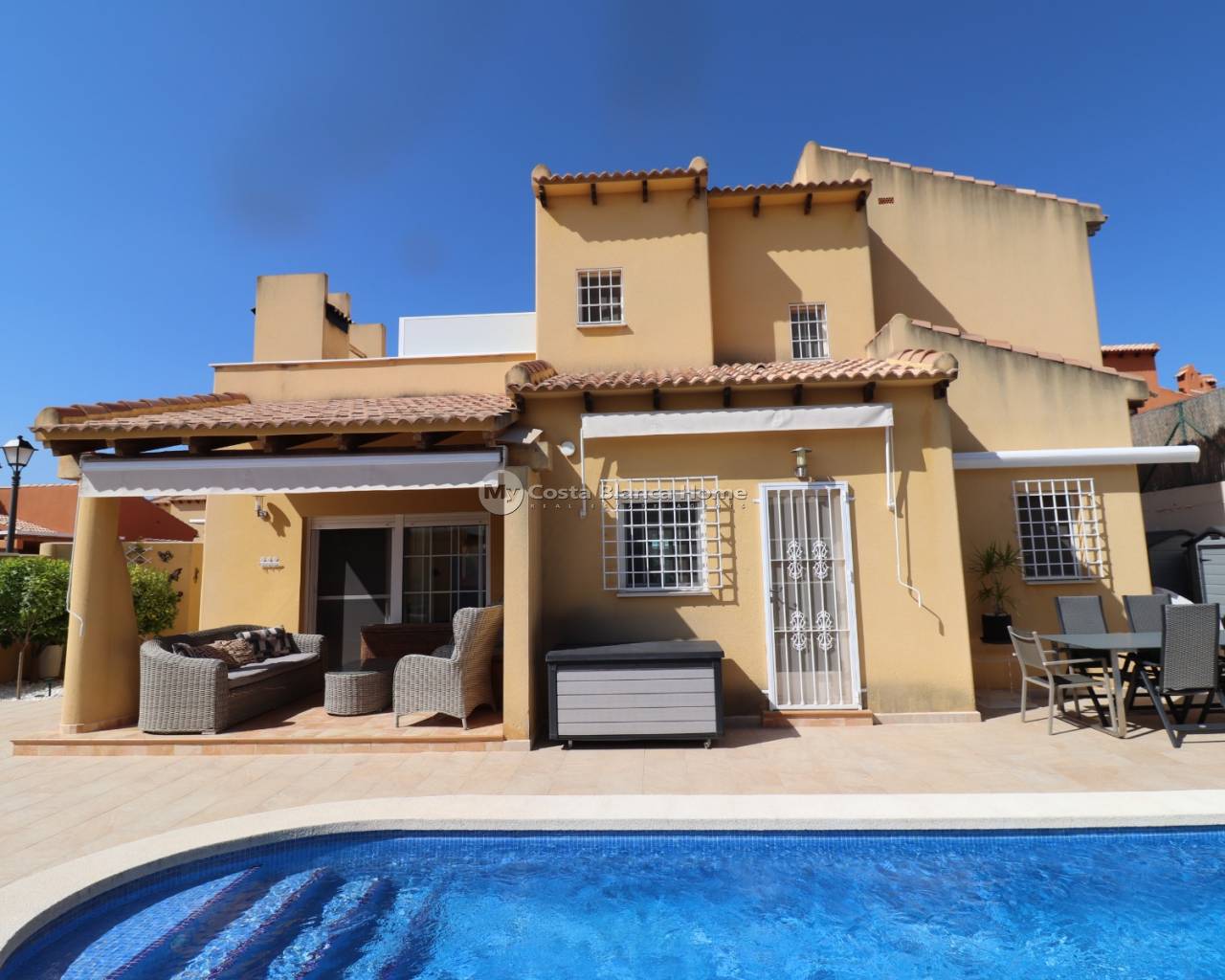 Cette superbe villa est idéalement située dans un quartier résidentiel très tranquille à distance de marche des célèbres thermes et à moins de 2 kms de la ville de Fortuna avec toutes les commodités. Elle se compose au rez de chaussée d'un hall d'entrée, d'un salon/salle à manger, d'une cuisine neuve et très bien équipée, d'un espace de rangement, d'une chambre avec salle de bain en suite et d'une toilette séparée. A l'étage se trouvent 2 chambres supplémentaires, une salle de bain ainsi qu'une terrasse sur laquelle se trouve le chauffe eau solaire. Les baies vitrées du salon donnent directement sur une terrasse couverte et la belle piscine de 8x4 chauffée avec une pompe à chaleur. L'espace extérieur propose aussi une magnifique cuisine d'été, un local technique (piscine), une remise (6m), un car port pour la voiture et quelques arbres fruitiers. Cette villa dispose de tout le confort moderne : raccordement à l'eau, l'électricité, internet (fibre optique), égouttage, air conditionné réversible, cassette à bois, ventilateurs, armoires encastrées (4) dans toutes les chambres. Cette propriété a été aménagée et décorée avec beaucoup de soins et de goût et est en parfait état.