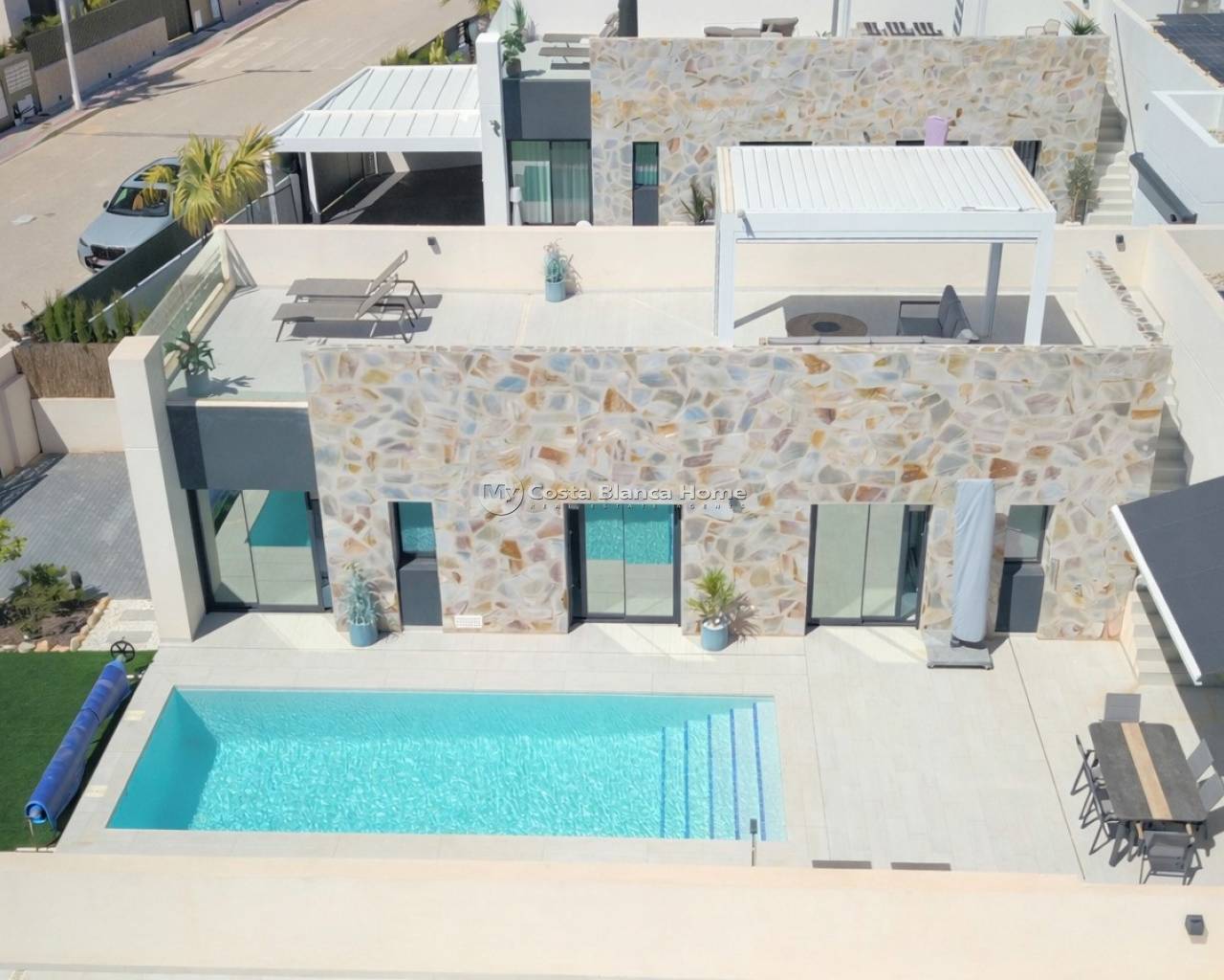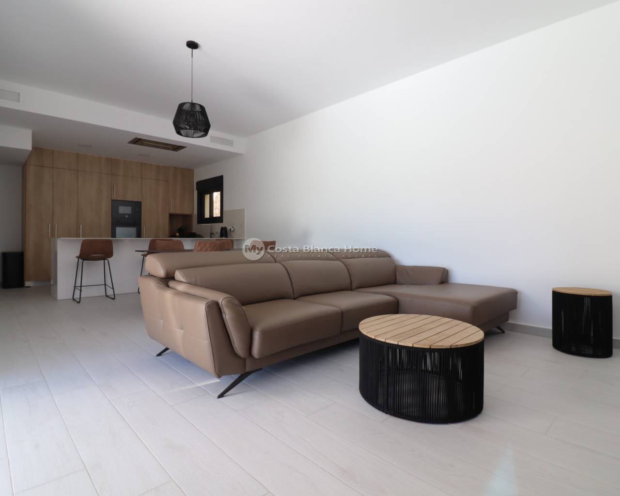 Cette villa individuelle de trois chambres, orientée ouest, est située dans le complexe hôtelier et spa 5 étoiles La Finca Golf, un emplacement prestigieux sur la Costa Blanca Sud, à seulement 10 minutes à pied des cafés, restaurants et boutiques. La ville d'Algorfa est à 5 minutes en voiture, tandis que Quesada et Benijófar, offrant davantage de commodités, sont accessibles en 10 minutes. Les magnifiques plages de la côte sont à seulement 20 minutes. Cette maison moderne et impeccable de 118 m² est implantée sur un terrain de 380 m² et a été construite fin 2024 par l'un des constructeurs les plus réputés de la région. Elle offre un style de vie élégant et de plain-pied. Le vaste séjour ouvert est doté d'un panneau mural infrarouge et de larges baies vitrées coulissantes avec store électrique, donnant sur la terrasse et la piscine. La cuisine contemporaine équipée comprend un bar et une buanderie complète ce bien. Cette maison comprend trois chambres doubles, toutes dotées de placards intégrés et d'un accès direct au jardin. La chambre principale bénéficie d'une salle de douche attenante, et une deuxième salle de douche familiale est également disponible. Les deux salles de douche sont équipées d'un chauffage au sol. À l'extérieur, un solarium privé offre une vue imprenable sur la campagne et le golf. Il est agrémenté d'une pergola électrique bioclimatique avec stores sur trois côtés. Le jardin, magnifiquement entretenu, est agrémenté de gazon synthétique, de massifs de galets et d'une piscine privée chauffée de 9 x 3 mètres (avec Wi-Fi). Parmi les autres atouts, citons un portail électrique pour l'accès en voiture, des panneaux solaires raccordés au réseau et une climatisation gainable Airzone, faisant de cette propriété un bien d'exception.