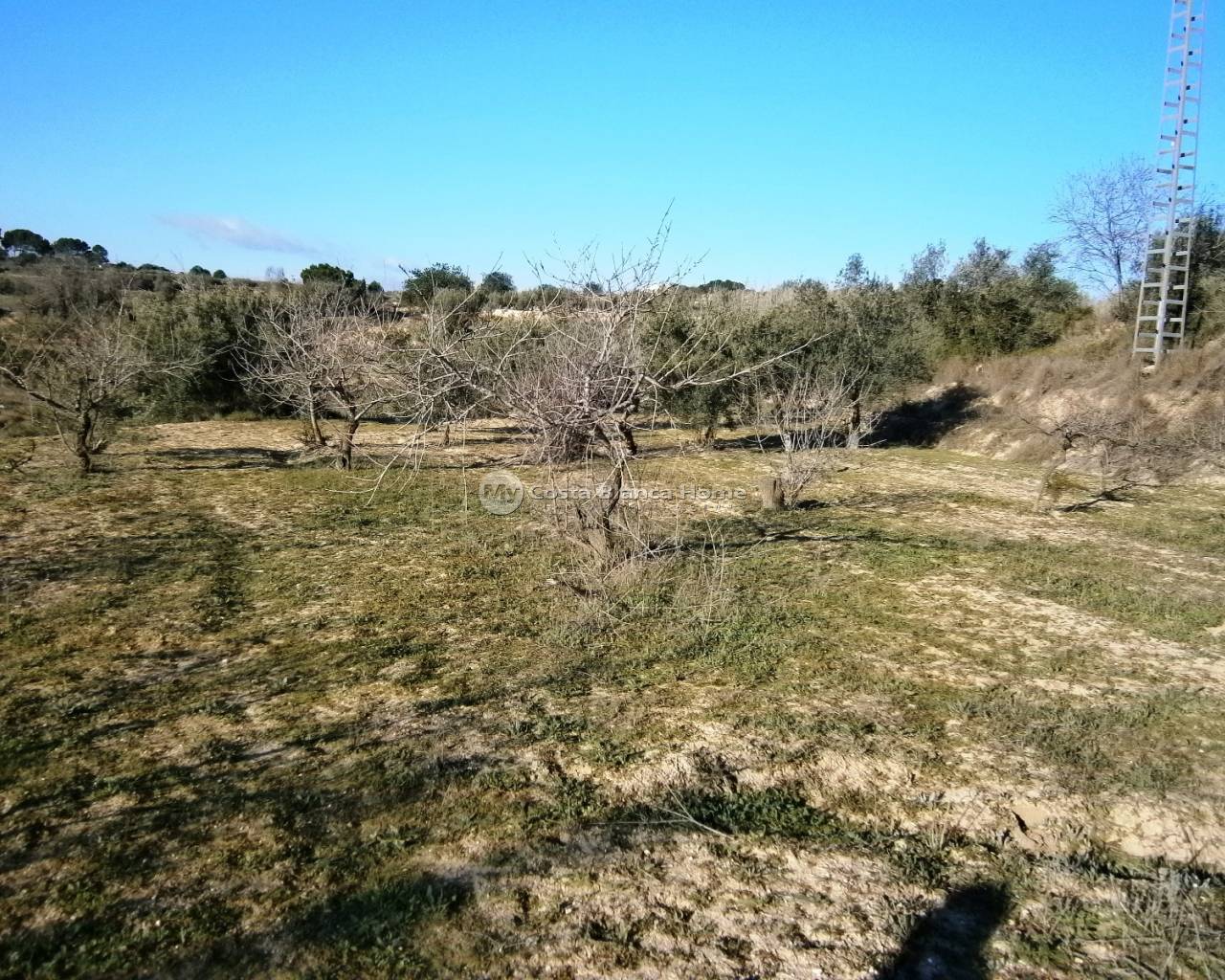 Groot vlak perceel van 17.229 m², beplant met een selectie van amandel- en olijfbomen, geasfalteerde wegtoegang en wordt onderhouden door leidingwater. Uitstekende rustige locatie met de hele dag zon en op slechts 4 km afstand van het dorp.