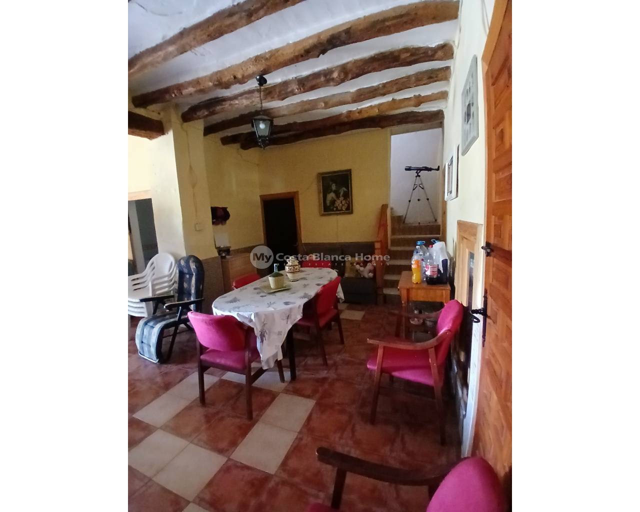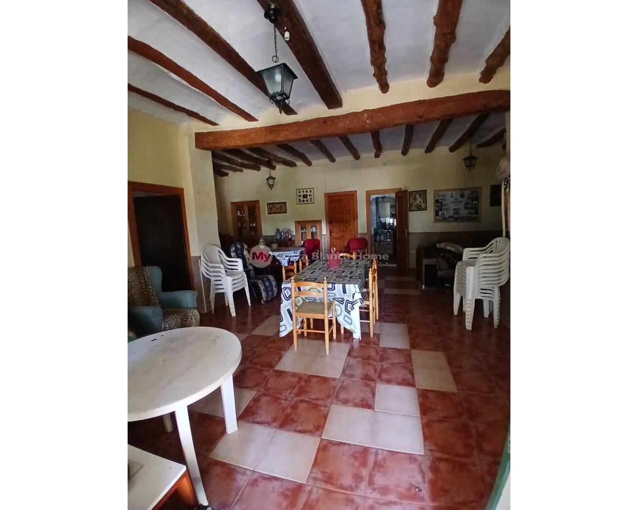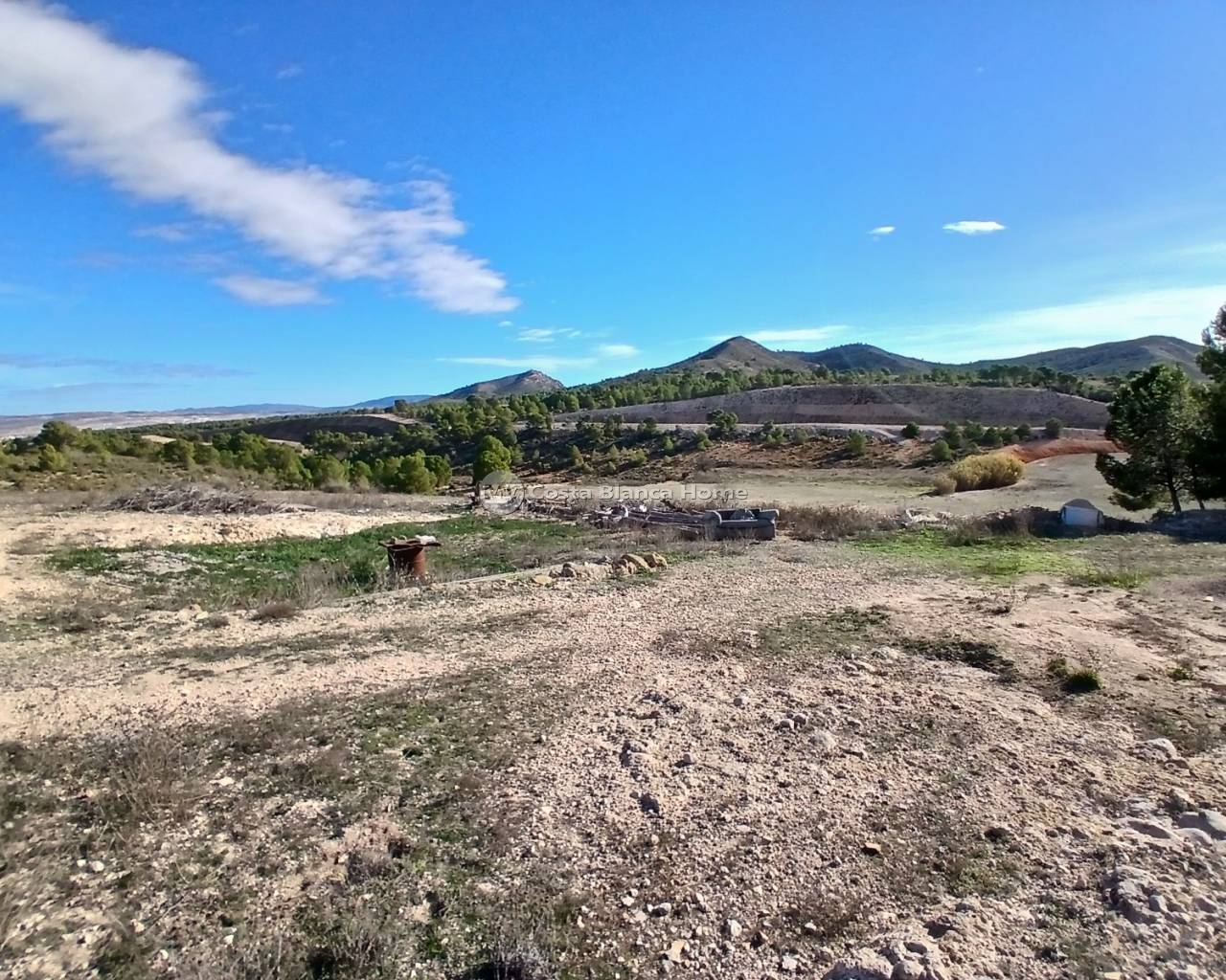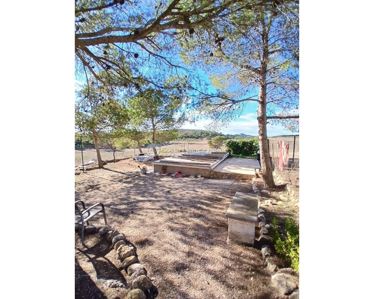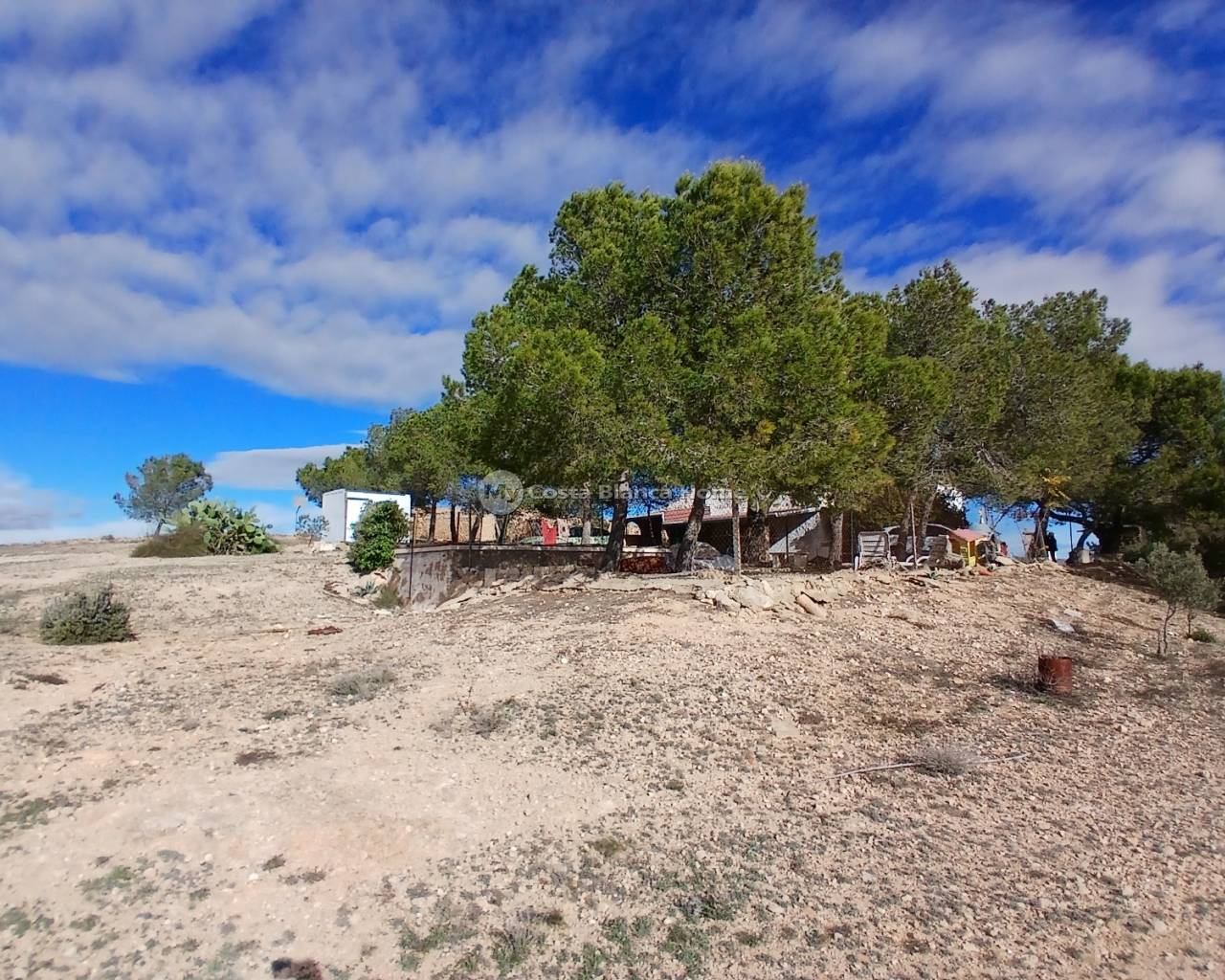 Half vrijstaand, off-grid landhuis in Caudete, dicht bij Yecla. (Het aangrenzende pand (129 m²) is ook te koop en kan worden gekocht voor een meerprijs van 60.000 euro.) De landelijke finca heeft een ruime woonkamer met open haard en houten balken. De keuken moet worden gerenoveerd en de badkamer bestaat uit een toilet met wastafel, er is momenteel geen douche. Op de begane grond vindt u ook 2 slaapkamers. Aan het huis is een garage en een berging met een groot waterreservoir van 10.000 liter gekoppeld, dat het huis van water voorziet. Boven vindt u nog 4 slaapkamers, waarvan 1 met 3 deuren die kan worden opgesplitst in 2 tweepersoonsslaapkamers of 3 eenpersoonsslaapkamers, wat resulteert in een totaal van 6-8 slaapkamers. Het dak is al vervangen en er zijn nieuwe stalen balken geplaatst. Aan de voorkant van het huis is een veranda waar u kunt genieten van het prachtige uitzicht op het grote perceel van ongeveer 70.000 m². Het zwembad is 2 jaar geleden volledig gerestaureerd en is als nieuw! Het land is perfect voor het houden van allerlei soorten dieren. Er is ook een ruïne (oude dierenstallen) bij de verkoop inbegrepen. U moet een off-grid zonnepaneelsysteem installeren om elektriciteit te hebben.
